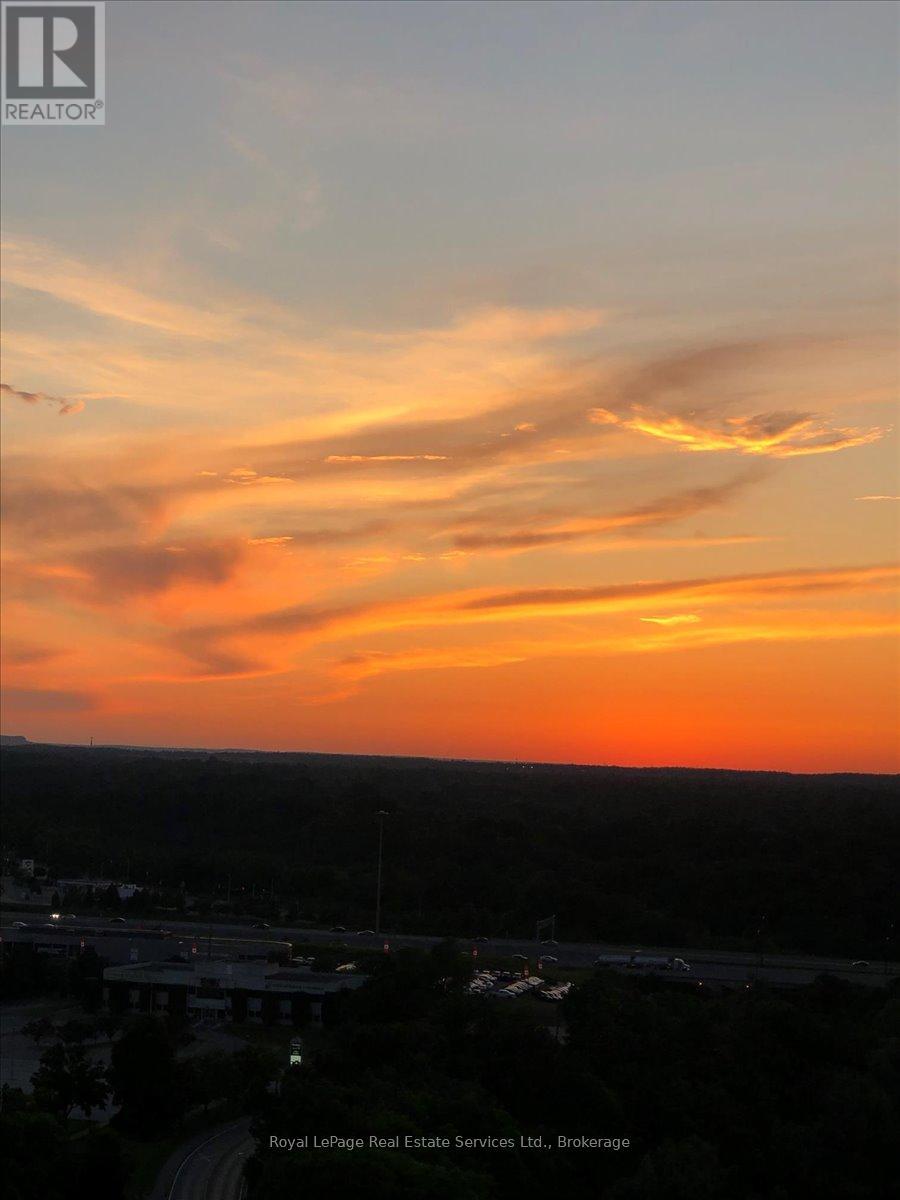 Bright, spacious with gorgeous unobstructed escarpment N/W views. Immaculate open concept unit in highly desirable Rain Condos. Includes one underground parking spot and locker. Centrally located in trendy Kerr Village, steps to shopping, downtown Oakville, Go and easy highway access. 9' ceilings, granite, s/s appliances, ensuite laundry and an oversized private open balcony makes for great easy living. 24 hour concierge, quality laminate t/o, generous rooms, contemporary kitchen, ample closet and storage space. Building amenities include indoor pool, guest suites, roof top terrace, visitor parking plus so much more. BB'S's are permitted. Perfect for commuter, professionals looking for urban lifestyle with all the perks. Tenant pays Water and Hydro. (id:64974)