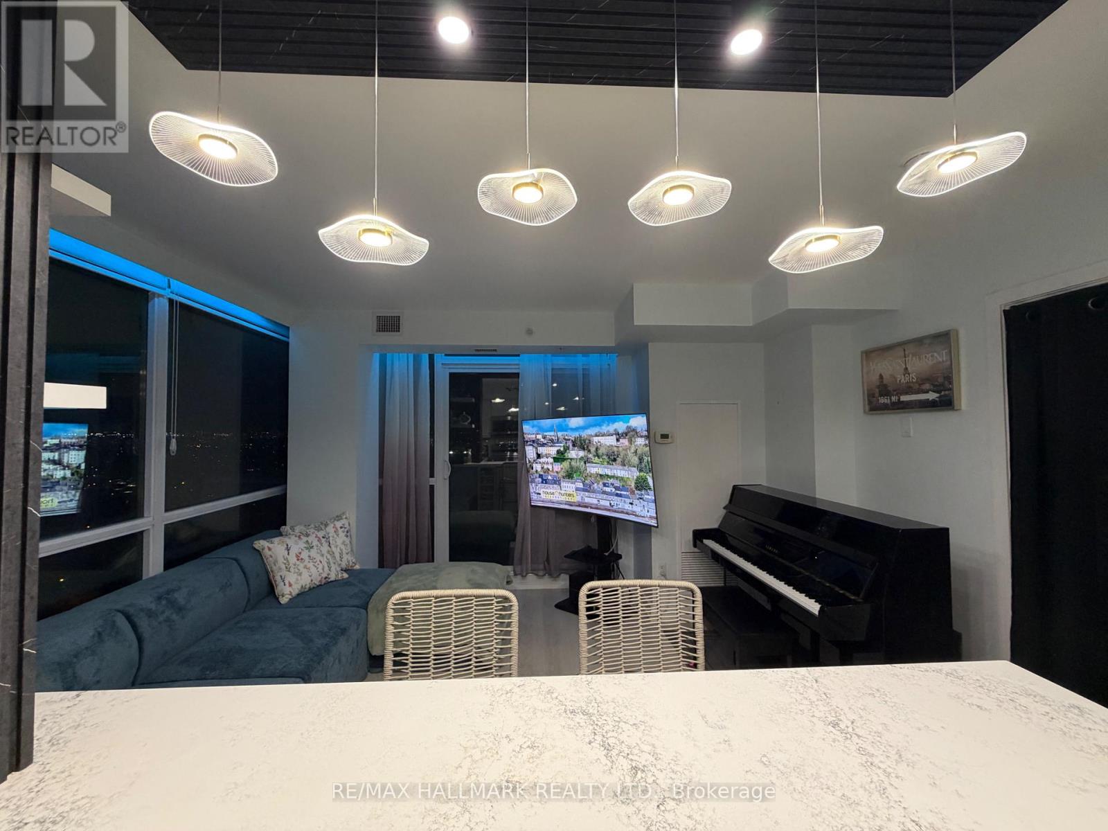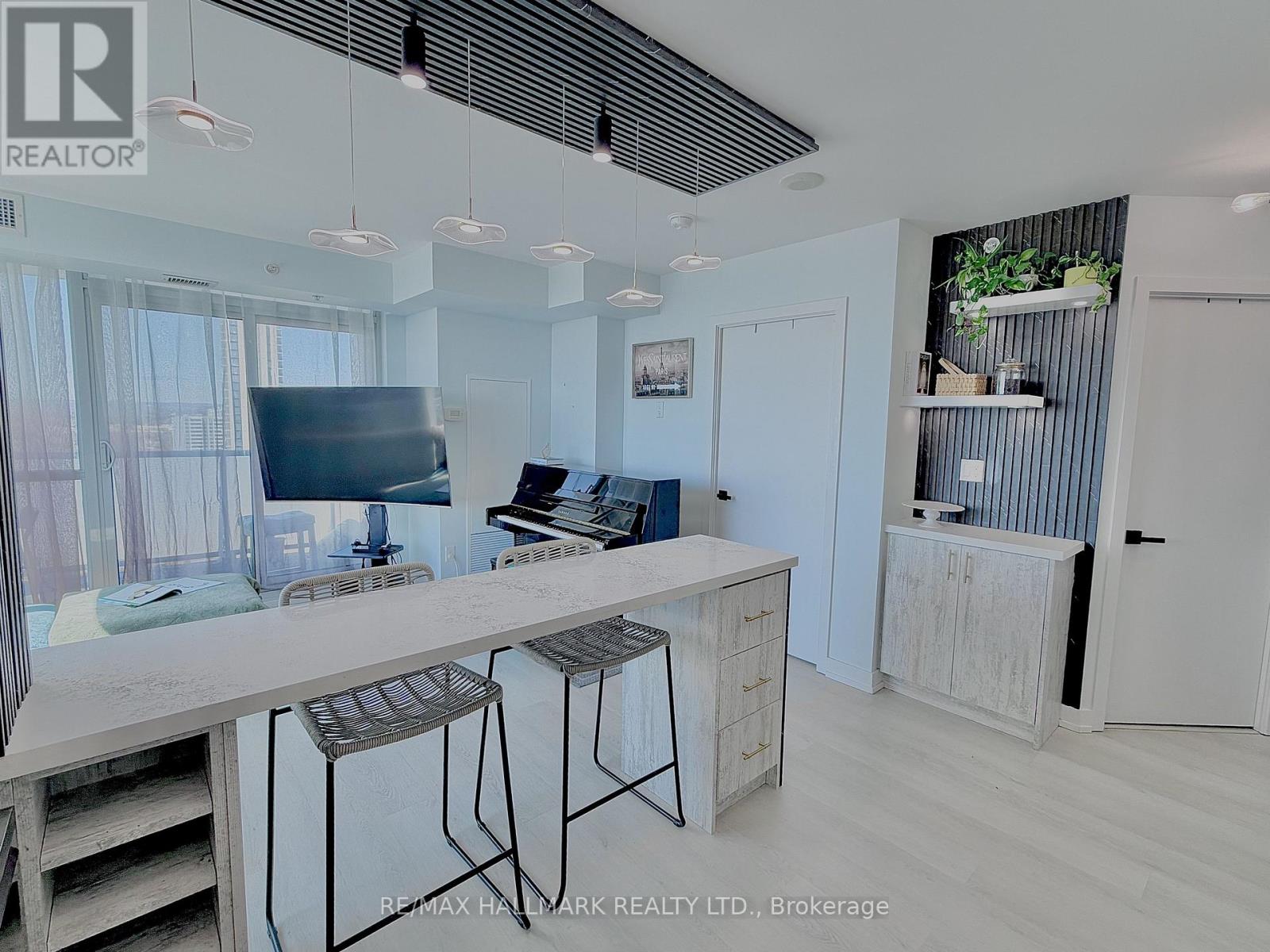 Welcome to this stunning, sun-drenched South West facing Condo suite in the Heart of North York. Absolutely fully reno'ed from top to bottom, every square inch of this home was done to the 10ths, spent over $60K in reno budget. This home features new light laminate floors, bright custom lighting throughout, artsy focal point wall as one of the highlight of this home along with a large mirror around the hallway area great feature to maximize projection on the space. Oh ohhh.. the Living/Dining/ Kitchen kept the home cozy and inviting, there are many different mood lights throughout the space, it is best to experience it at night. The Kitchen itself is an absolute must to spend time cooking like a chef, bright and airy, white cabinetry with a stone countertop and backsplash, a custom built in Island/ Eating space anchored by a custom floating light fixtures enhances the ambiance of it all, extra shelves and coffee/bar area, newer stainless steel appliances, high end washer and dryer combo and so much more. The Primary Bedroom has tremendous upgrades includes all built in Custom closet organizers, spa like master bathroom with rain shower and a two thousand dollar Japanese toilet with heated and water massage seat, auto clean functionality and so much more. The second bedroom is an absolute delight drench with all natural lights and built in closet organizers. This home is an extension of the home owners personality full of life and happy experiences and you can truly make this space so uniquely top not in every square inch of this home for the new well deserving homeowner today.Step out onto your private two balconies and unwind with a glass of wine while enjoying breathtaking sunset views and your gardening needs. Steps to TTC, GO Station, and the YRT bus terminal (only 200 meters away), with quick access to Highways 401, 404, 407, and Hwy 7. If you are a serious about finding the perfect home for you at Yonge and Finch corridor... This is a must-see! (id:64974)