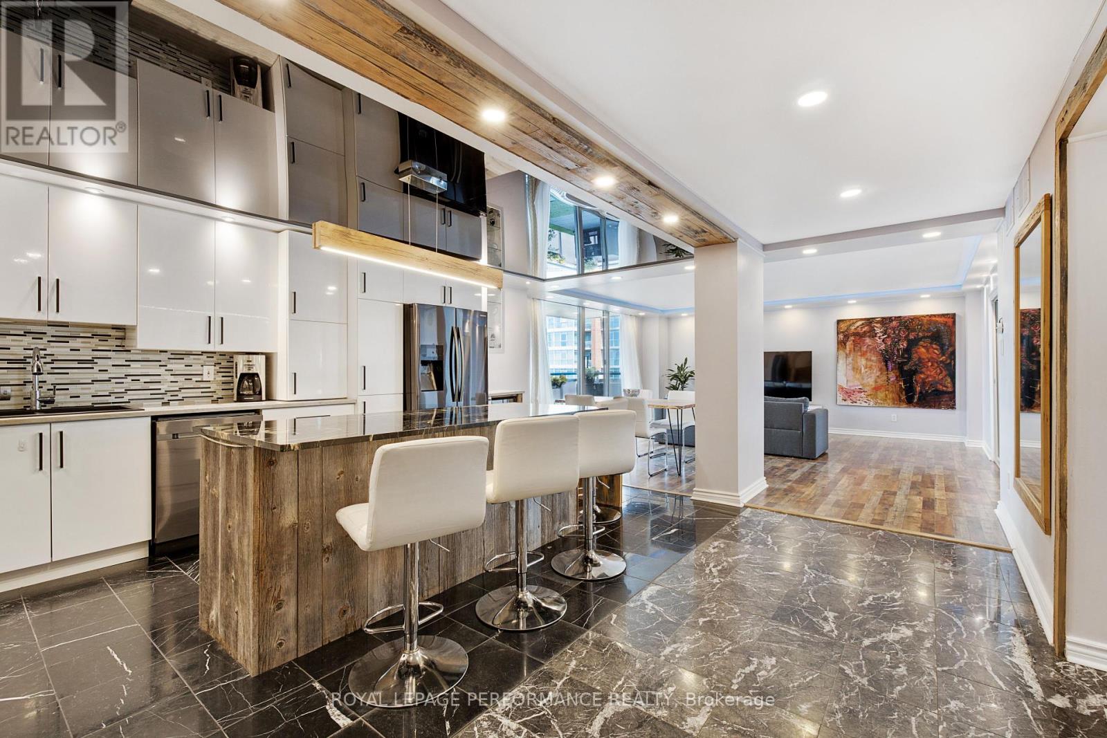 Experience elevated living at 160 George Street, a prestigious address in Ottawas vibrant ByWard Market! Perfectly situated just steps from the University of Ottawa, Rideau Centre, Parliament Hill, and countless shops and cafés, this bright and spacious 2-bedroom, 2-bathroom residence offers over 1,600 square feet of fully renovated luxury. The custom kitchen is a true show-piece, complete with sleek lacquer cabinetry, marble countertops, stainless steel appliances, an island, and a built-in wine fridge-designed for both everyday living and entertaining. The serene primary suite features a walk-in closet and a sleek ensuite bathroom, while the second bedroom offers versatility as a guest room or spacious home office. Both modern bathrooms are beautifully finished with high-end details, providing a spa-like retreat at home. Residents of The St. George enjoy outstanding amenities, all conveniently located on the third floor of the building, including a heated indoor pool, fitness centre, sauna, guest suite, 24-hour security, and a beautifully maintained terrace with BBQs. This unit also includes one underground parking space and an exclusive-use storage locker. Don't miss your chance to call 160 George Street, Unit 1905 home. Visit NickFundytus.ca for more details. (id:64974)