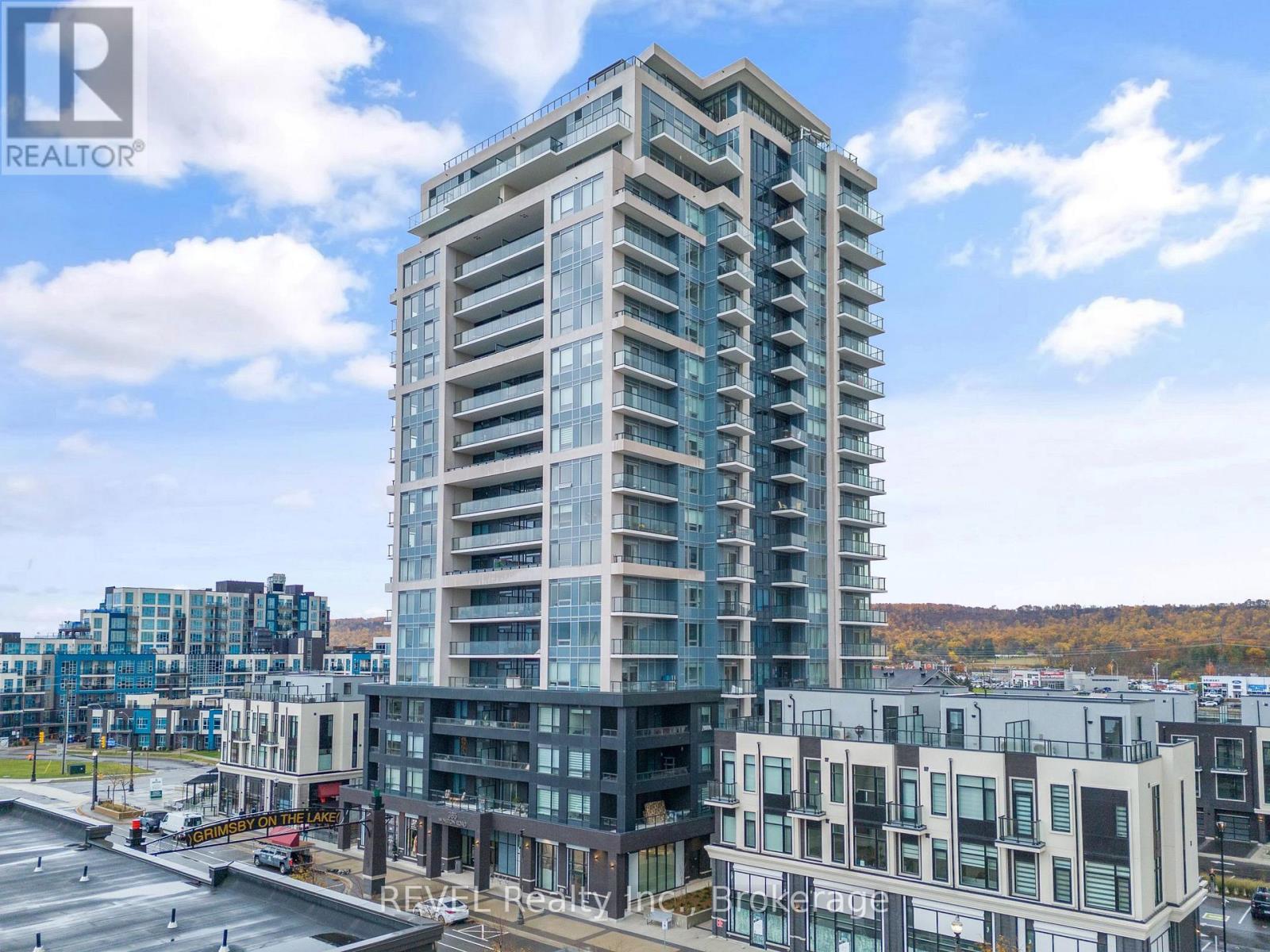 Welcome to refined penthouse living by the lake. Perched on the 19th floor in the sought-after Grimsby on the Lake community, this stunning 2-bedroom suite showcases breathtaking views of Lake Ontario and the Niagara Escarpment. Designed with both comfort and sophistication in mind, the open-concept layout is highlighted by soaring ceilings and expansive windows that flood the space with natural light. The contemporary kitchen features stainless steel appliances, quartz countertops, and a generous island perfect for entertaining or casual dining. Step onto your private balcony and take in the ever-changing backdrop of water, sky, and seasonal colour - an ideal extension of your living space. This unit also offers the convenience of in-suite laundry, one underground parking space, and a storage locker. Residents enjoy premium building amenities including a fitness and yoga studio, rooftop terrace with outdoor kitchen, bike storage, and more. Just steps from waterfront trails, local cafés, restaurants, and boutique shops, this is lakeside living at its finest. Book your private showing today! *All photos were taken when the unit was vacant* (id:64974)