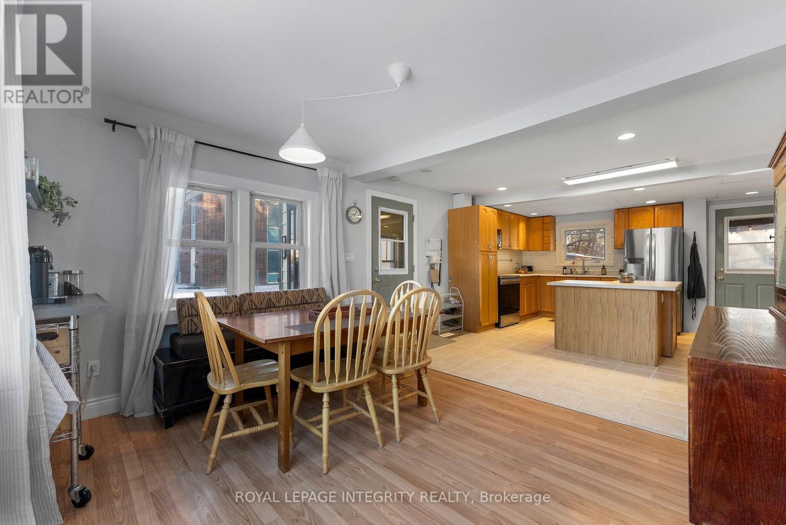 Welcome to this charming and well-maintained home ideally located just steps from Downtown Arnprior. Offering a wonderful blend of character, space, and modern conveniences, this property sits on a large lot with an expansive backyard, abundant parking and a large storage shed, perfect for families, hobbyists, or those who love outdoor space. The main level features beautiful crown moulding and a bright front living room with elegant French doors leading to a dedicated main level bedroom/office. The kitchen is both functional and inviting, complete with an island, pot lighting and easy access to the sunroom, great for entertaining or relaxing year round. Adjacent is a sun-filled dining room with laminate flooring and bright windows. A convenient main level bathroom and laundry add to the home's practicality. The spacious primary bedroom includes two closets, a screened balcony and a private en-suite with a jet tub and offering a perfect retreat at the end of the day. Three additional bedrooms and a full family bathroom. The basement includes a versatile craft room and showcases the home's solid construction with a combination of stone and poured concrete foundation. Location truly sets this home apart. Enjoy the ultimate walkable lifestyle with downtown shops, fantastic restaurants, the library, movie theatre and Robert Simpson Park all nearby. A rare opportunity to own a spacious property in the heart of Arnprior-this home offers comfort, convenience, and community all in one. (id:64974)