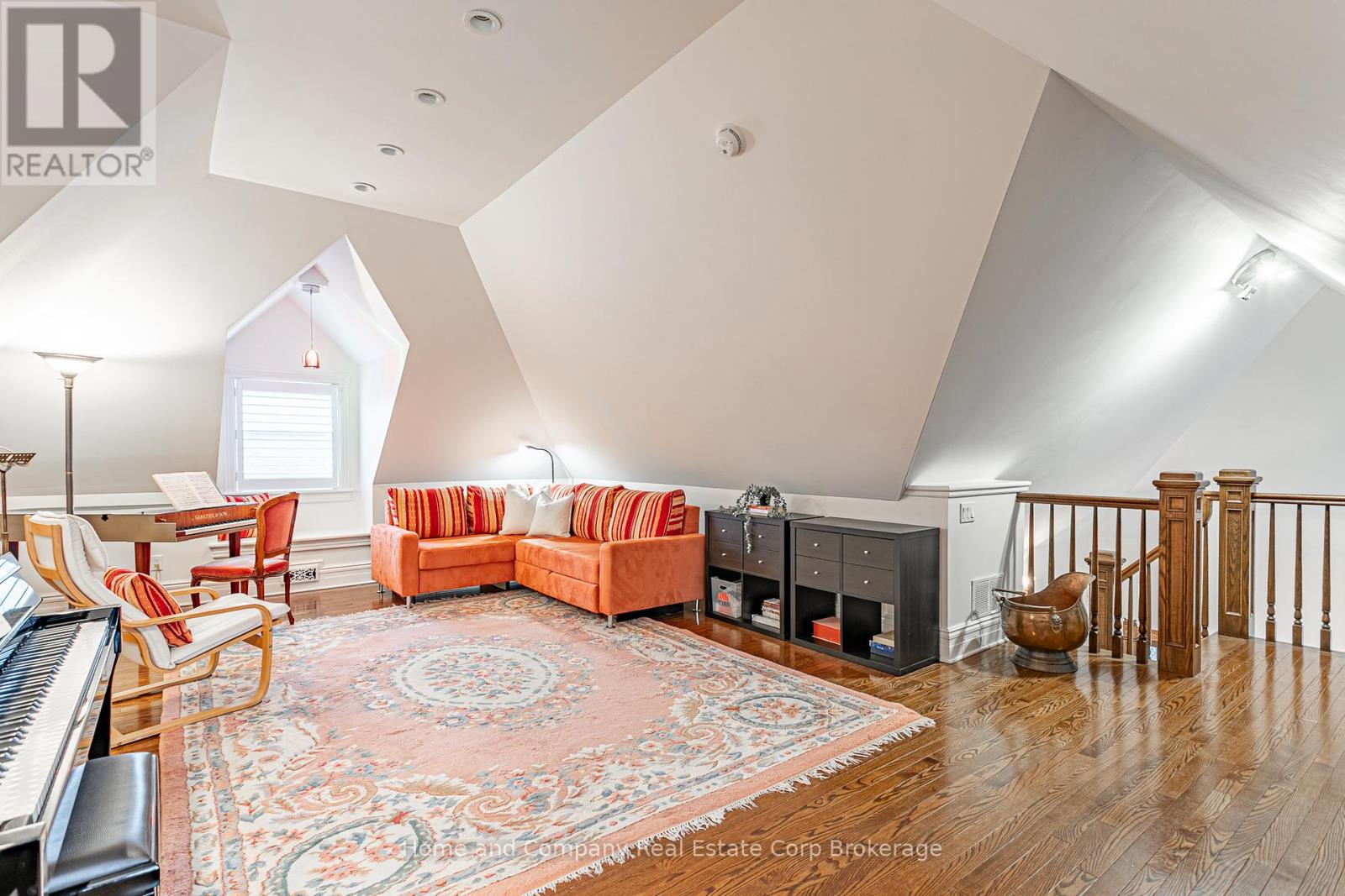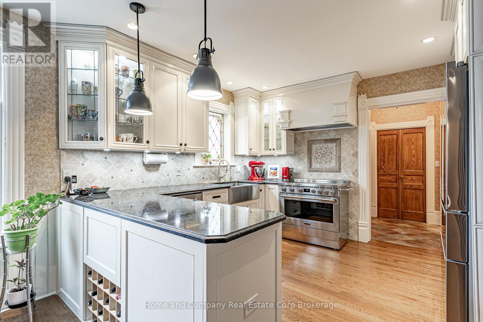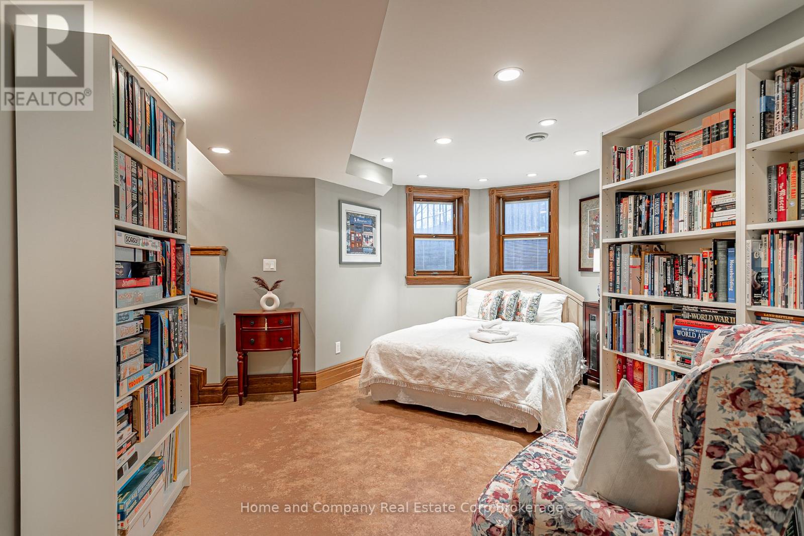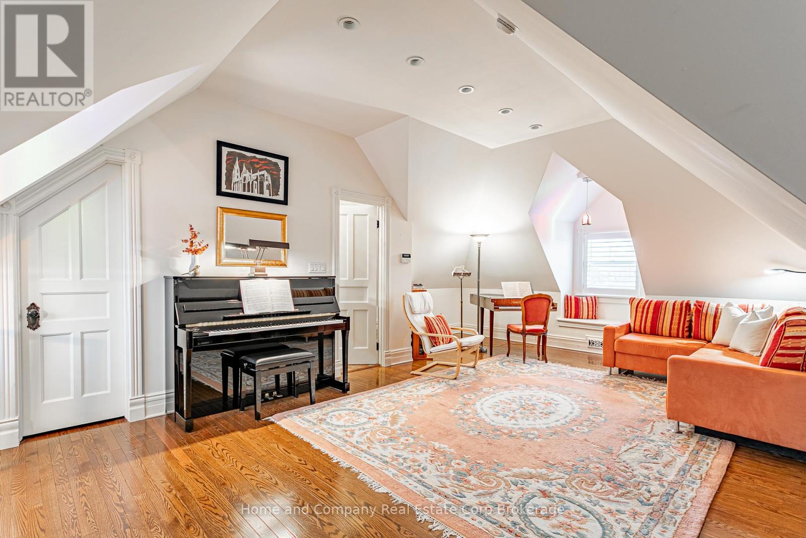 Absolutely striking, Classic Edwardian red-brick (4+ Bedroom) century home, Circa 1905. Beautifully preserved, and meticulously maintained, 191 Cobourg Street is the perfect combination of quiet elegance, rich architectural period details and craftmanship, mindful contemporary updates, plus an exquisite 4-storey addition (2006-2007) that incorporated period mouldings, high baseboards, vaulted ceiling, and an exceptional bookcase. This home has had $200K + invested in recent updates and renovations since 2022. The detailed/extensive list of Updates and Renovations can be sent upon request. Significant (among other noted updates), is the new detached-garage, which was designed and enlarged for a larger vehicle, wired for a level 2AC Vehicle charger, upper storage space, with cleaned/and reclaimed brick from the former garage. Touches of stained-glass windows, Juliet balcony, an exquisitely carved fire-place mantel in the living room, a well-proportioned dining room, superbly finished 4th floor space (optional bedroom), Fully finished lower Level, perfect for guests, or multi-generational potential, and updated amenities make it as functional as it is charming. Heated Floors in Mudroom, Recreation room and Library. The lovely, and private porch, coupled with the rear-yard-side patio offer quiet outdoor space to enjoy leisure time. With it's highly desirable street, perfectly positioned to the Avon River, and just moments to Stratford's renowned Festival and Tom Patterson Theatres, and an easy walk to the restaurants and the shops the core...this home has a 10+ Location, it is a Gem! (id:64974)