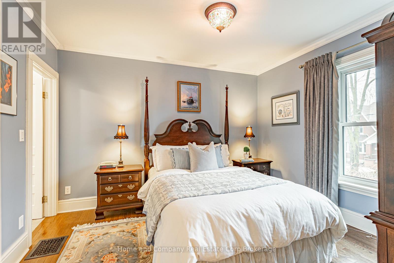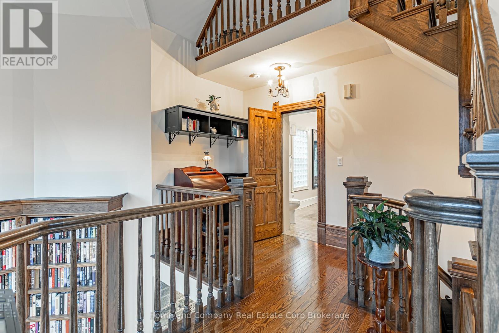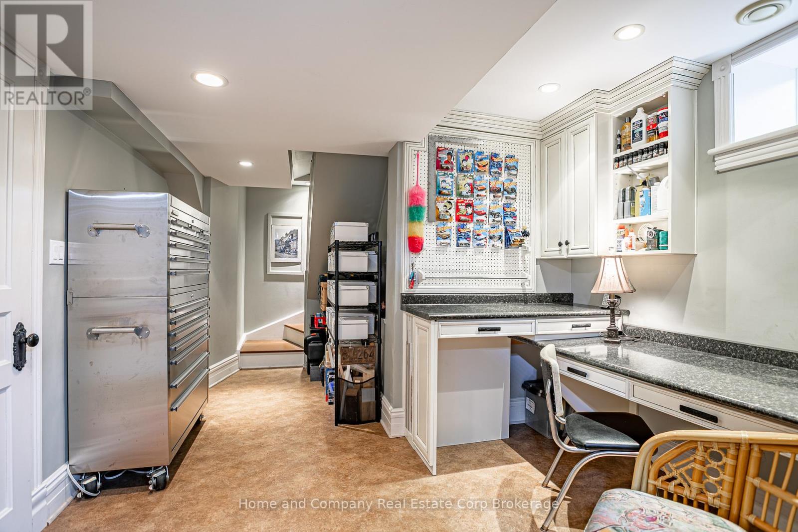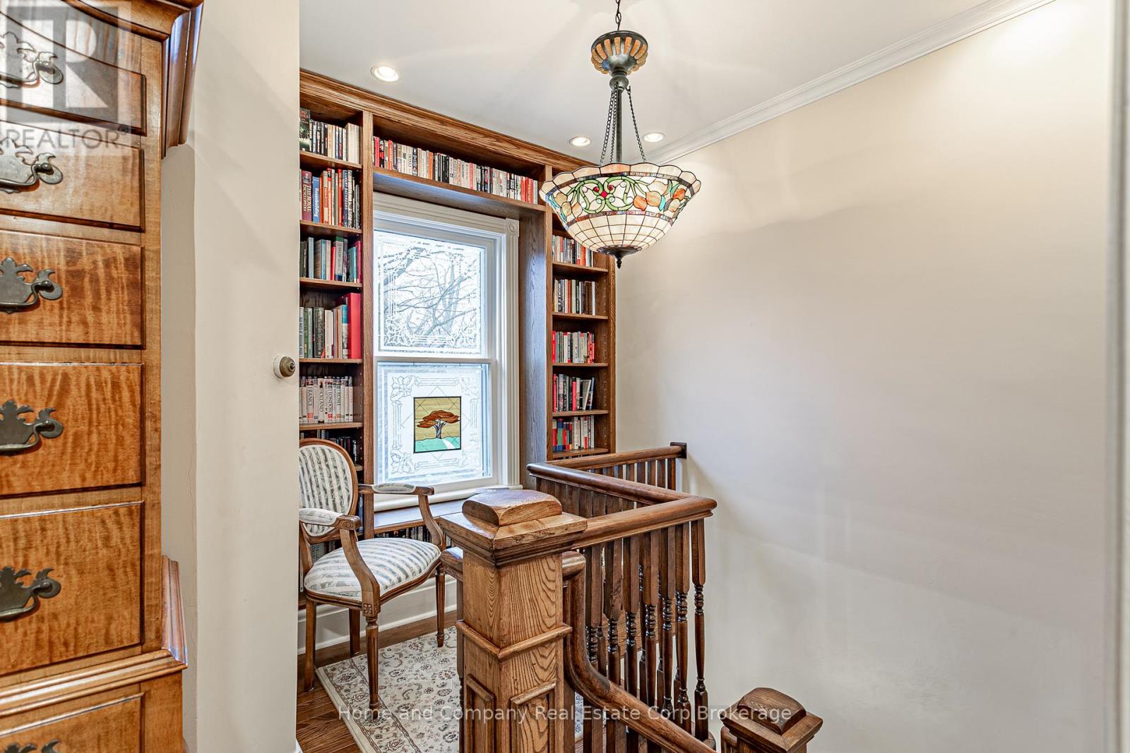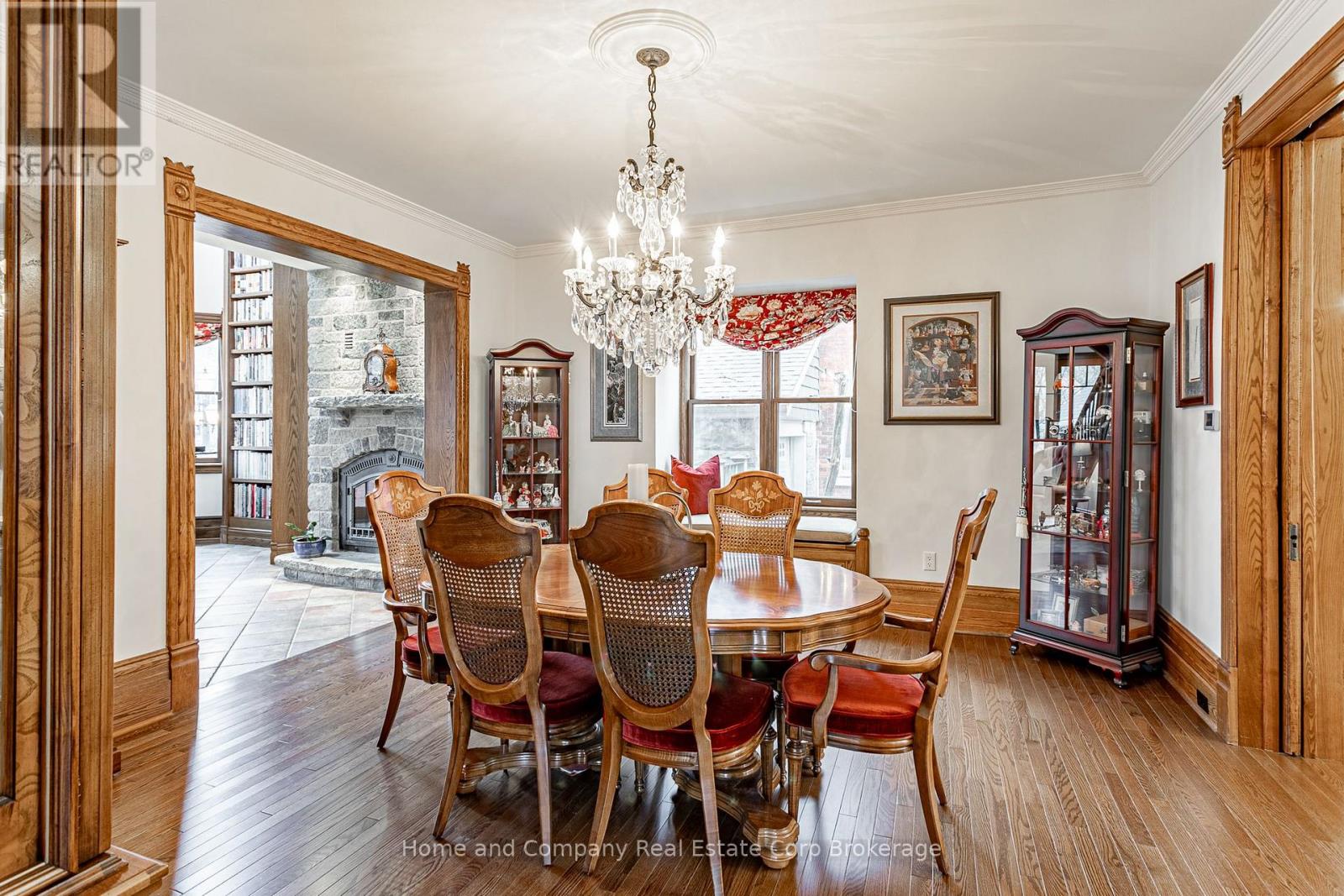 Absolutely striking, Classic Edwardian red-brick (4+ Bedroom) century home, Circa 1905. Beautifully preserved, and meticulously maintained, 191 Cobourg Street is the perfect combination of quiet elegance, rich architectural period details and craftmanship, mindful contemporary updates, plus an exquisite 4-storey addition (2006-2007) that incorporated period mouldings, high baseboards, vaulted ceiling, and an exceptional bookcase. This home has had $200K + invested in recent updates and renovations since 2022. The detailed/extensive list of Updates and Renovations can be sent upon request. Significant (among other noted updates), is the new detached-garage, which was designed and enlarged for a larger vehicle, wired for a level 2AC Vehicle charger, upper storage space, with cleaned/and reclaimed brick from the former garage. Touches of stained-glass windows, Juliet balcony, an exquisitely carved fire-place mantel in the living room, a well-proportioned dining room, superbly finished 4th floor space (optional bedroom), Fully finished lower Level, perfect for guests, or multi-generational potential, and updated amenities make it as functional as it is charming. Heated Floors in Mudroom, Recreation room and Library. The lovely, and private porch, coupled with the rear-yard-side patio offer quiet outdoor space to enjoy leisure time. With it's highly desirable street, perfectly positioned to the Avon River, and just moments to Stratford's renowned Festival and Tom Patterson Theatres, and an easy walk to the restaurants and the shops the core...this home has a 10+ Location, it is a Gem! (id:64974)