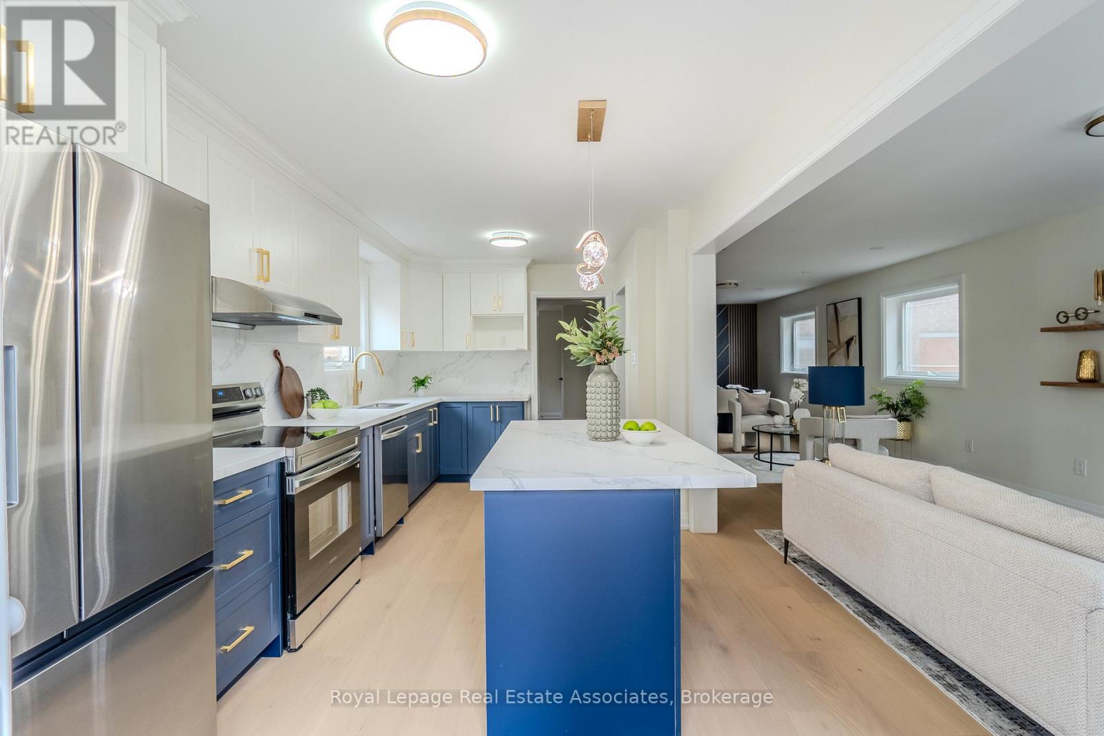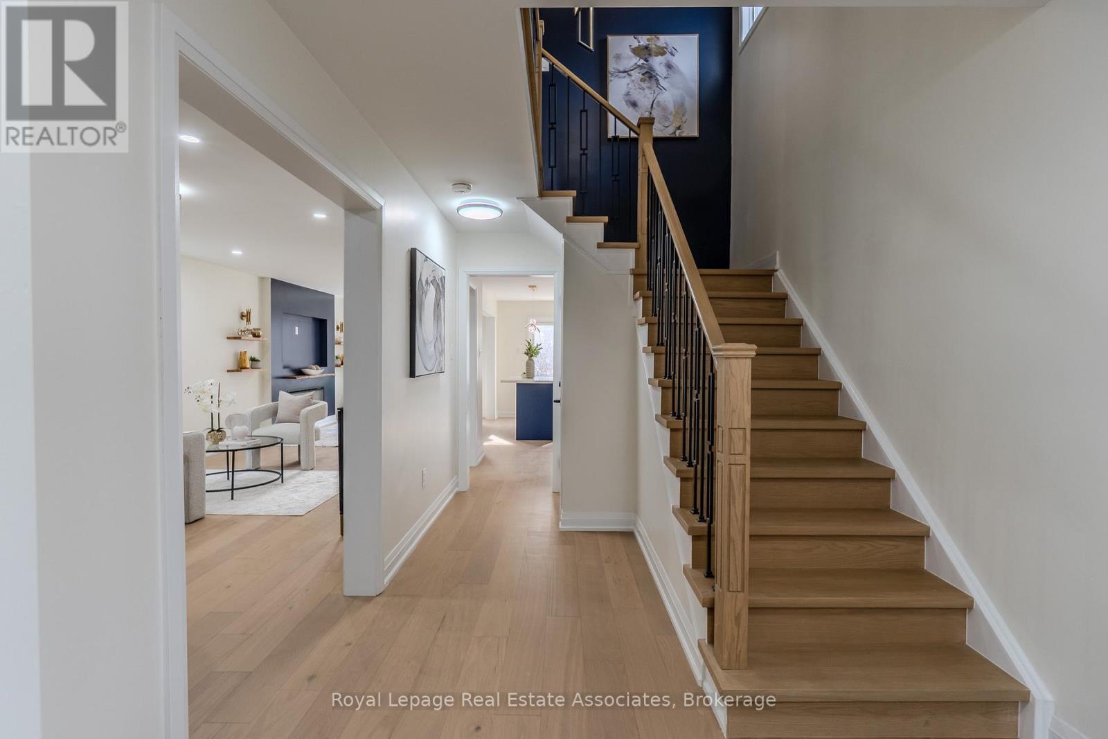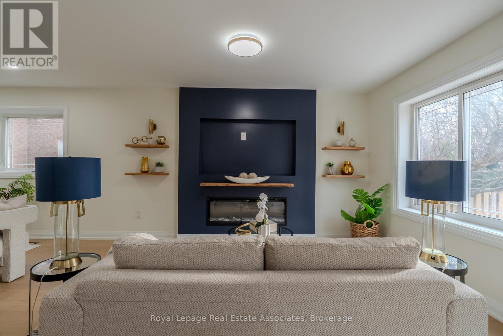 Legal Duplex Detach House Completed Renovated From Top to Bottom. Owner has Spent $200k on Upgrades. This 2 Car Garage Beauty is located in River Oak Community. Backing onto the Trail with complete privacy and greenery all around. With Over 2500 sqft of living space is Ideal for first-time home buyers or upsizer. The Grand Entrance door welcomes you to a very open concept layout with Dining and Living room combined. Accent wall panels give a touch of contemporary style. The Two Tone Kitchen is upgraded with high-quality MDF materials and conveniently located on Centre Island have tons of storage. Light Backsplash and Quartz countertop make the kitchen more standout with Dark Blue accent cabinets. Watch Netflix by turning on cozy electric fireplace or sip a cup of coffee by overlooking ravine view from your living room couch. Backyard has a good split of New Concrete Deck and Grass. Laundry is located upstairs next to Powder room. Upstairs you will find brand-new oak stairs with Iron Pickets. Primary Bedroom has Upgraded 3 Pc Ensuite and 1 Large Closet. Other Three Bedooms are good-sized and shared between 1-4 pc upgraded washroom. Basement has Legal separate Entrance. Wide Basement Stairs leads to 2 full-size bedrooms with 1 washroom. Living room has large exit windows. L shape Kitchen is equipped with Brand New Appliances. Seperate Laundry room for basement. Additonal Rental Income can help you qualify for More Mortgage. Asphalt on Front Driveway and Sodding in Backyard will be installed before final closing, due to weather condition it cant be done at the moment. Ideally located just steps to Holy Trinity Catholic Secondary School and River Oaks Community Centre, and close to parks, extensive trail network, top-ranked schools, shopping, dining, hospital, and everyday amenities. A rare opportunity to own a truly turnkey family home in one of River Oaks most desirable locations. This is the lifestyle you've been waiting for! Upgrade Feature list is Attached ** This is a linked property.** (id:64974)