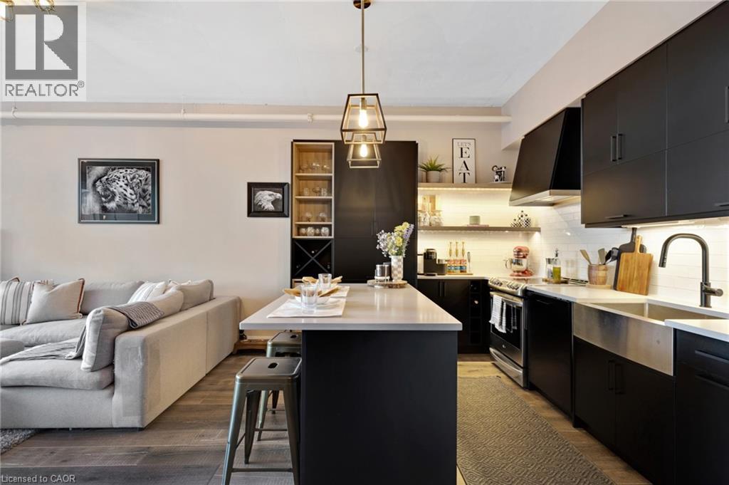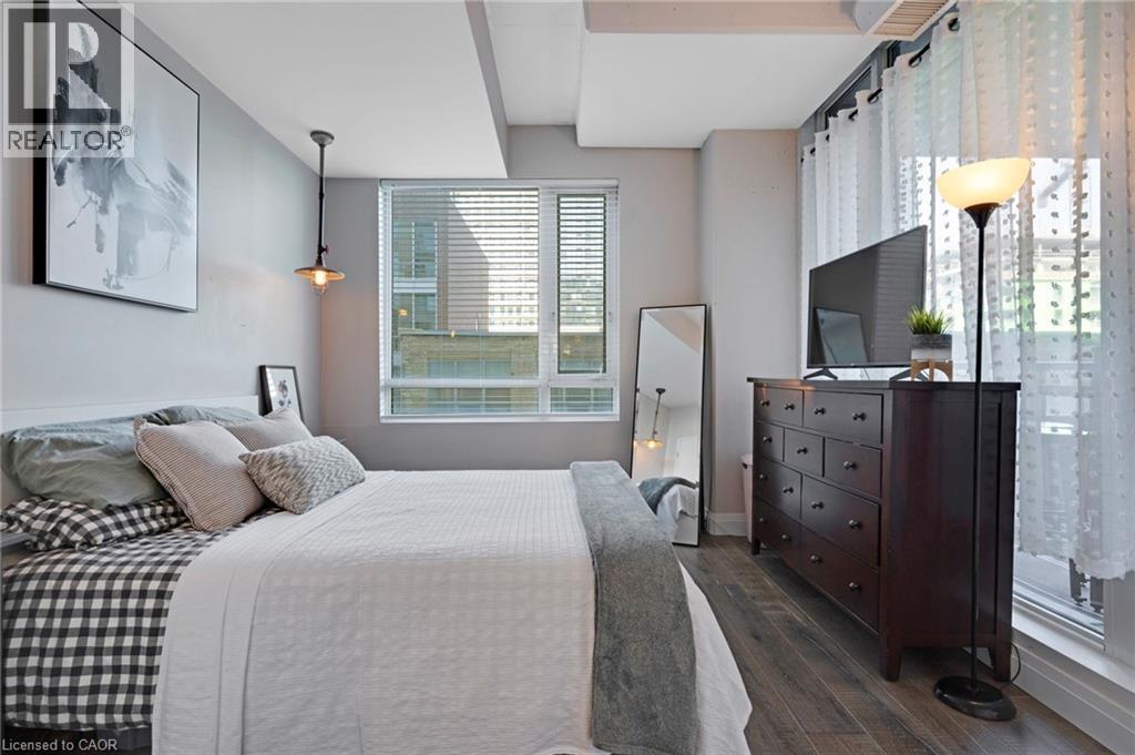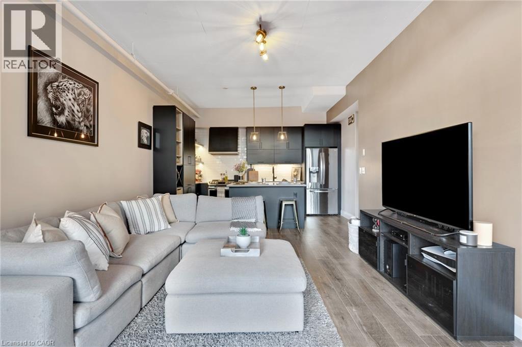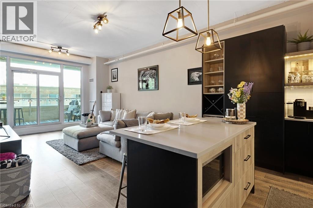 Bright & spacious 1-bedroom plus den, 2-bathroom condo in the sought-after Bauer Lofts, located in the heart of the Uptown Waterloo. This unit comes with high ceilings, large windows, & a carpet-free interior and has 1 garage parking spot as well as a conveniently located storage locker found on the same level close to the suite. The beautifully updated kitchen offers a modern design with an island, stainless steel appliances, & plenty of workspace. The living room has floor-to-ceiling windows that create an open & airy feel. The primary bedroom is generously sized with large windows & features a spacious ensuite bathroom complete with a soaker tub & separate shower. The den provides a flexible space that works well as a home office/study area. The unit also includes a powder room & the convenience of in-suite laundry. Residents of Bauer Lofts enjoy access to excellent amenities including an exercise room, party room, and a community BBQ area, on the rooftop deck. The location is one of the property’s biggest highlights and is known for its walkability, vibrant culture, nearby universities, parks, trails, boutique shopping, & excellent restaurants. Right next door you’ll find Vincenzo’s, a well-known European-style specialty market and the highly regarded Bauer Kitchen. You are just minutes from the ION Light Rail Transit stop & public transit routes and a short walk to Uptown Waterloo, Waterloo Park, & the popular Iron Horse Trail. Don’t miss out on this amazing opportunity and book your showing today! (id:64974)