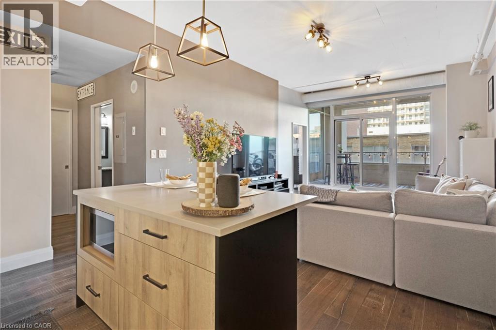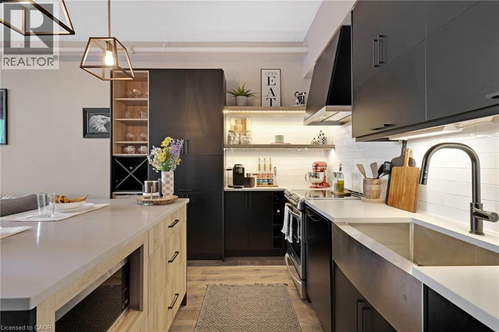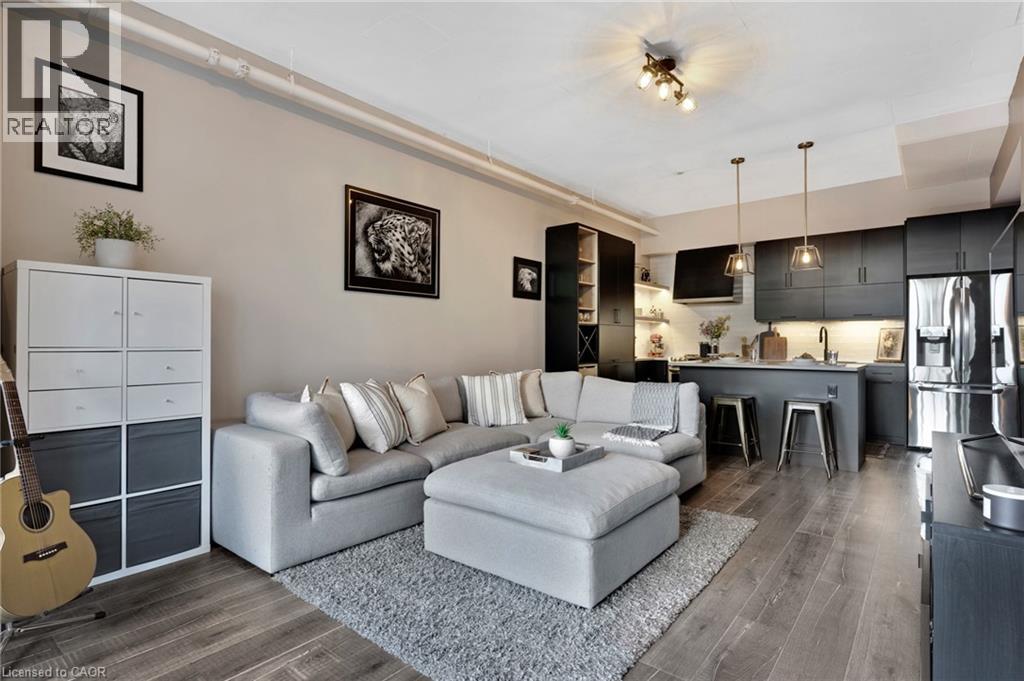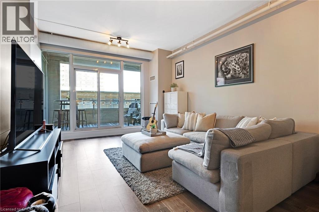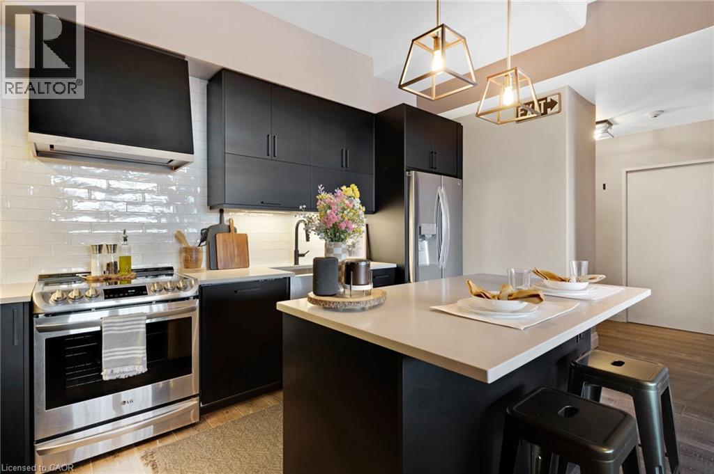 Bright & spacious 1-bedroom plus den, 2-bathroom condo in the sought-after Bauer Lofts, located in the heart of the Uptown Waterloo. This unit comes with high ceilings, large windows, & a carpet-free interior and has 1 garage parking spot as well as a conveniently located storage locker found on the same level close to the suite. The beautifully updated kitchen offers a modern design with an island, stainless steel appliances, & plenty of workspace. The living room has floor-to-ceiling windows that create an open & airy feel. The primary bedroom is generously sized with large windows & features a spacious ensuite bathroom complete with a soaker tub & separate shower. The den provides a flexible space that works well as a home office/study area. The unit also includes a powder room & the convenience of in-suite laundry. Residents of Bauer Lofts enjoy access to excellent amenities including an exercise room, party room, and a community BBQ area, on the rooftop deck. The location is one of the property’s biggest highlights and is known for its walkability, vibrant culture, nearby universities, parks, trails, boutique shopping, & excellent restaurants. Right next door you’ll find Vincenzo’s, a well-known European-style specialty market and the highly regarded Bauer Kitchen. You are just minutes from the ION Light Rail Transit stop & public transit routes and a short walk to Uptown Waterloo, Waterloo Park, & the popular Iron Horse Trail. Don’t miss out on this amazing opportunity and book your showing today! (id:64974)