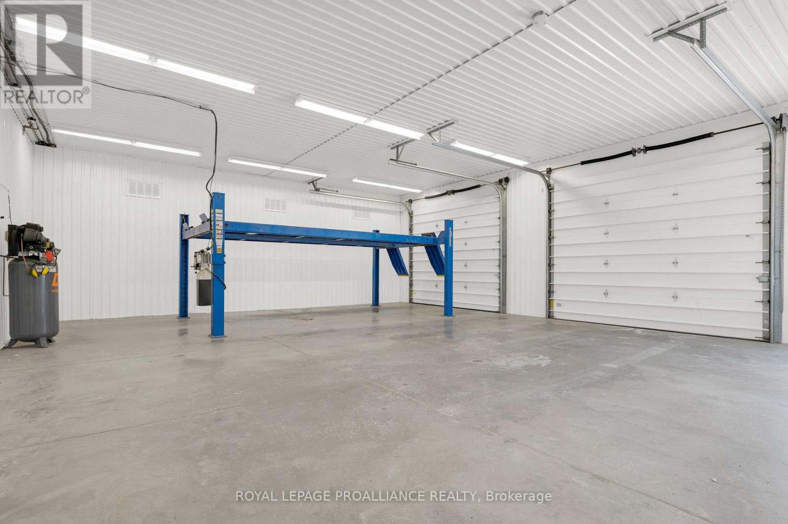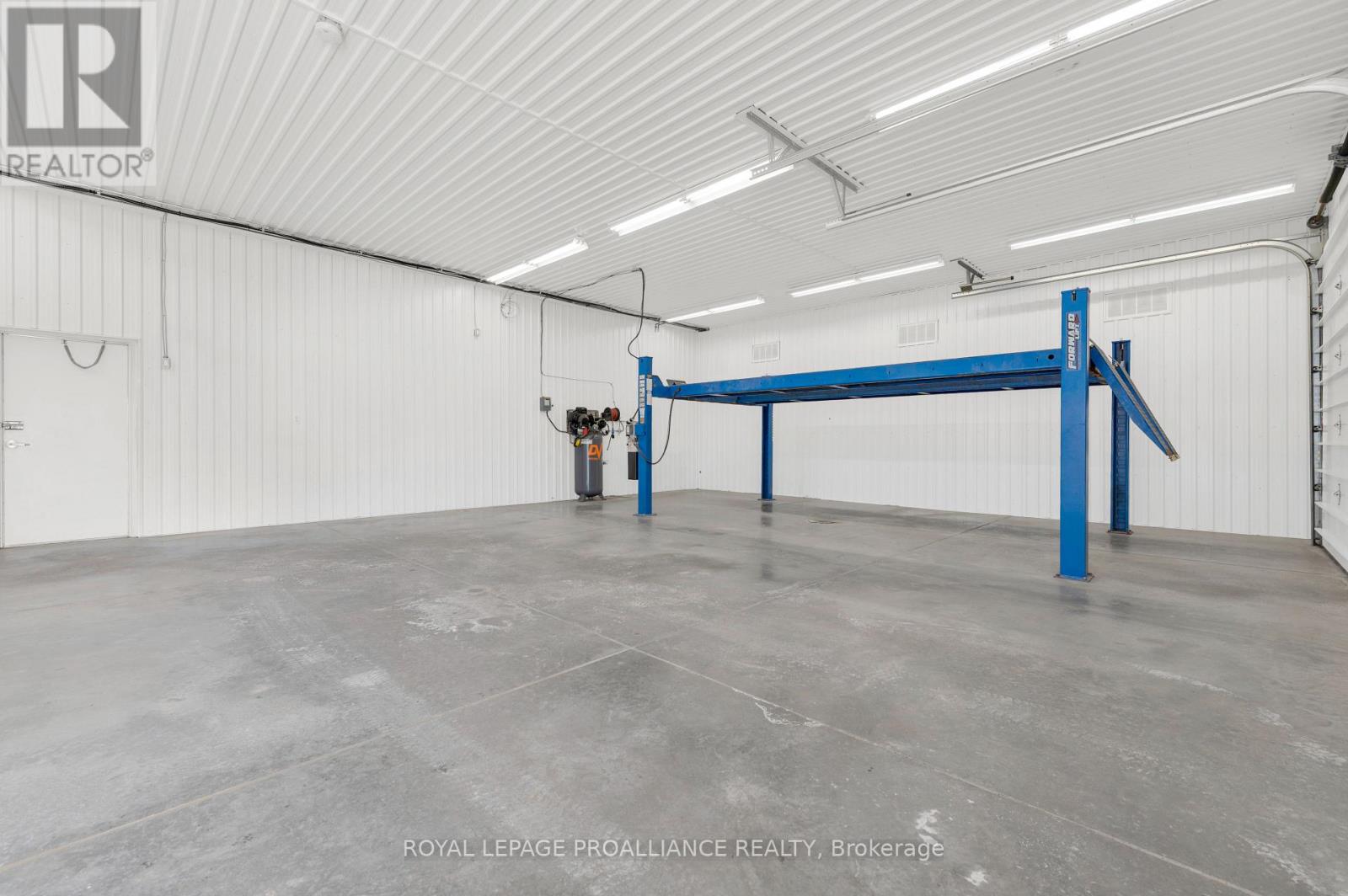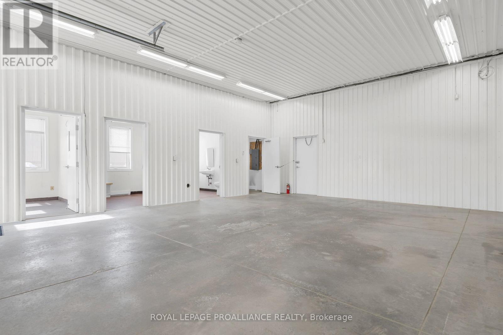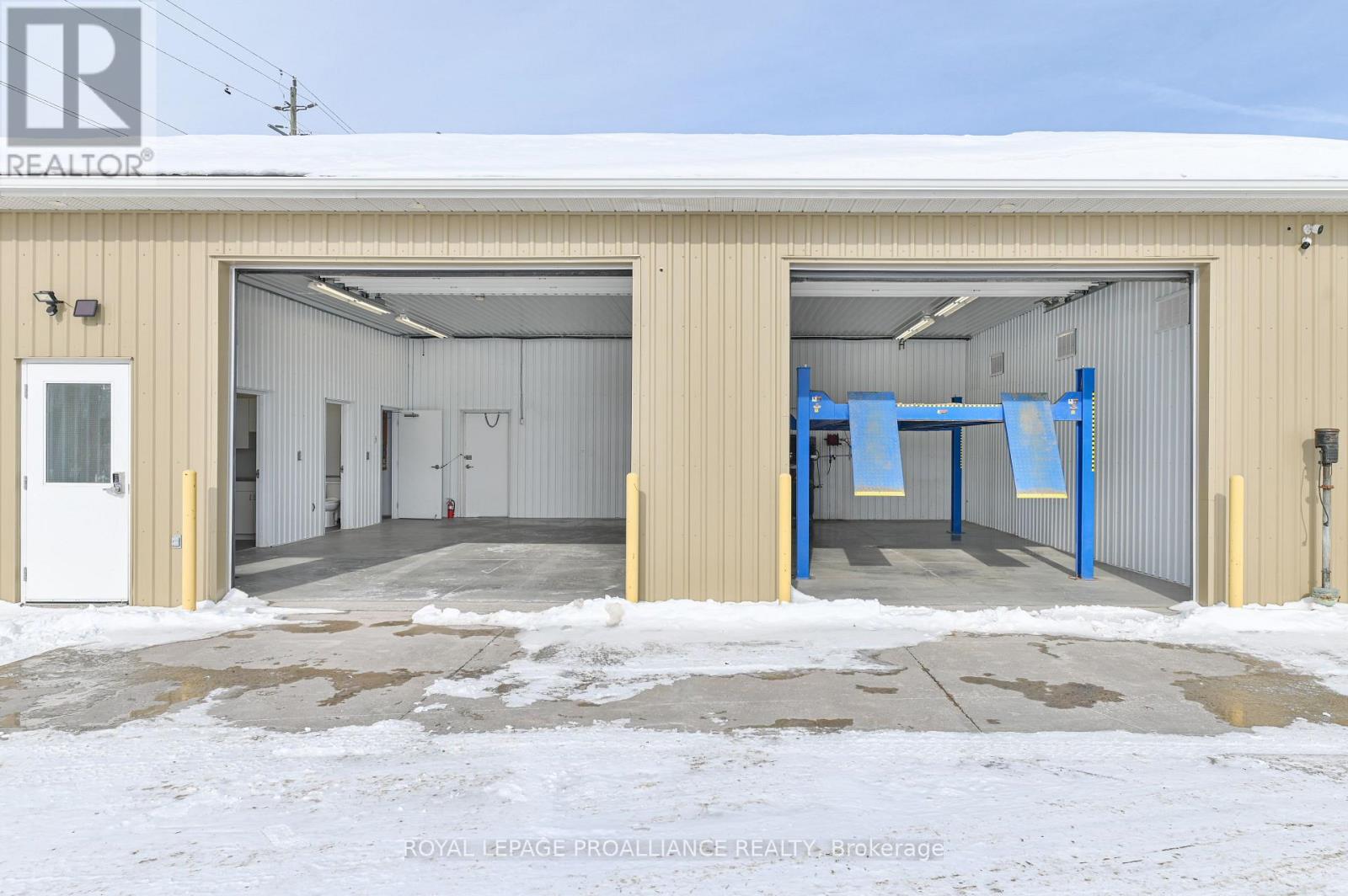 Conveniently located minutes from the 401 in Trenton's busy industrial area, this well maintained industrial space comes complete with everything you need to operate your successful business. 1,100 + sq ft clean bright shop space with two large 10x12 ft grade level overhead doors. Separate spaces include a front office, kitchenette with storage, 3 piece bath with shower stall, dedicated utility room and a private fenced rear patio. Ample head room fitted with a hoist that can be included or removed for even more floor space. 6 outdoor parking spots included + additional outdoor space negotiable Ideal for car detailing, woodworking, trades & contractors. Limitless possibilities to take your business to the next level. 6 outdoor parking spots included + additional outdoor space negotiable. (id:64974)
