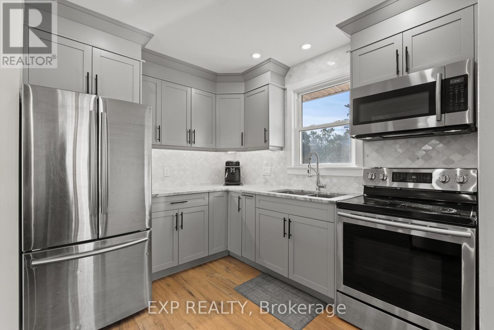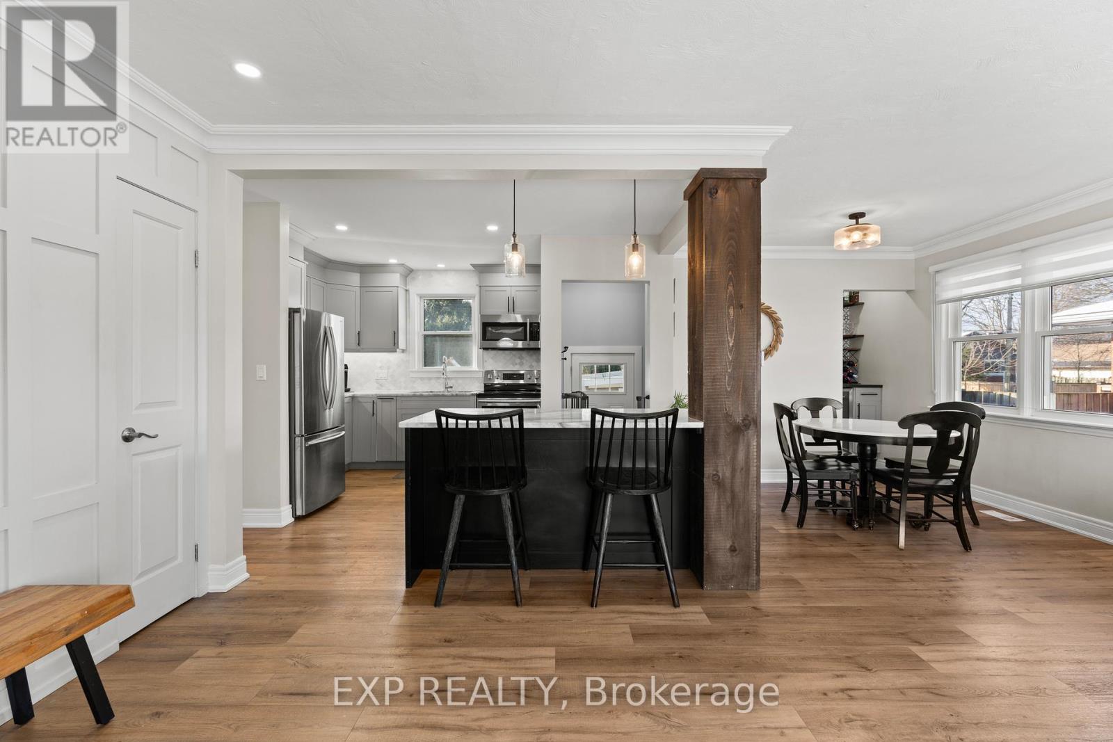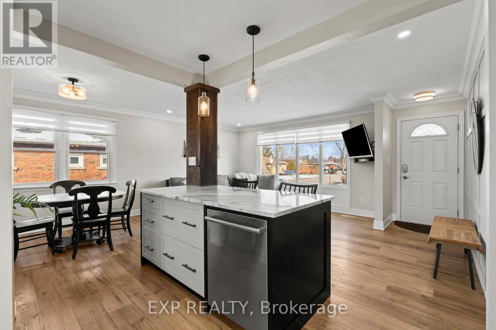 Welcome to this fully renovated home in a solid location, designed for easy, move-in ready living. Set on a quiet, tree-lined street in Welland's west end, this bungalow offers true turnkey living where the work has already been done and the design simply makes sense. The main floor features a bright, open-concept layout centred around a thoughtfully redesigned kitchen with granite countertops, a large island, and clean, modern finishes. It's a functional, comfortable space that supports everyday living without compromise. The fully finished basement adds valuable additional living space and includes a newly added 3-piece bathroom, ideal for a rec room, home office, or guest area. Major updates including electrical, furnace, A/C, and roof provide real peace of mind, especially for buyers looking to avoid unexpected costs. Outside, the deep 125 ft fenced yard offers practical outdoor space for families, pets, or entertaining. A detached garage and ample driveway parking add to the home's everyday convenience. Located on a quiet, low-traffic street just minutes from schools, parks, shopping, and highway access, this is a neighbourhood that continues to make sense for both lifestyle and long-term value. A home that feels right the moment you walk in. (id:64974)