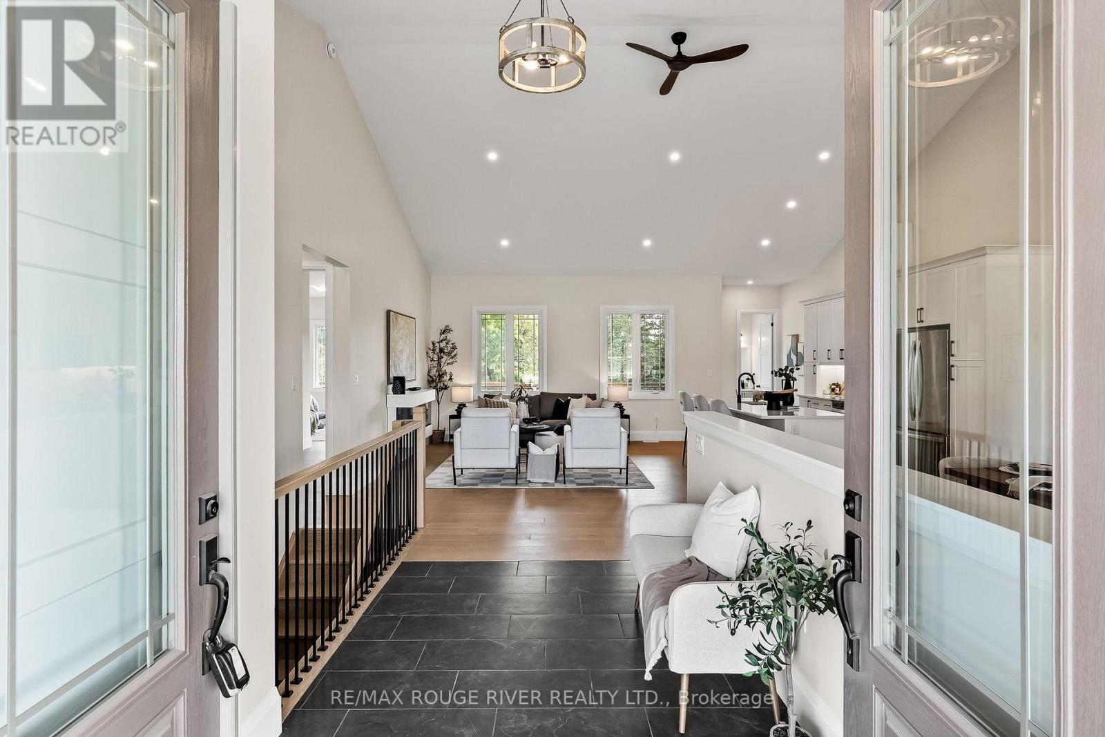 To Be Built - Custom built 3 bedroom bungalow by Davenport Homes in the rolling hills of Cavan. Modern designed stone and wood bungalow on a 3/4 acre lot in an exclusive subdivision just outside Peterborough. This open concept offers modern living and entertaining with a large over sized kitchen/dining/living area, extra bright with large windows and patio door. The spacious 29' x 12' covered deck is enjoyable all year long with it's privacy over looking the fields behind. Attention to detail and finishing shines through with such features as a vaulted ceiling, stone fireplace, and solid surface counter tops are some of the many quality finishings throughout. This spacious home will easily suit a growing family or retirees. The over sized double car garage will accommodate two large vehicles with 10' wide and 8' tall garage doors. This home is waiting for your custom touches such as designing your own gourmet kitchen. One of only 20 homes to be built in this community, offering an exclusive area close to the west end of Peterborough and easy access to HWY 115. Buyers can also choose from the remaining 15 lots and have your custom home designed. Builder welcomes Buyers floor plans. **EXTRAS** Lot Dimensions - 158.47 ft x 212.44 ft x 160.82 ft x 212. (id:64974)