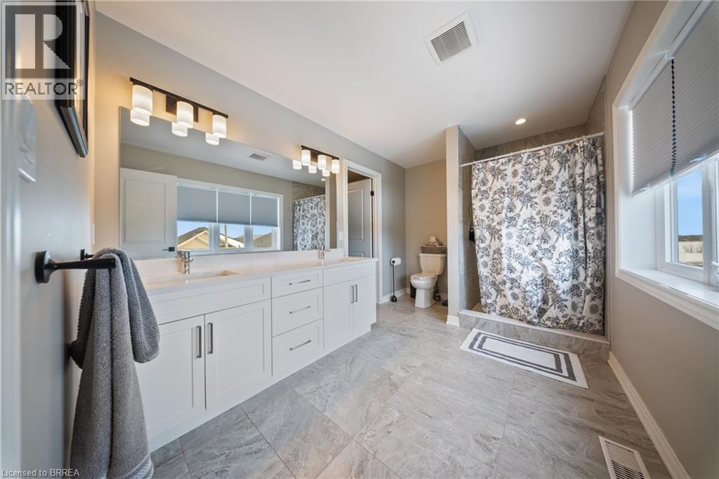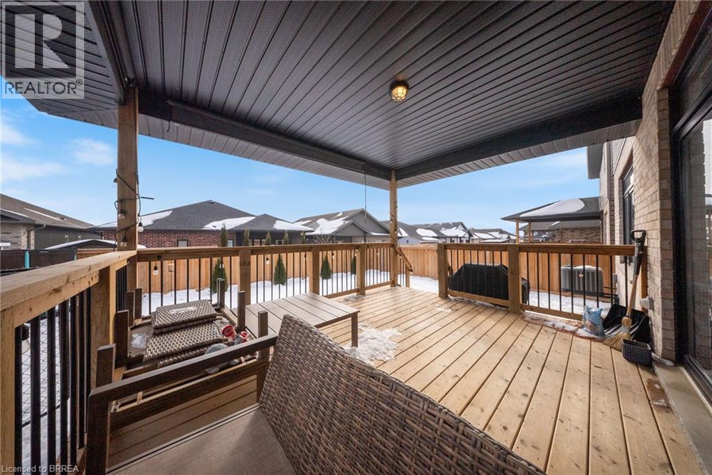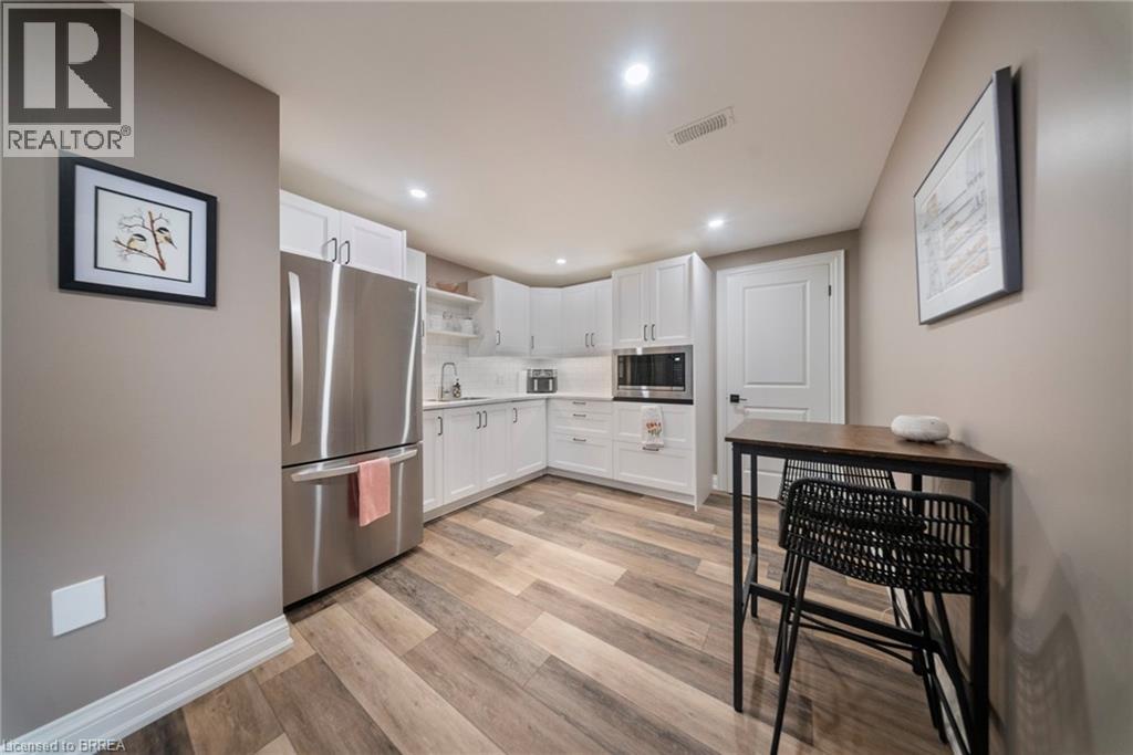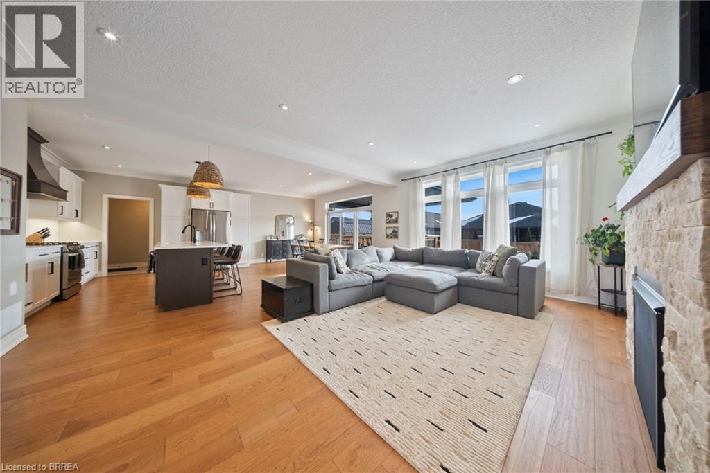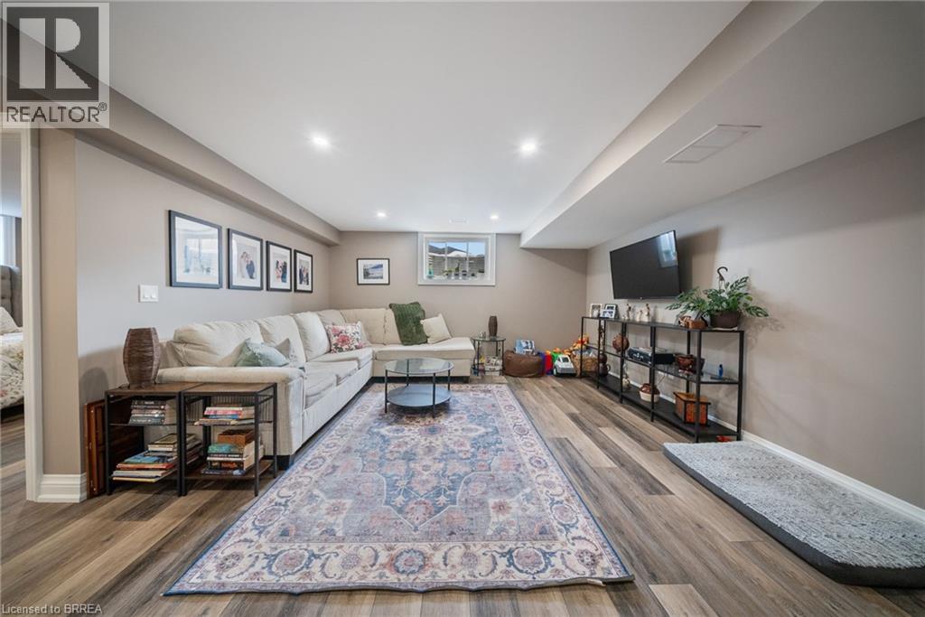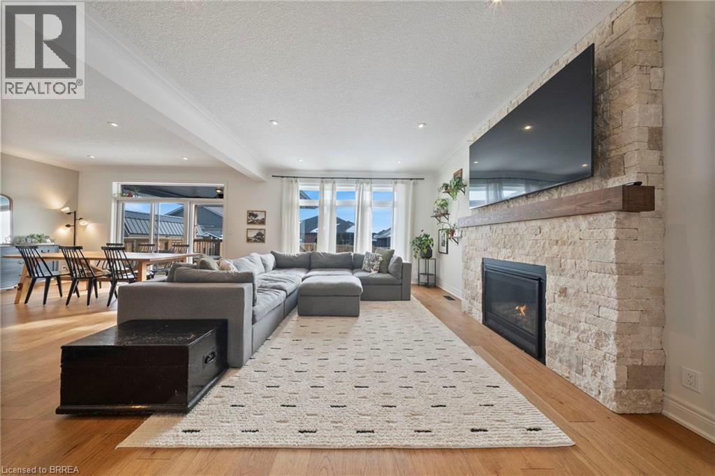 Welcome to this exquisite 2-storey home nestled in the charming town of Waterford—where timeless elegance meets modern luxury. Meticulously crafted and beautifully maintained, this stunning residence seamlessly blends contemporary design with refined comfort. The thoughtfully designed open-concept main floor provides effortless flow between the kitchen, dining area, and living room—an ideal layout for both everyday living and unforgettable entertaining. At the heart of the home is the chef-inspired kitchen, a true showstopper designed to impress. Featuring a spacious centre island with seating, sleek quartz countertops, a classic subway tile backsplash, premium stainless steel appliances, under-mount lighting, and refined crown moldings, this kitchen combines beauty and functionality in every detail. Whether preparing family meals or hosting guests, this space is sure to inspire. The living room exudes warmth and style with its striking stone-surround gas fireplace—perfect for cozy evenings—while the dining area offers sliding glass doors that lead to a covered deck, extending your living space outdoors for effortless indoor-outdoor entertaining. The fully finished lower level adds exceptional versatility, offering a spacious recreation room, convenient kitchenette, additional bedroom, and 2-peice bathroom—making it perfectly suited for an in-law suite or multi-generational living arrangement. Step outside to a fully fenced backyard designed for both relaxation and recreation. With ample space for entertaining, gardening, or letting children and pets play freely, this private outdoor retreat truly enhances the home’s appeal. The property also features an updated aggregate driveway, eye-catching glow-in-the-dark safety stones on the steps for added nighttime visibility, and a concrete and turf enclosed dog run—thoughtfully designed with both style and practicality in mind. Luxury living in a welcoming community—don’t miss this rare opportunity! (id:64974)
