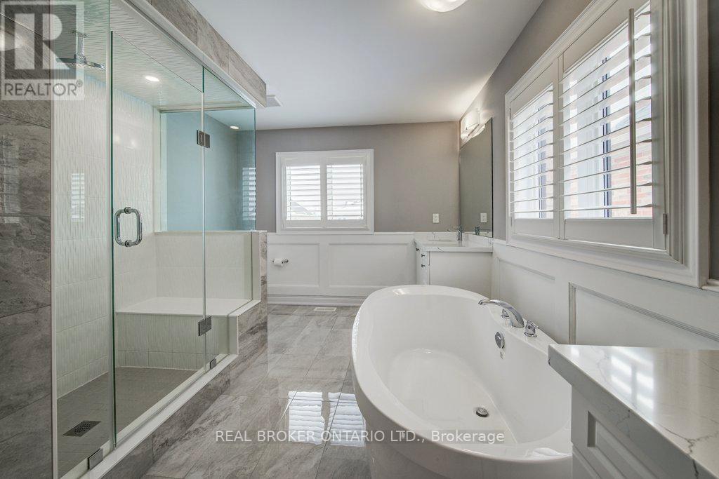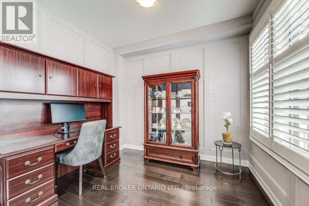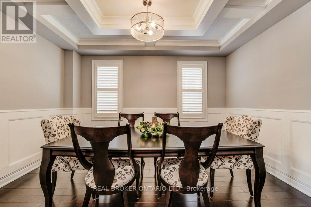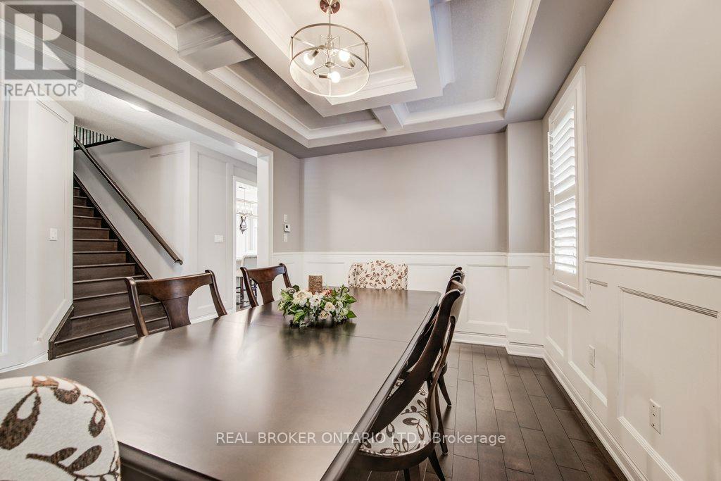 Built by Empire Homes less than five years ago, this exceptional luxury residence showcases refined design, a thoughtful layout, and premium upgrades throughout. Completely carpet-free, the home features a sophisticated blend of porcelain tile and rich hardwood across the main floor, with premium LVP on the second level. The main living area is beautifully open, offering a seamless setting for everyday living and entertaining, anchored by a chef-inspired kitchen with quartz countertops, an upgraded 9-foot island, abundant cabinetry, and a spacious butler's pantry. The family room is both elegant and inviting, centred around a stunning electric fireplace with a granite surround, while the formal dining room makes a striking statement with its impressive coffered ceiling. Tasteful touches of wainscotting and picture frame moulding add depth, character, and timeless sophistication throughout. Designed for modern living, the home offers two dedicated office spaces and four generously sized bedrooms. The expansive primary suite is a true retreat, complete with a cozy sitting area, an oversized walk-in closet, and a spa-inspired ensuite featuring double sinks, standalone soaker tub, and a luxurious walk-in glass shower with rainfall head and body jets. A secondary bedroom enjoys its own private ensuite and walk-in closet, while the remaining two bedrooms are connected by a convenient Jack and Jill bathroom, making this home exceptionally well-suited for family living. California shutters are featured throughout, and the east-facing orientation fills the home with beautiful natural morning light. Situated on an impressive 136-ft deep lot, the stone-paved front and backyard offer striking curb appeal while significantly reducing the amount of grass to cut and maintain, creating a low-maintenance outdoor setting perfect for summer entertaining. Experience the perfect balance of luxury, comfort, and thoughtful design and begin your next chapter here!Private Remarks: (id:64974)