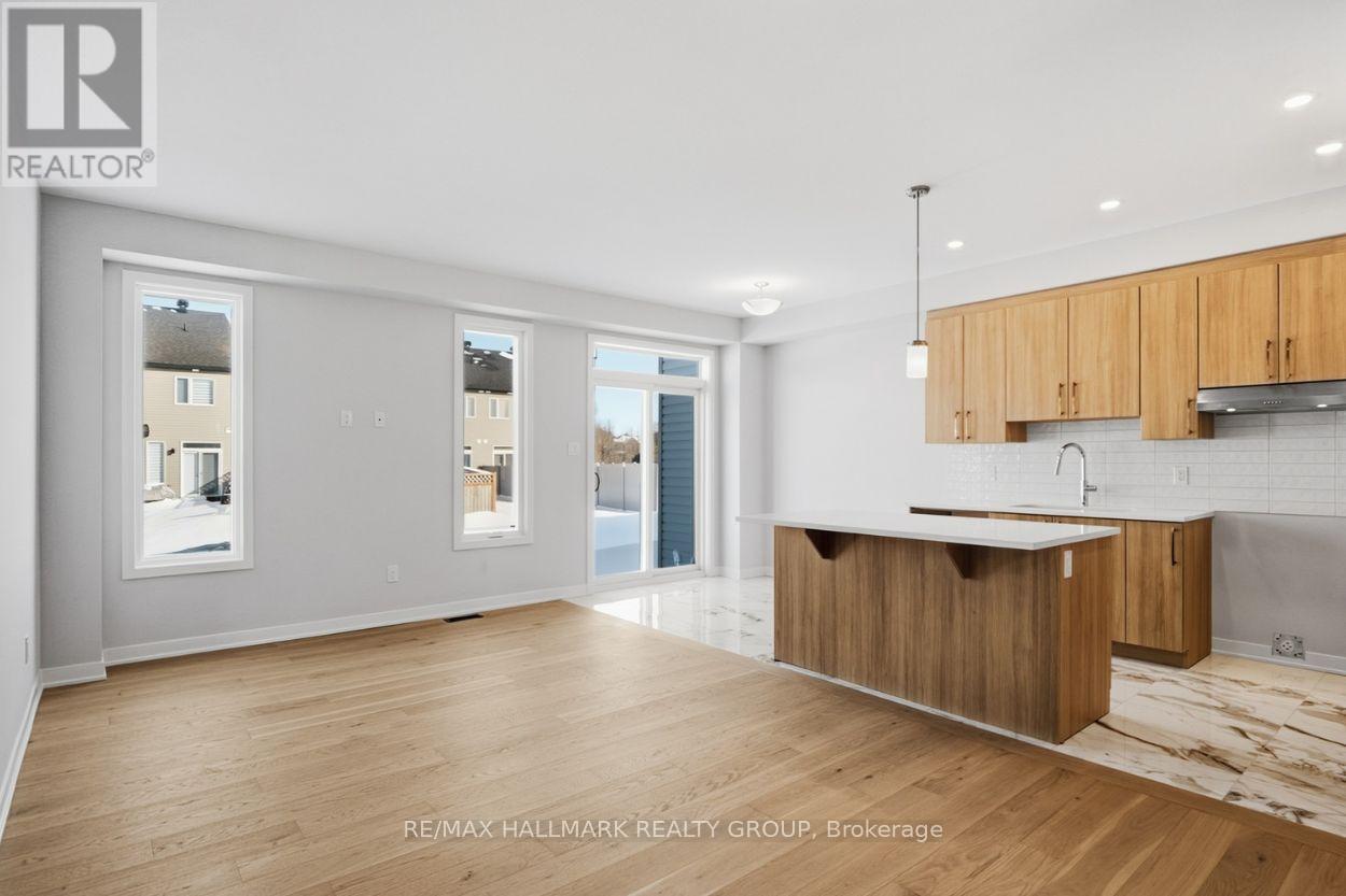 Wow - custom home finishes at an amazing price! First-time home buyers may qualify to save the HST (subject to qualification). Experience exceptional value and elevated design in this brand-new 3-bedroom, 3-bathroom townhome by Mattino Developments, a boutique Ottawa builder known for thoughtful layouts and refined, Italian-inspired finishes. Offering 1,816 sq. ft. of stylish living space, this home is located in the peaceful community of North Stittsville, providing the perfect balance of quiet surroundings while still being just a short drive to the city and approximately 10 minutes to the Canadian Tire Centre. The main level features a bright open-concept layout highlighted by 9-foot smooth ceilings that enhance the sense of space and natural light. Wide-plank contemporary engineered flooring flows throughout the principal living areas, complemented by oversized marble-look porcelain tile for a polished, upscale finish. The premium kitchen is designed to both function and impress, featuring extended 42-inch upper cabinetry, elegant backsplash detailing, quartz surfaces, pot lighting, and seamless sightlines to the living and dining areas, making it ideal for both everyday living and entertaining. Upstairs, three well-sized bedrooms provide comfort and flexibility, with laundry conveniently located on the second level. The primary suite offers a true retreat with a luxurious ensuite featuring a standalone Roman tub and an oversized separate shower. The finished lower level adds valuable additional living space perfect for a recreation room, home office, gym, or media area. Outside, the rare extra-deep 125-foot lot offers generous outdoor space and added privacy. This home also includes a full builder warranty for complete peace of mind, with quick closing available. A fantastic opportunity for buyers seeking a brand-new townhome with premium finishes, modern design, and exceptional value in Ottawa's west end. (id:64974)