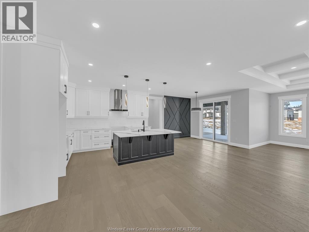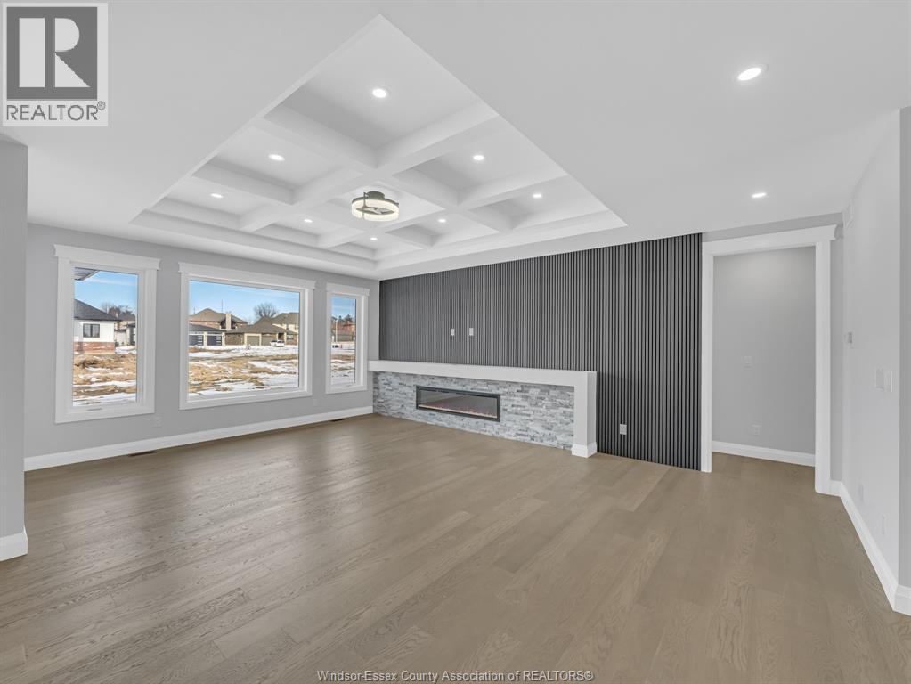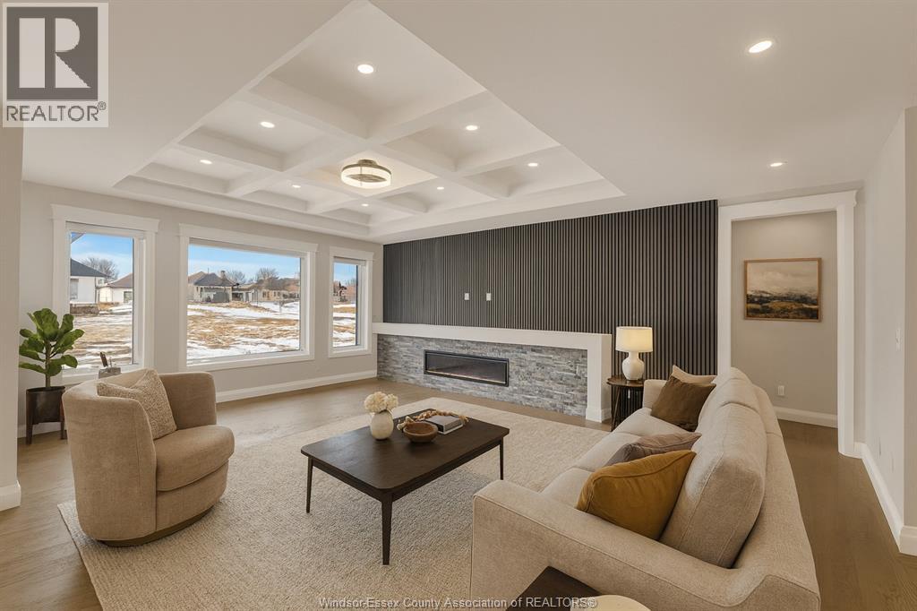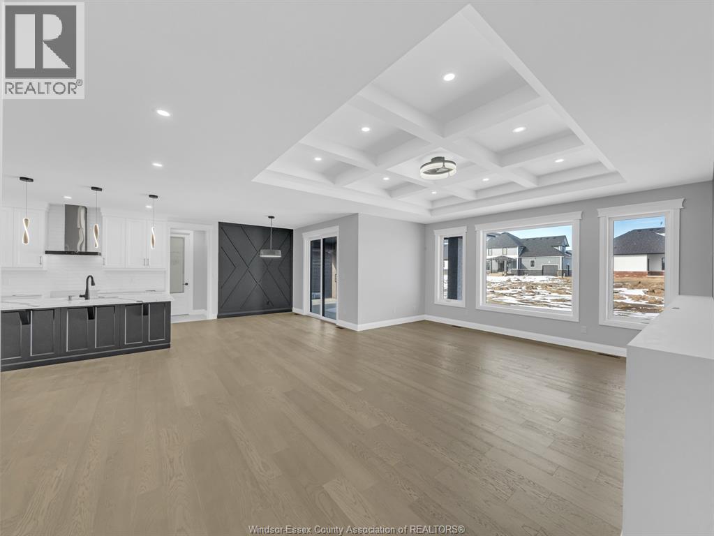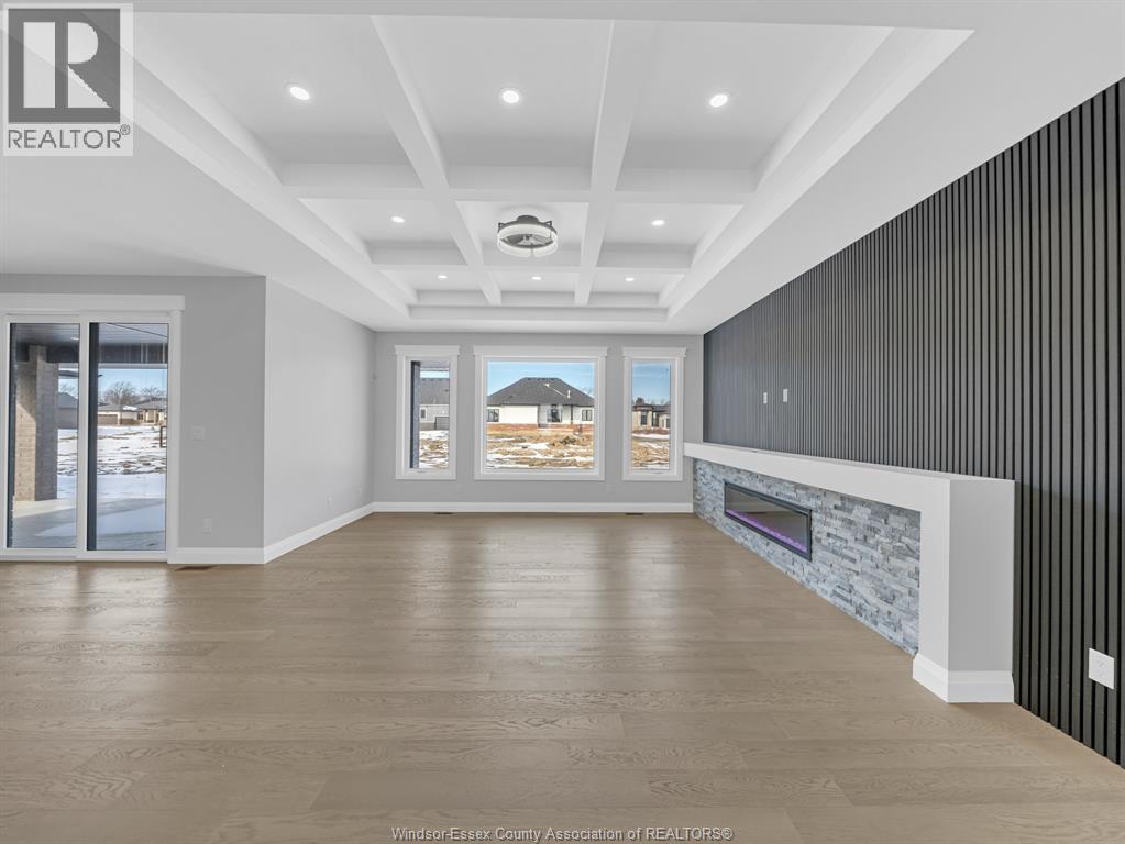NOW BUILDING IN RUTHVEN – KINGSVILLE | SLEIMAN HOMES Introducing this custom-built 2,153 sq. ft. ranch-style home located in the prestigious Queens Valley Development. This thoughtfully designed residence offers 3 bedrooms, 2.5 bathrooms, and an elegant open-concept layout finished with premium hardwood flooring throughout. The gourmet kitchen showcases quartz countertops, a large island, and high-end finishes, opening to a spacious family room with a fireplace and oversized patio doors leading to a raised, covered cement porch—perfect for outdoor entertaining. The primary suite features a tray ceiling, luxurious ensuite bath with double sinks, a soaker tub, and a glass shower. Additional highlights include a main-floor laundry room, a double-door finished garage, outdoor pot lights, and a full unfinished basement with rough-ins, insulation, and endless potential for customization. Constructed with brick, stone, and stucco exterior, this home is set on a generous lot with impressive curb appeal. Built with top-quality materials and workmanship, this home includes a 7-Year Tarion Warranty for added peace of mind. Exterior finishes are negotiable. Multiple lots and floor plans available. Some photos are virtually staged. Buyer to verify taxes, zoning, and all measurements. Photos from previous models &virtual Staging - MODEL HOME AT 1944 SANNITA (id:64974)