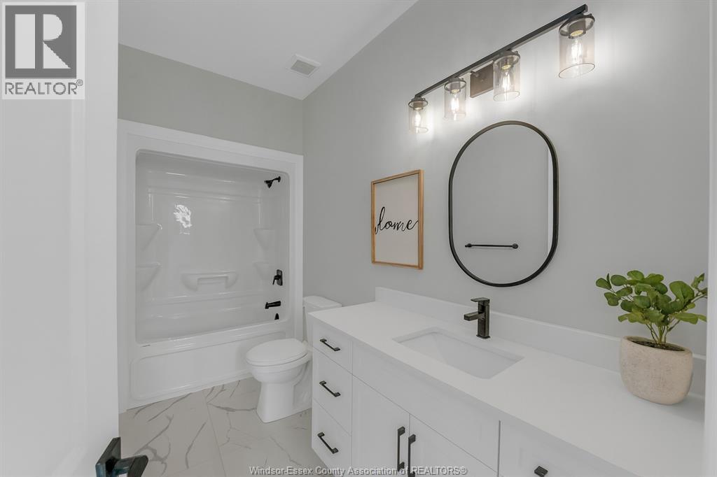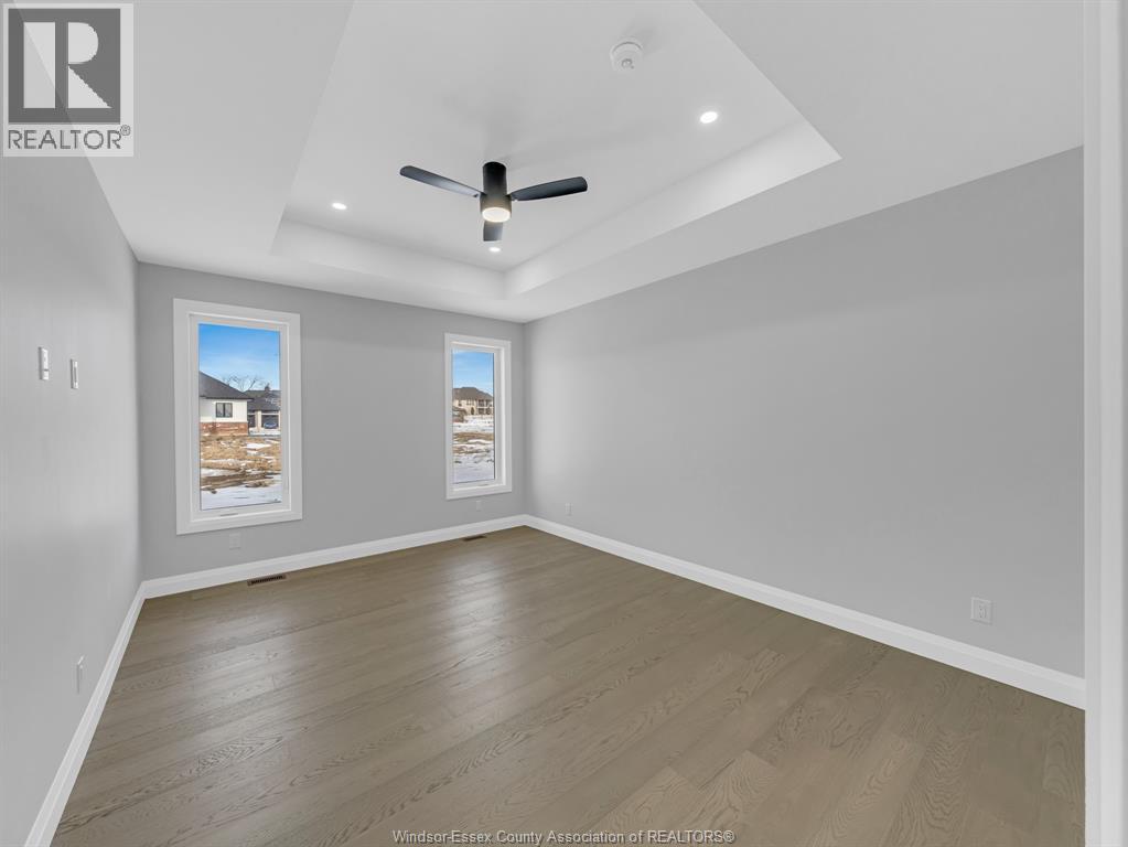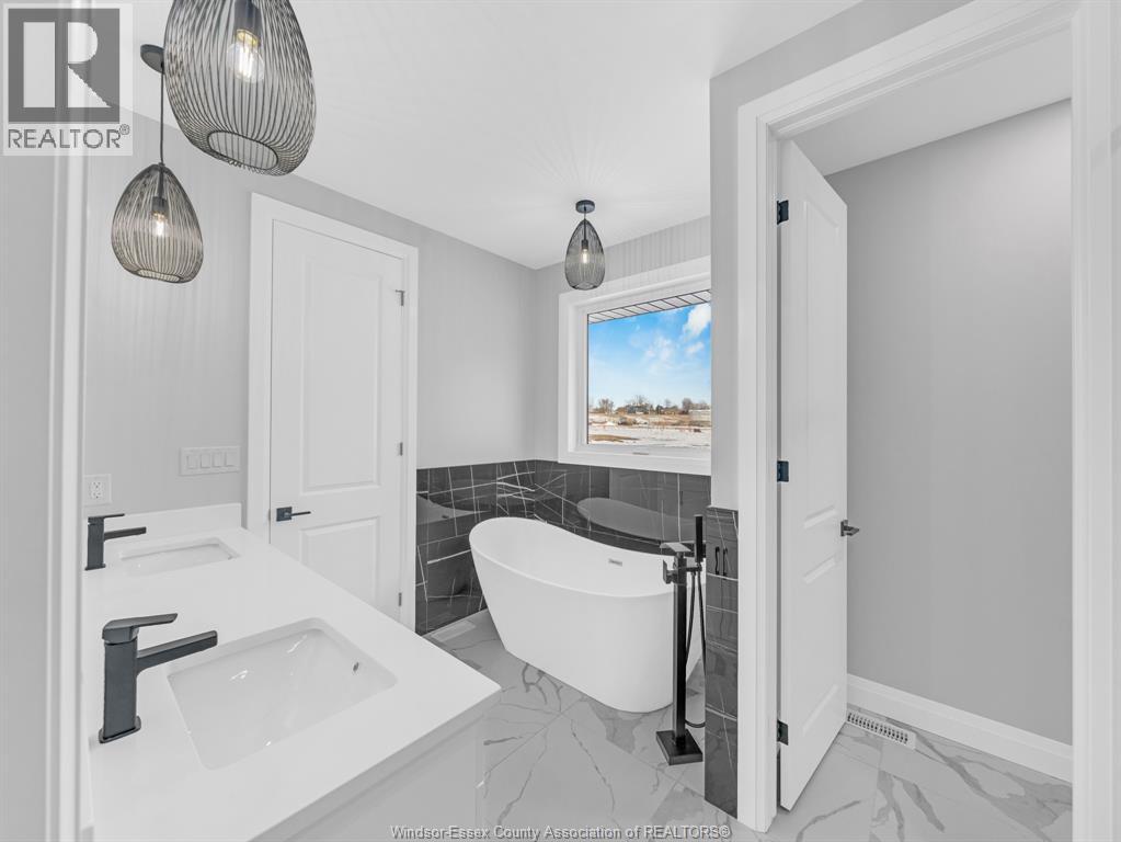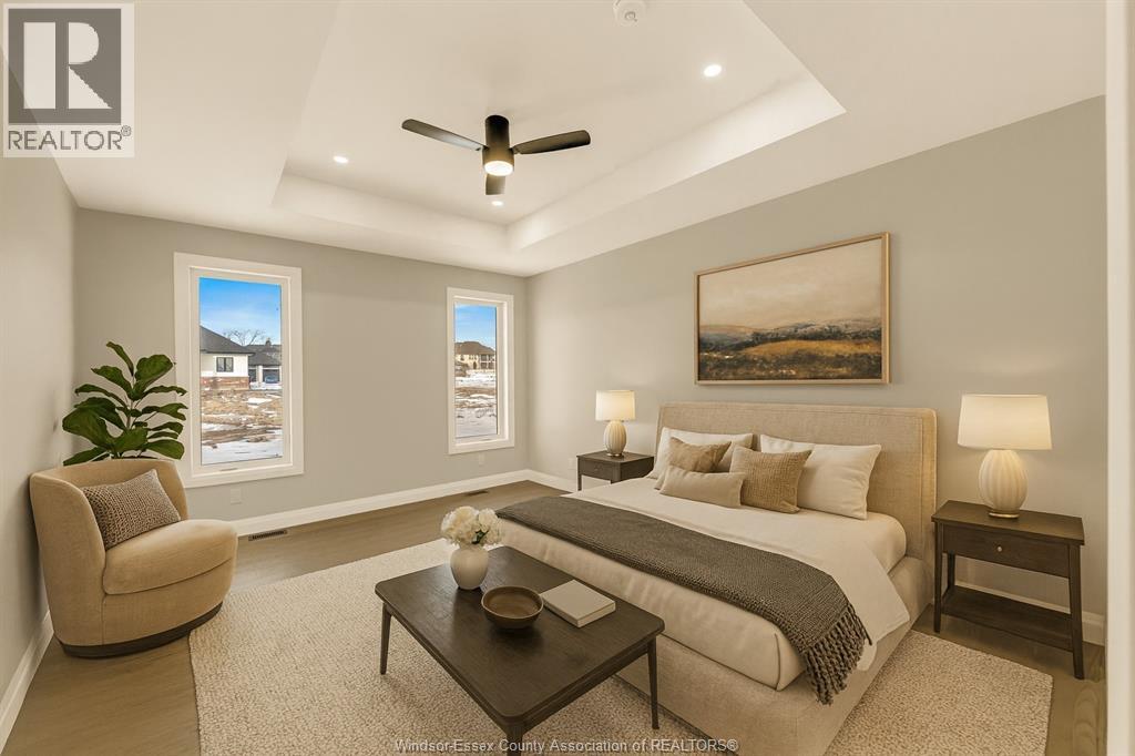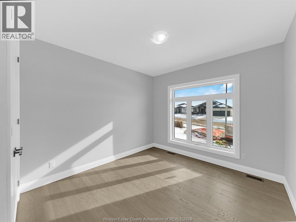NOW BUILDING IN RUTHVEN – KINGSVILLE | SLEIMAN HOMES Introducing this custom-built 2,153 sq. ft. ranch-style home located in the prestigious Queens Valley Development. This thoughtfully designed residence offers 3 bedrooms, 2.5 bathrooms, and an elegant open-concept layout finished with premium hardwood flooring throughout. The gourmet kitchen showcases quartz countertops, a large island, and high-end finishes, opening to a spacious family room with a fireplace and oversized patio doors leading to a raised, covered cement porch—perfect for outdoor entertaining. The primary suite features a tray ceiling, luxurious ensuite bath with double sinks, a soaker tub, and a glass shower. Additional highlights include a main-floor laundry room, a double-door finished garage, outdoor pot lights, and a full unfinished basement with rough-ins, insulation, and endless potential for customization. Constructed with brick, stone, and stucco exterior, this home is set on a generous lot with impressive curb appeal. Built with top-quality materials and workmanship, this home includes a 7-Year Tarion Warranty for added peace of mind. Exterior finishes are negotiable. Multiple lots and floor plans available. Some photos are virtually staged. Buyer to verify taxes, zoning, and all measurements. Photos from previous models &virtual Staging - MODEL HOME AT 1944 SANNITA (id:64974)