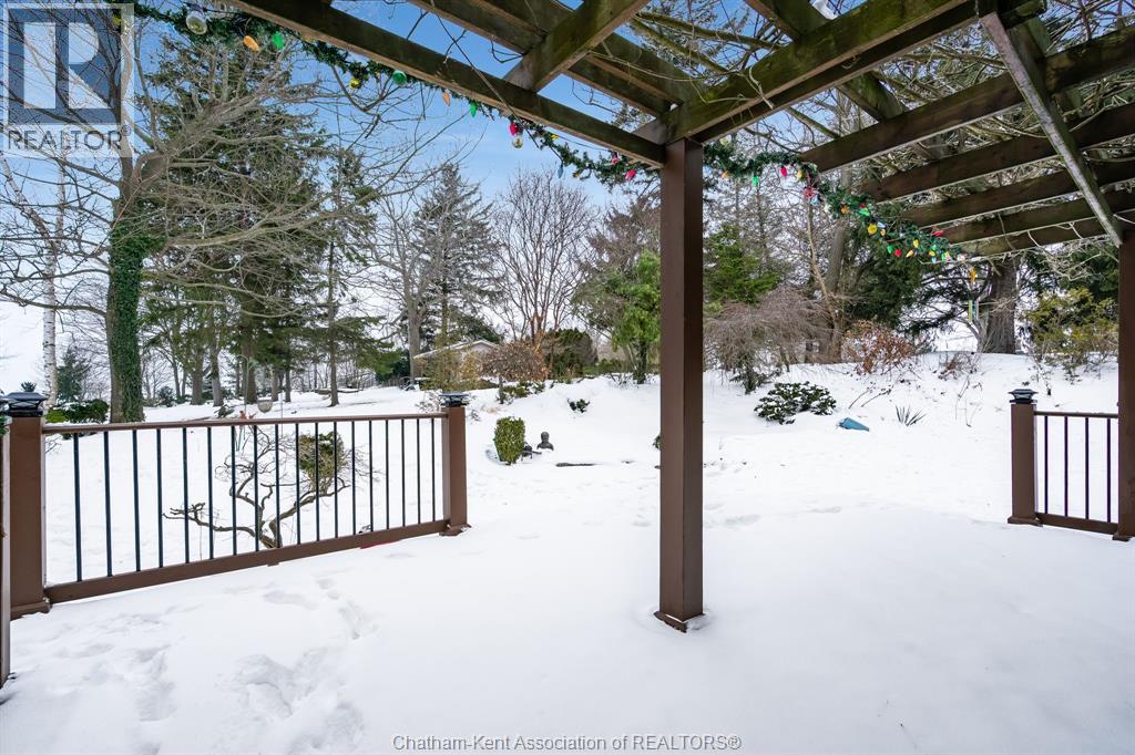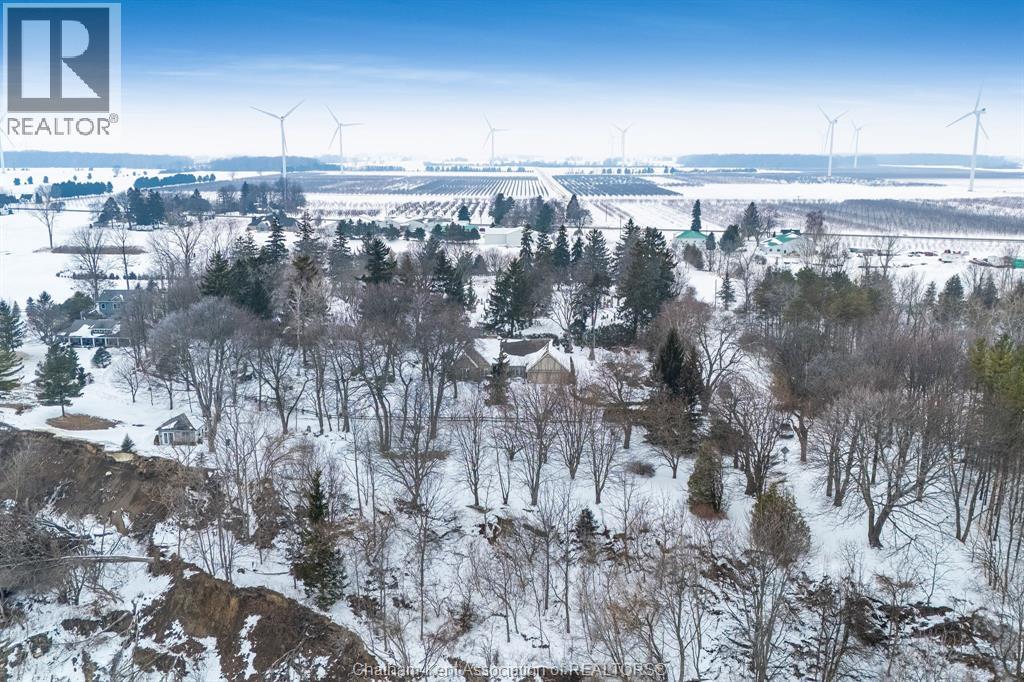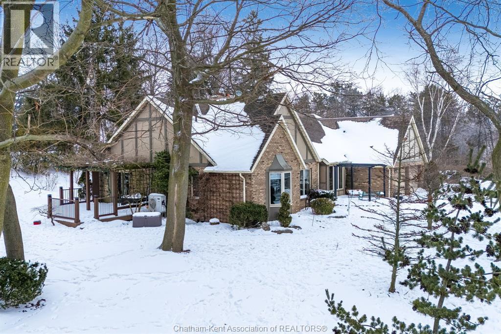 Rare Opportunity: Panoramic Views Without the Waterfront Taxes! Discover privacy & tranquility at the end of a quiet dead-end road on this stunning one-acre estate. This well maintained brick ranch offers sweeping, panoramic views of Lake Erie from multiple vantage points. Step into the heart of the home: a renovated kitchen in 2020 featuring sleek quartz countertops, flowing effortlessly into a great room anchored by a beautiful fireplace. Outdoor living is a dream with professionally landscaped gardens, a peaceful koi pond with a calming waterfall, and 3 distinct outdoor retreats: a screened-in back porch, a dining-side patio, and a private covered balcony off the primary suite overlooking the water features with Lake views. The property boasts 3+1 bedrooms and 3 full baths, including a lower-level in-law suite with a separate entrance through the oversized double garage—perfect for multi-generational living or guests. Main floor laundry. Additional features include a large shop/shed with hydro, 200 amp service, and massive storage capacity with room to finish even more living space. Enjoy the lakeside lifestyle with significantly lower taxes! Contact your favourite local REALTOR®, or the Listing REALTOR® for your private viewing. It's a beautiful day to get you moving! (id:64974)