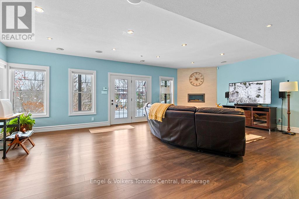 Exceptional custom-built multi-generational residence offering five bedrooms and five bathrooms, thoughtfully designed for comfort, privacy, and upscale living. This wide, oversized property features expansive premium windows that capture breathtaking ravine views, filling the home with natural light.Located directly across from the Alpine Ski Club hills, this home delivers a rare lifestyle combining luxury and year-round recreation. The main floor features a private office, ideal for remote work or a quiet study, along with a primary bedroom retreat offering a large, bright ensuite bathroom and a huge walk-in closet, perfectly suited for main-level living or multi-generational arrangements.A stunning wrap-around balcony spans the main floor, providing an exceptional space for entertaining or relaxing while overlooking the natural surroundings.The walkout basement serves as a private spa-inspired retreat, complete with a hot tub and a luxury indoor dry sauna. An oversized garage offers generous space for vehicles, sports equipment, and storage. Just minutes from scenic walking trails and the shores of Georgian Bay, this remarkable home blends tranquility, functionality, and refined living in a highly sought-after location (id:64974)