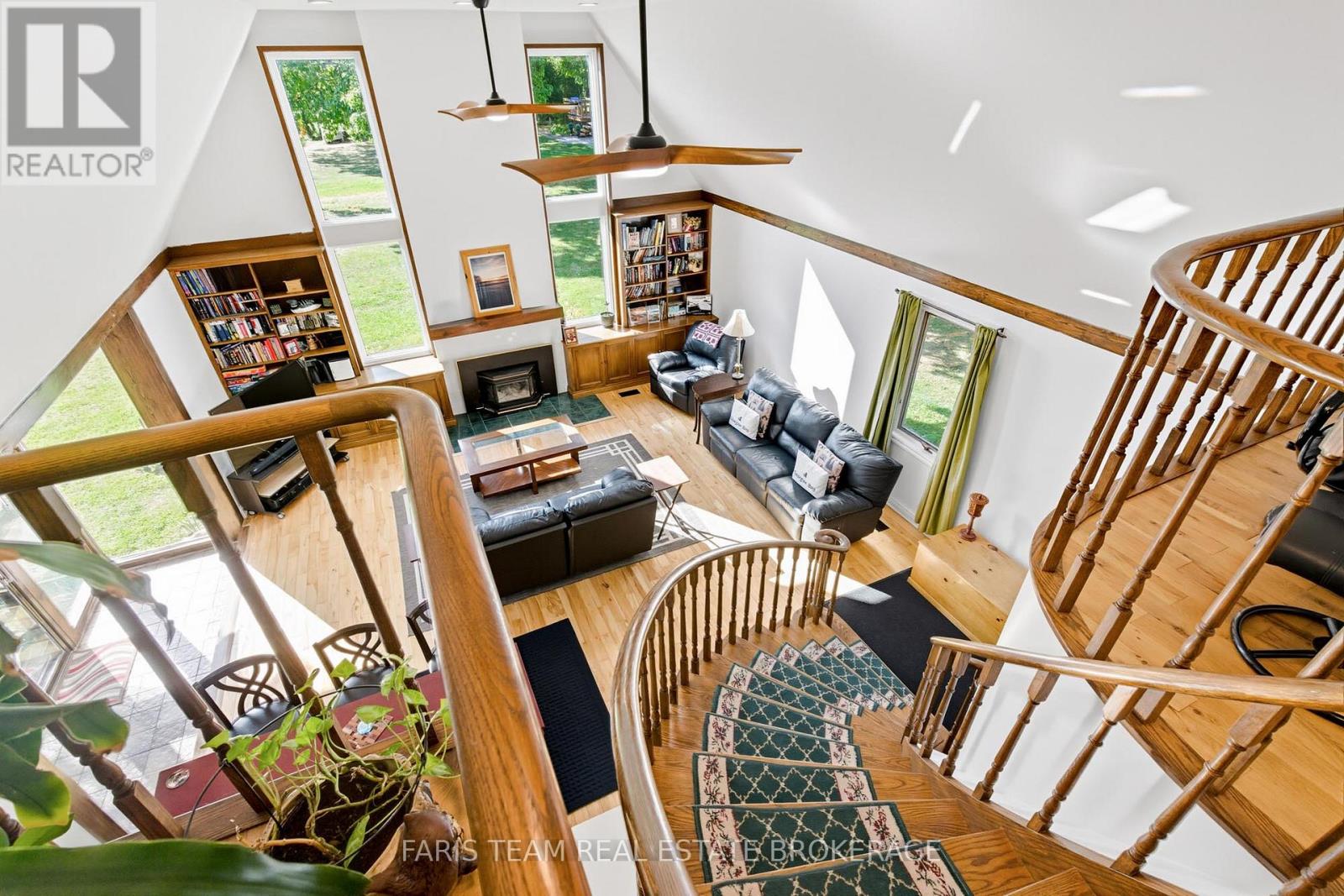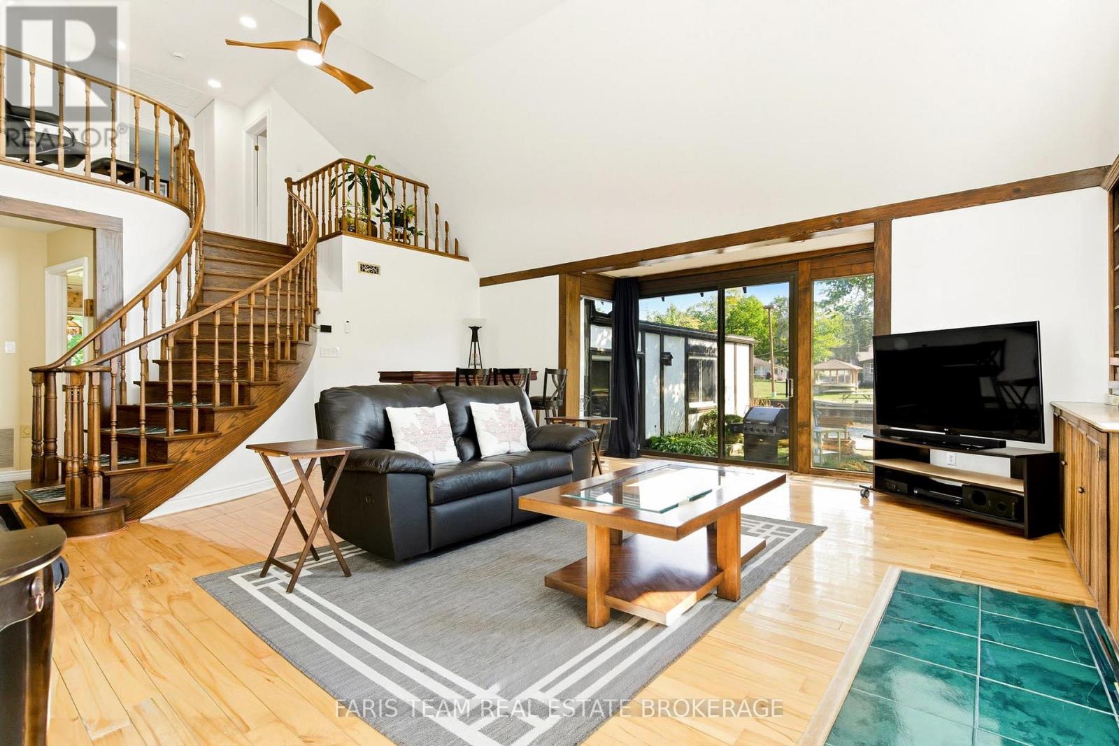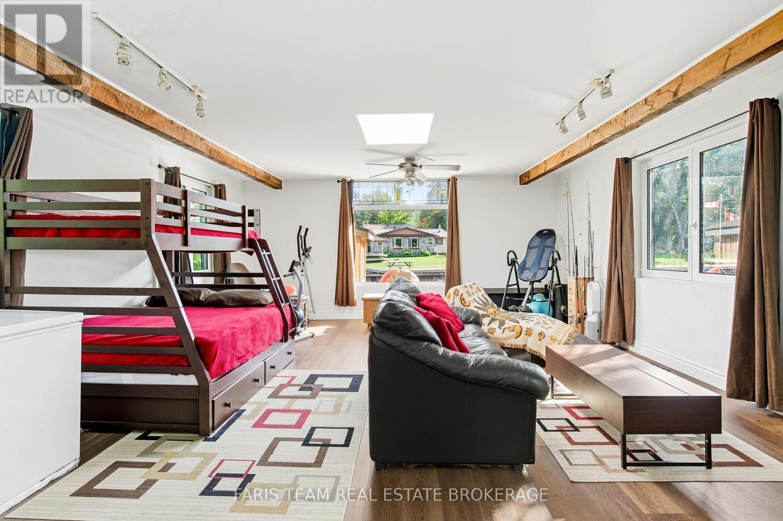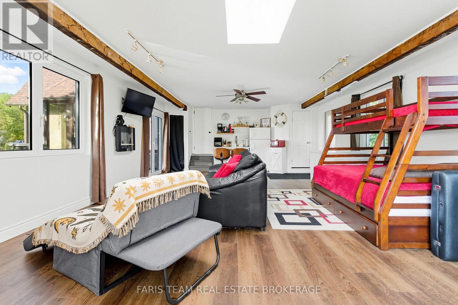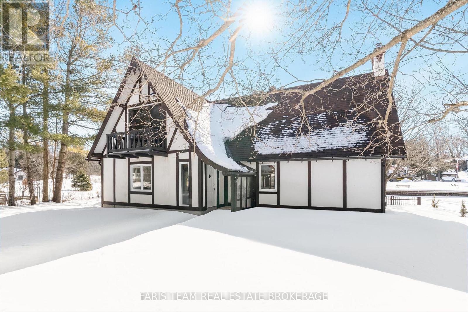 Top 5 Reasons You Will Love This Home: 1) With 75' of waterfront and direct access to Georgian Bay, this is true shoreline living, set along a protected channel, your boat stays sheltered from prevailing winds while still enjoying quick access to open water and the kind of sunsets people travel hours to experience, to top it all off, you also have access to two sandy beaches within walking distance 2) Almost half an acre in a rural setting gives you breathing room and long-term value, with no direct neighbours across the street, adding a level of privacy that new subdivisions simply cannot offer, yet you are still within close proximity to Highway 400 for an easy commute 3) The expansive great room serves as the heart of the home, highlighted by oversized windows, a vaulted ceiling, built-in bookshelves, and a fireplace that beautifully anchors the space as natural light pours in, while the primary bedroom offers serene water views so you can wake up to Georgian Bay every day 4) Fully renovated main level bedroom complete with a wet bar and centre island creates the perfect in-law setup or separate overflow living space when guests arrive, along with a main level laundry room for easy convenience 5) Peace of mind comes with the roof, furnace, and air conditioner already replaced, complemented by efficient European windows throughout the main level bedroom addition, as well as four updated windows flanking the fireplace in the great room, while a detached garage and powered auxiliary storage and workshop building provide plenty of space for tools, toys, and projects. 2,602 fin.sq.ft. (id:64974)