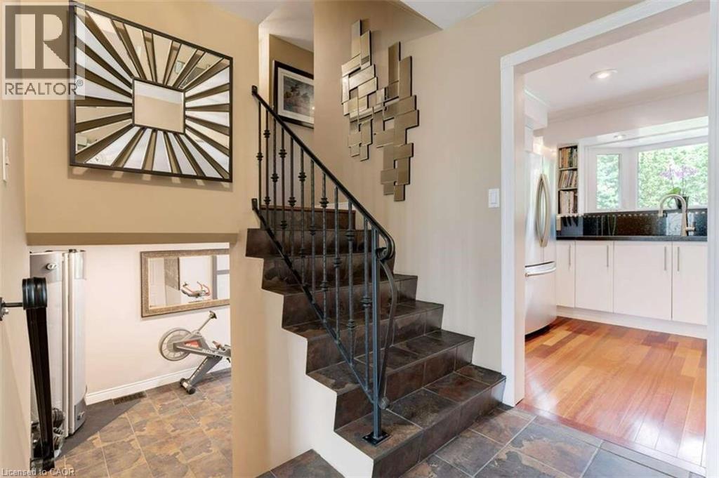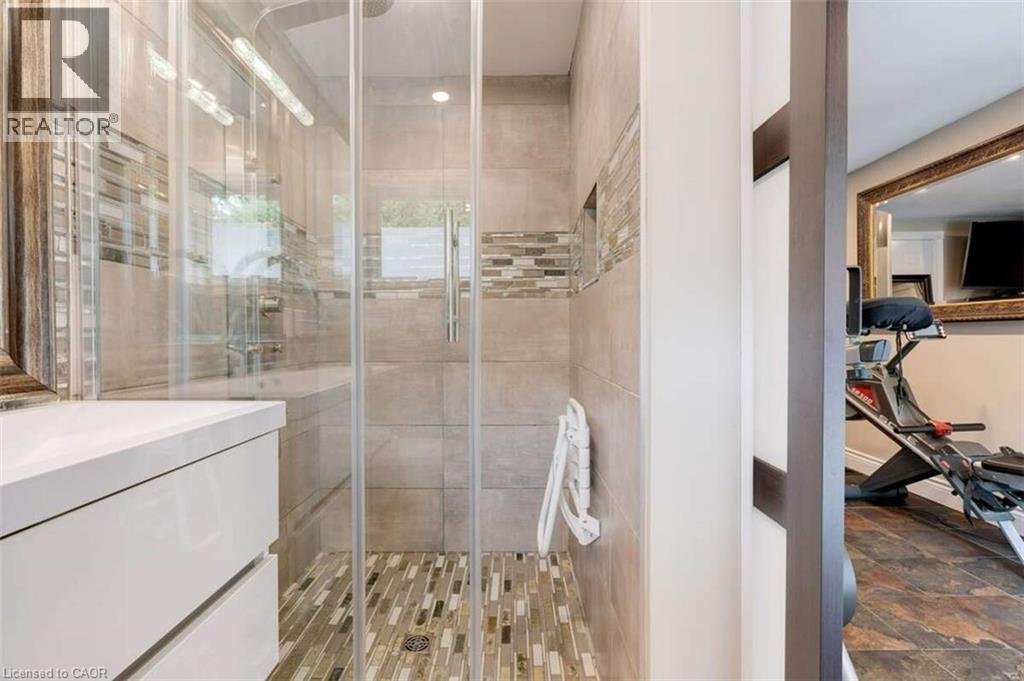 *** For more information, please click Brochure button. *** This detached home is located in South Burlington, in the prestigious community of Roseland. Steps to the waterfront, and minutes from downtown with several sought after schools nearby, as well as multiple parks, community centres, and trails. The home features a spacious family room with a cozy fireplace, and built-in bookshelves on Jatoba (Brazilian Cherry) hardwood floors. The ground floor walkout room is set up as a gym on porcelain tiles, but can be used as a living room or games room. Adjacent to this room there is a 3-piece washroom with heated floor and heated towel rack. Three bedrooms, a 4-piece washroom, and a washer/dryer closet complete the upstairs living space. The spa-like bathroom showcases a shower with body jets and a jacuzzi tub. The fully-finished basement hosts an in-law suite with a separate entrance. This studio apartment includes a kitchen with a standard sized fridge and stove and a 3-piece washroom with washer and dryer. The backyard features a hot tub, outdoor shower and multilevel deck and patio. The custom made shed provides ample storage. This private outdoor oasis is hardscaped throughout, with the right balance of greenery and privacy which can be enjoyed year round. A programmable irrigation system for easy maintenance keeps the individual gardens blooming. The extended driveway provides ample parking for up to 6 cars. Solar panels provide additional income. (id:64974)