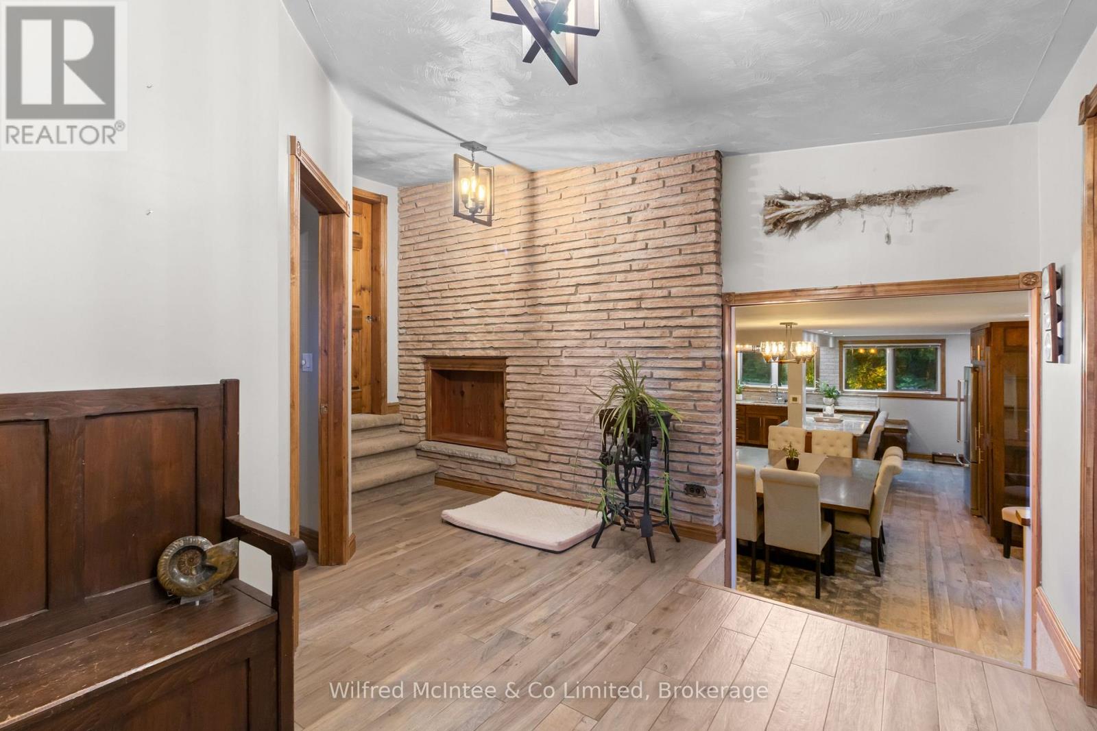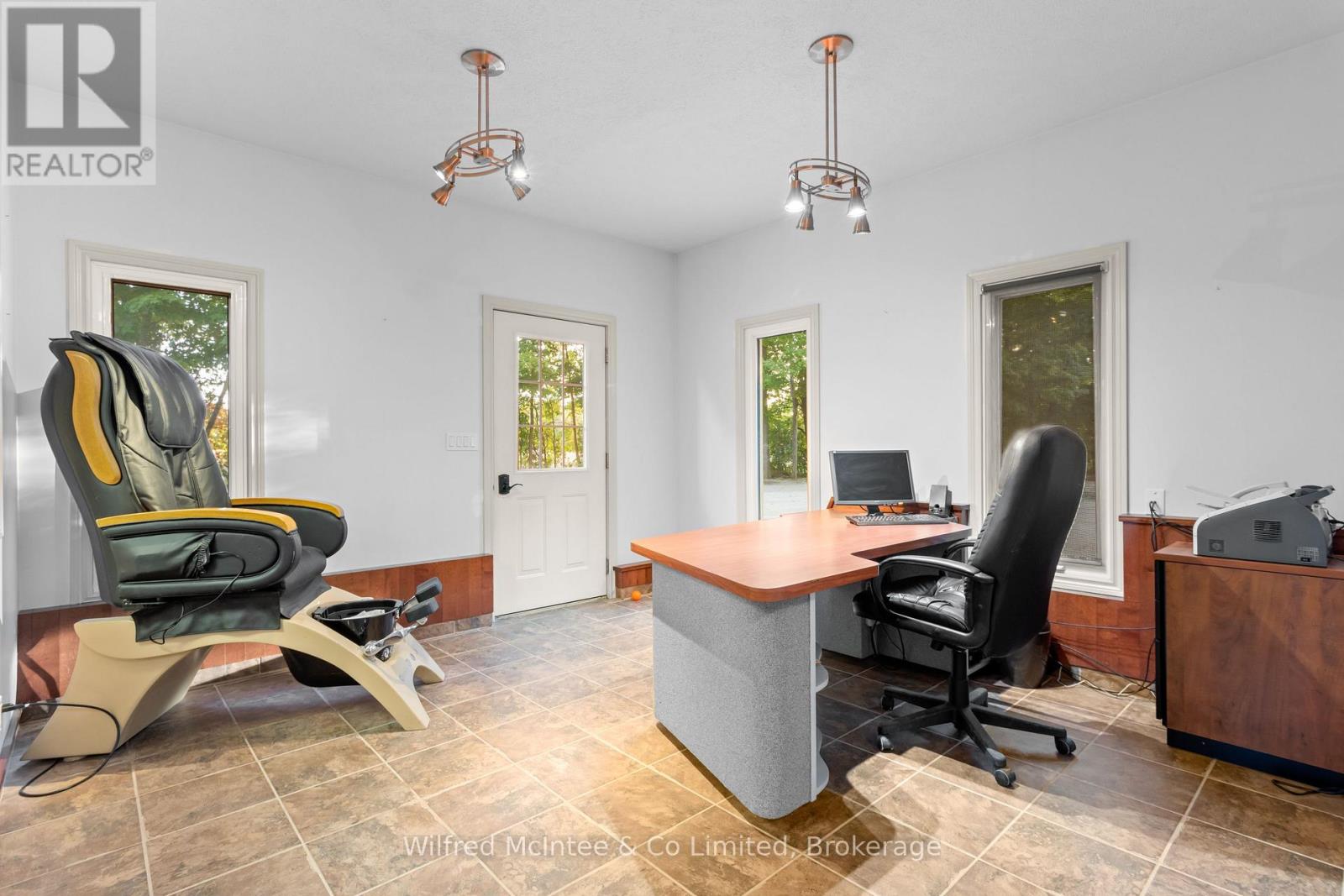 Set on 8.9acres, this first time on market, one-of-a-kind property invites you to live, work, and play without compromise. Featuring a 4 bed, 2 bath 2800sqft home, 4784sqft commercial grade shop with offices, 850sqft outbuilding, & 320sqft cabin with bathroom overlooking the pond. With parking for over 20, this property is designed for convenience, gatherings, and the flexibility to expand your business. Step inside the imaculate mid century modern home and discover a space that balances warmth & function. Characterized by clean lines, open-concept layout, and a deep connection to nature through expansive windows and the integration of wood, stone, and brick accents. The foyer welcomes you, leading into a sun-filled, open-concept dining and kitchen area where custom cherry wood cabinetry, granite countertops, and built-in appliances combine elegance and practicality. Off the kitchen, a bright sunroom with heated floors and a wood stove frames stunning country views, the perfect spot for coffee at sunrise or a glass of wine at dusk. The living room, with its soaring 12ft ceilings and custom stone fireplace, leads to the primary suite, where 6 large windows overlook the landscaped yard. Upstairs, 3 bedrooms and a full bathroom with dual sinks offer plenty of space. The finished basement features a large rec room, custom cabinetry, laundry room, and a cold cellar. Just steps from the home is a 4,784sqft. heated shop; complete with in-floor heat, 3 overhead doors, 3 offices, parts room, 2pc bathroom, plus a 1 bed, 1 bath apartment. The property also includes a smaller heated outbuilding/garage, and beside the spring fed pond is a cabin. Surrounded by towering trees, and complete privacy, this is made for bonfires, paddle boating, and summer barbecues. At night, relax by the woodstove as you watch the glow of a private waterfall. This property isn't just a home, it's a lifestyle. A private country sanctuary where your business, family, and leisure can thrive together. (id:64974)