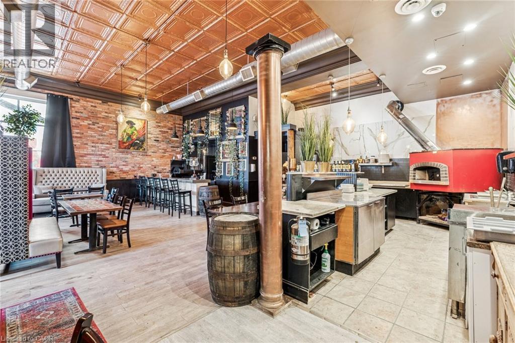 An exceptional leasing opportunity in the heart of downtown St. Catharines, offering unmatched character, visibility, and flexibility in a well-maintained historic two-storey commercial building. Originally constructed as a turn-of-the-century bank, the property features a striking open-concept main floor with high ceilings, excellent natural light, gas fireplace, bar and island area, ample cabinetry, appliances included, a two-piece washroom, and distinctive architectural details including the original bank vault. The space has previously operated as both a café and pizza restaurant and is well suited for food and beverage use, including the potential to open a restaurant or pizzeria, with a wood-burning oven in place and existing furniture such as tables and chairs. The second floor provides additional flexible usable space ideal for offices, meeting rooms, creative or event-style use and includes two two-piece washrooms, a separate shower room with sink, a kitchenette, and multiple storage areas. A full basement offers additional storage and utility space, one parking space is included at the rear, and the property is ideally located just steps from the Meridian Centre, First Ontario Performing Arts Centre, and the downtown core's shops, restaurants, and amenities. This property is also available for sale. (id:64974)