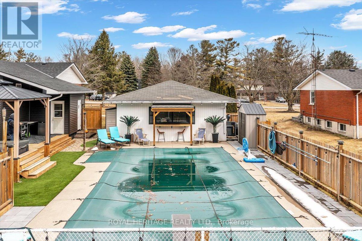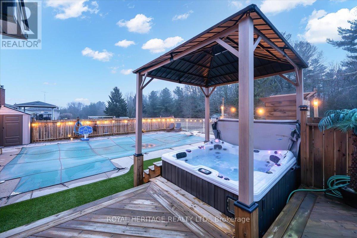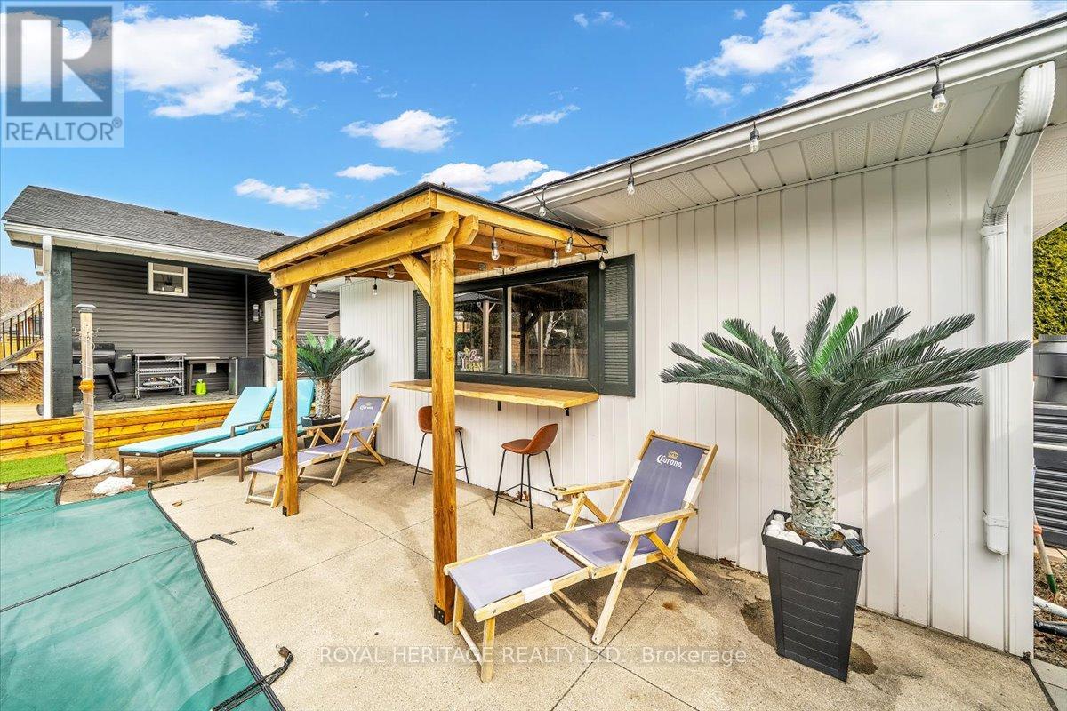 Set on a private 2.42-acre lot in Grafton, this extensively upgraded detached home offers a refined blend of modern comfort and country charm, with over $300,000 invested in recent improvements. Featuring 3+1 bedrooms, 3 bathrooms, and over 1,800 sq ft, this turnkey property is ideal for families, first-time buyers, or investors seeking space, flexibility, and long-term value.The main floor was fully renovated in 2025, showcasing updated electrical, upgraded lighting, and a thoughtfully designed open-concept layout that blends everyday functionality with elevated style. A newly added side entrance (2026 permit) enhances flexibility for in-law or income potential. The finished basement (2026) adds valuable living space complete with a custom bar-perfect for entertaining or relaxing.Major system upgrades provide true peace of mind, including new windows (2025), roof (2026), A/C condenser (2025), furnace blower motor (2025), and extensive septic improvements with new risers, lids, and eject pump (2025). The septic system has been recently pumped and inspected, confirming excellent condition.Step outside to your private backyard retreat featuring a pool with all new equipment (2025, under warranty), premium Unilock stone surround, gazebo, hot tub with updated pump, and dedicated pool and hot tub sheds. A new 6' x 12' deck and fenced dog run add both function and enjoyment. Additional updates include new siding with vapour barrier, front deck and stairs, and a rebuilt rear shed/roof.A standout feature is the added bathroom with in-suite laundry and a primary bedroom sliding door walkout, creating seamless indoor-outdoor living.Located in a welcoming neighbourhood where kids still play outside, this is a rare opportunity to own a fully upgraded home on acreage.Book your private showing today. (id:64974)