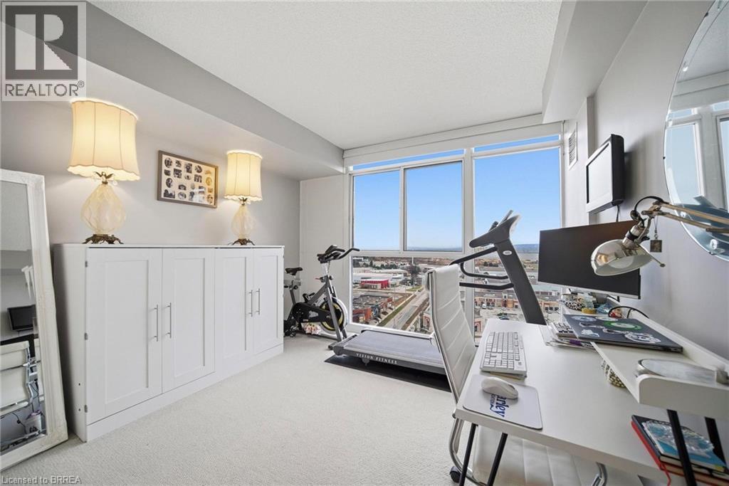 It's a pleasure to welcome you to unit 1507 within the stunning Ironstone condominiums at 1940 Ironstone Drive! This exceptional unit provides a rare opportunity in one of Burlington's most desirable neighborhoods. Spacious and functional, this unit boasts 1141 sq ft. and provides panoramic views of everything Uptown Burlington has to offer. From the moment you enter the door, this unit is complemented by the natural light throughout every room. The kitchen features chestnut colored cabinetry, timeless granite countertops, a multifunctional island with extra storage, tiled backsplash, double sink and stainless steel built in appliances. The versatile den is tucked into the living space conveniently to be used as you desire, and is currently a cozy reading nook. The primary bedroom is open and airy, with walk-in closet, ensuite 4 pc. bathroom with double sink vanity, and a second bonus sliding door that provides access to the extended full length balcony. A second bedroom continues to showcase the exceptional views with ceiling to floor windows and is cleverly used as a spare room and office through the use of a murphy bed! The additional 3 pc. bathroom provides this unit with a total of 2 full bathrooms and bedrooms, making it ideal for those who desire the ease of condo living without sacrificing space. Additional extras incl. upgraded finishes, 2 in 1 washer/dryer in laundry closet (one machine = additional storage space!), geothermal heating/cooling, built in closet shelving, and clear care of quality throughout. Another fabulous rarity that comes with this unit TWO included parking spots and premium sized storage locker. Building amenities are equally impressive: gym with weights, cardio and yoga room, large fully equipped party room, library, games room, media room, rooftop terrace with community BBQs, concierge service, lobby with fireplace and seating area, mail room, and covered visitor parking. Minutes from shops, restaurants, amenities, go station and QEW. (id:64974)