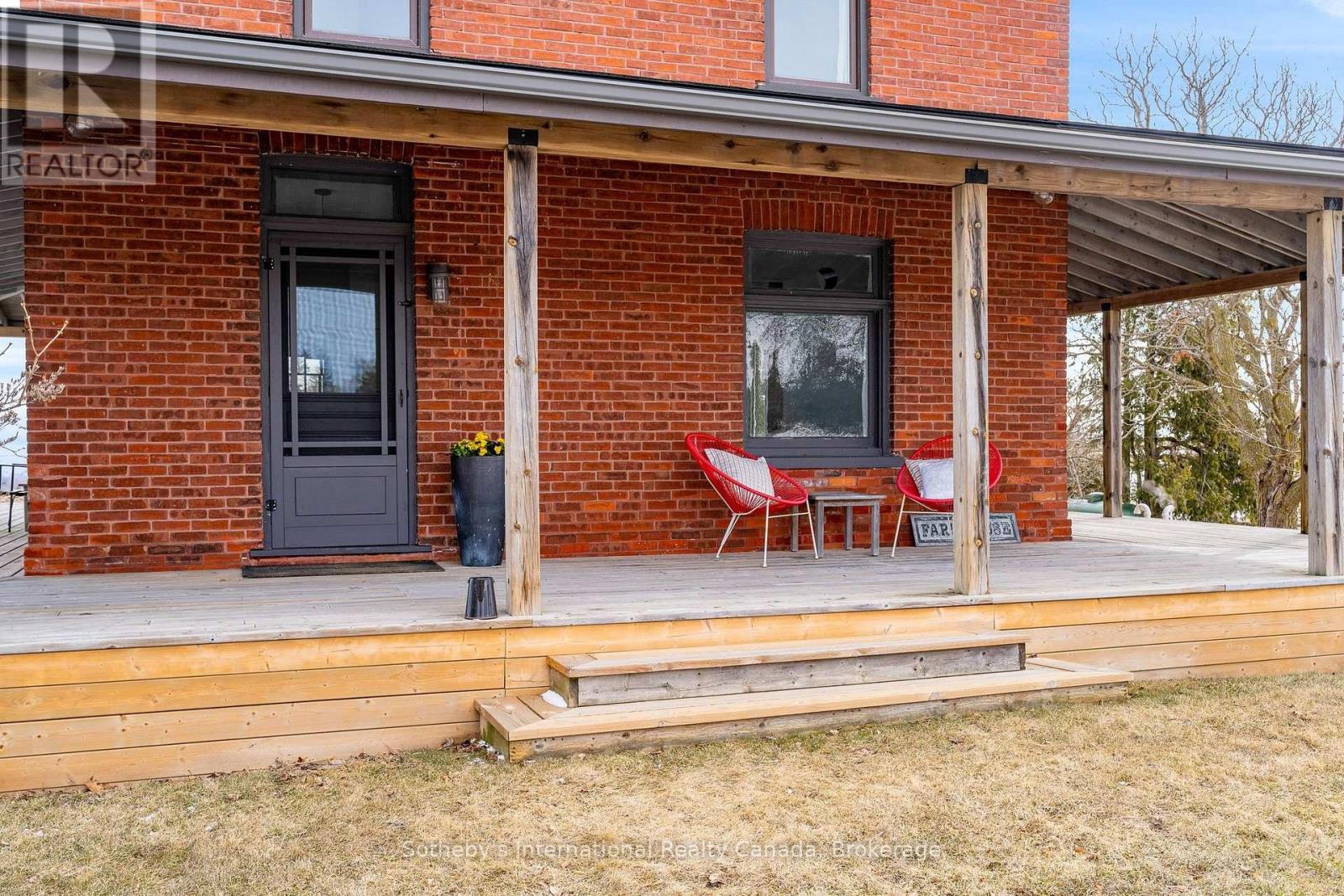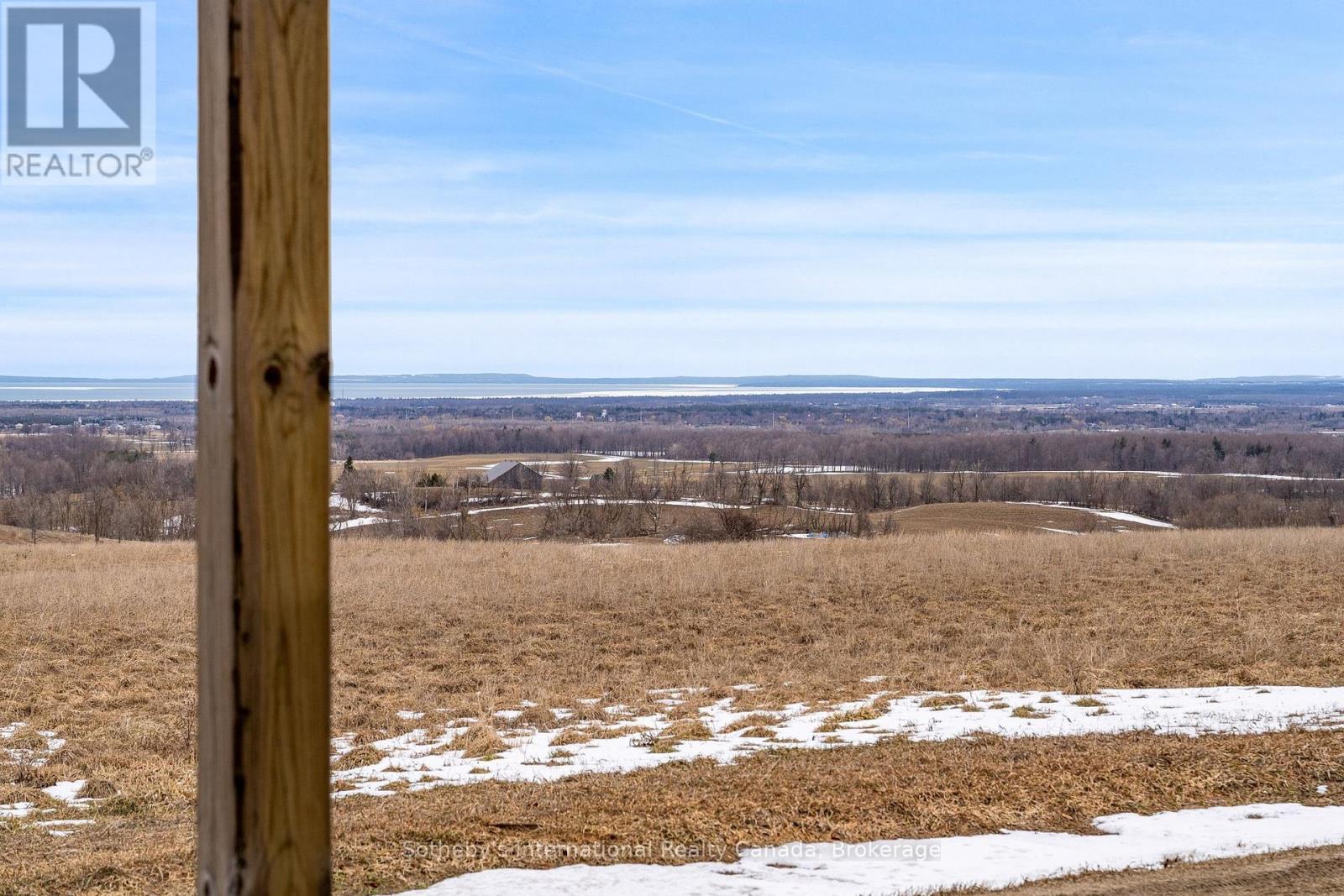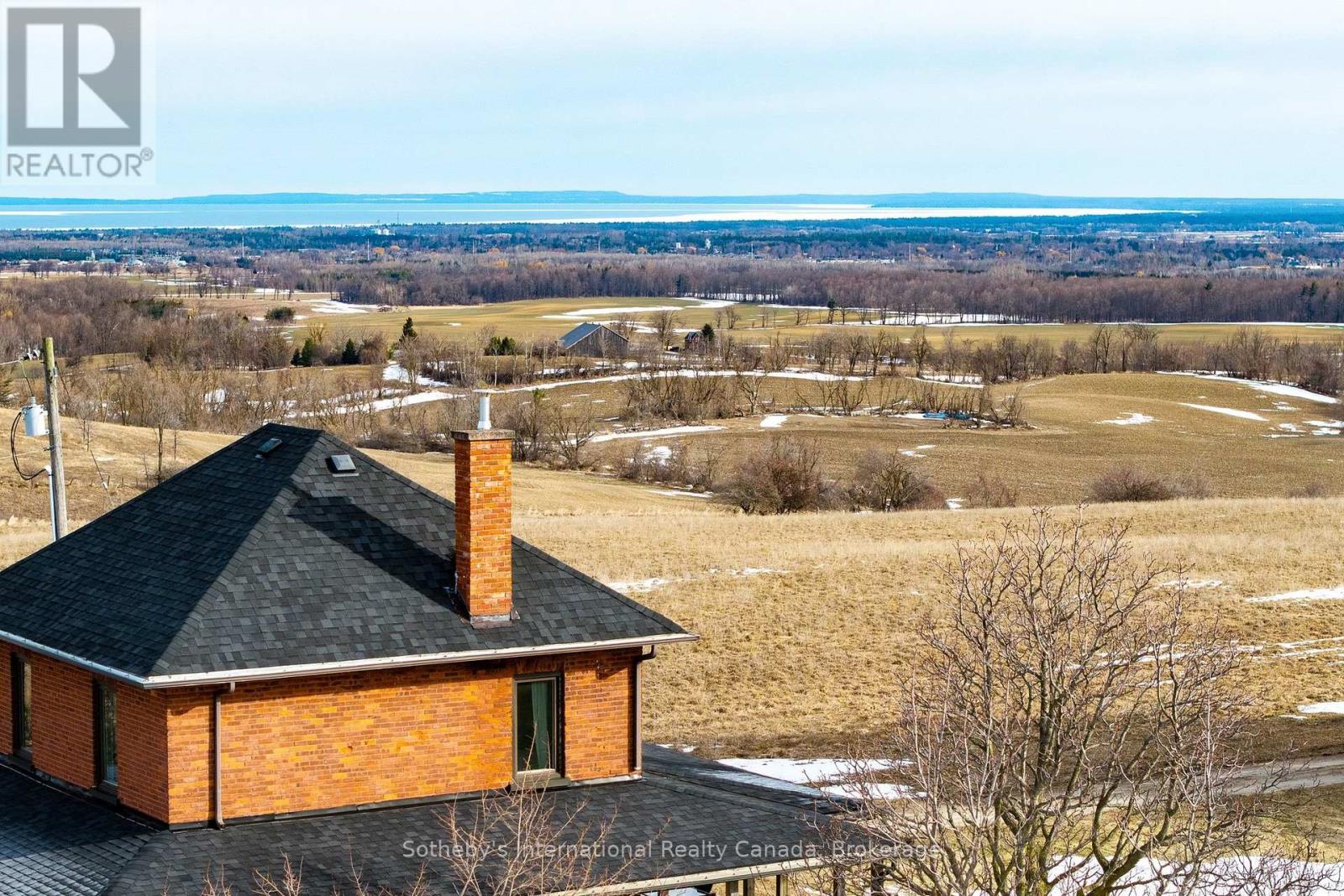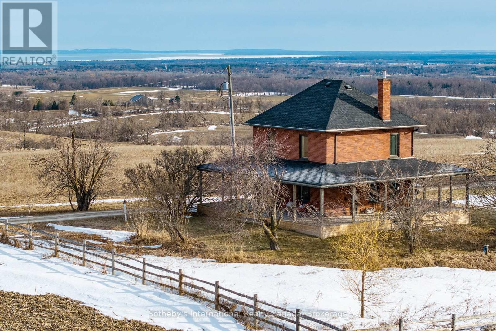 Perched on an elevated area along the scenic Fairgrounds Road this charming 130+ year-old country home sits on approximately 2.5 acres with remarkable views across the countryside and direct to the bay. Enjoy stunning sunrise and sunset vistas from the property's open setting. Set well back from the road and surrounded by beautiful farms, farmland and estate homes, the location is peaceful and private. The red brick farm home features an open concept layout on the ground floor with lovely pine floors, exposed brick accents, a bright, renovated kitchen with walkout to a wrap around verandah. The home has three bedrooms, and one modern bathroom. The property has a small apple orchard and fenced vegetable garden. The home is only a short drive away from Creemore and Collingwood, ski hills (Blue Mountain and Devil's Glen), golf (Mad River) and Wasaga/Georgian Bay beaches. A rare opportunity to own a manageable country acreage in one of Clearview's most desirable rural locations. (id:64974)