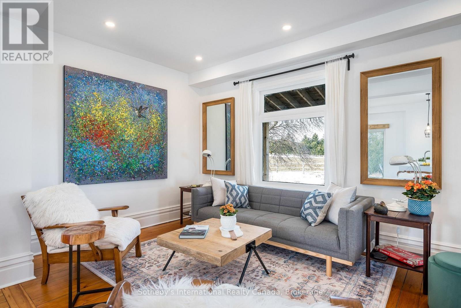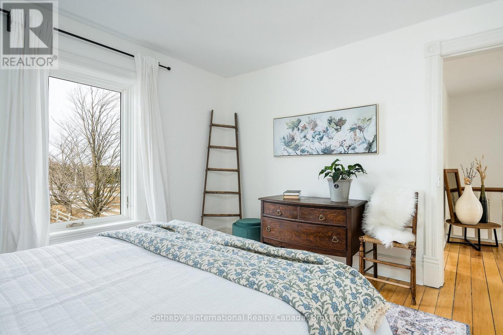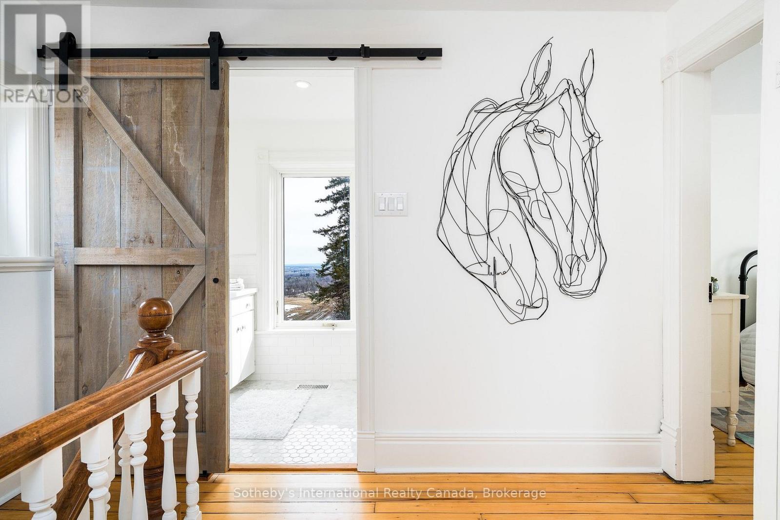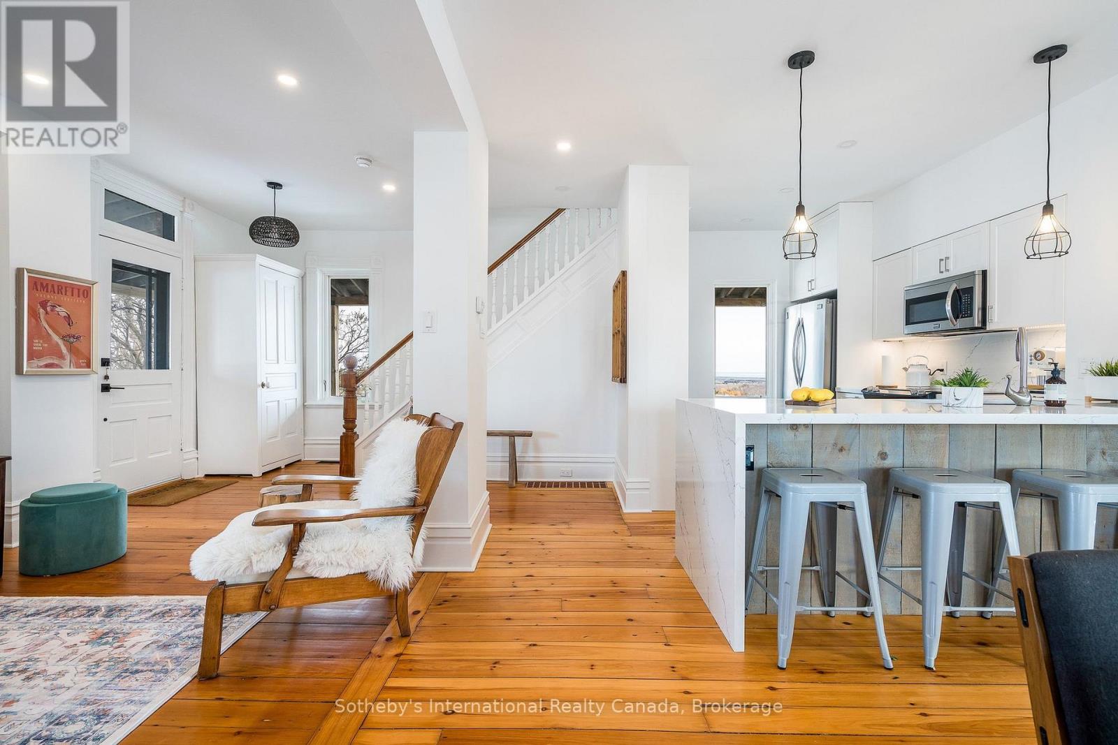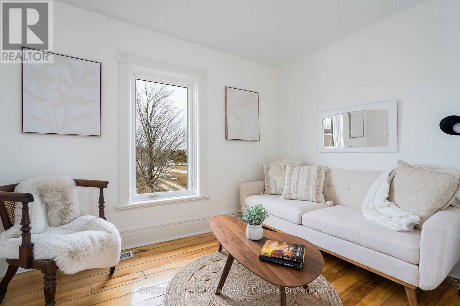 Perched on an elevated area along the scenic Fairgrounds Road this charming 130+ year-old country home sits on approximately 2.5 acres with remarkable views across the countryside and direct to the bay. Enjoy stunning sunrise and sunset vistas from the property's open setting. Set well back from the road and surrounded by beautiful farms, farmland and estate homes, the location is peaceful and private. The red brick farm home features an open concept layout on the ground floor with lovely pine floors, exposed brick accents, a bright, renovated kitchen with walkout to a wrap around verandah. The home has three bedrooms, and one modern bathroom. The property has a small apple orchard and fenced vegetable garden. The home is only a short drive away from Creemore and Collingwood, ski hills (Blue Mountain and Devil's Glen), golf (Mad River) and Wasaga/Georgian Bay beaches. A rare opportunity to own a manageable country acreage in one of Clearview's most desirable rural locations. (id:64974)