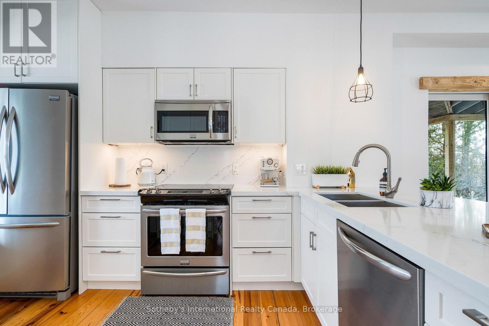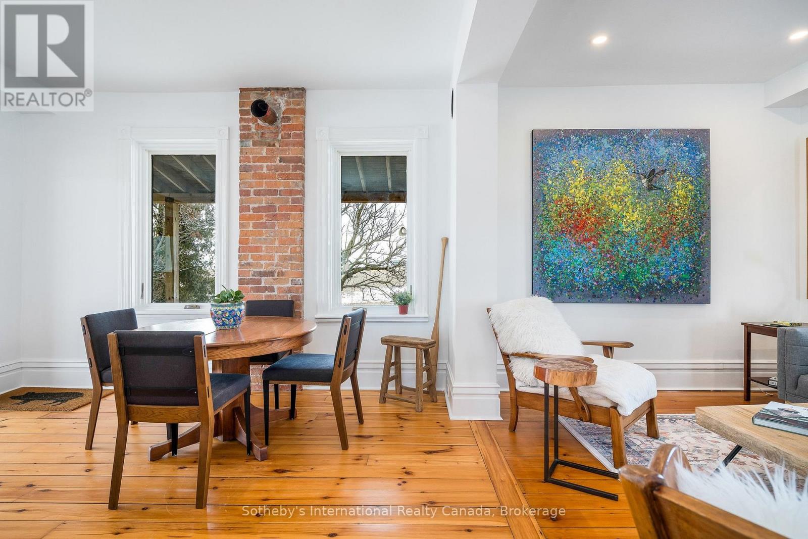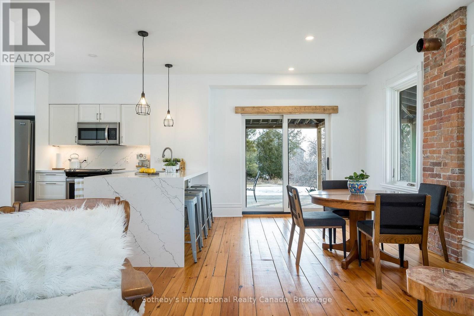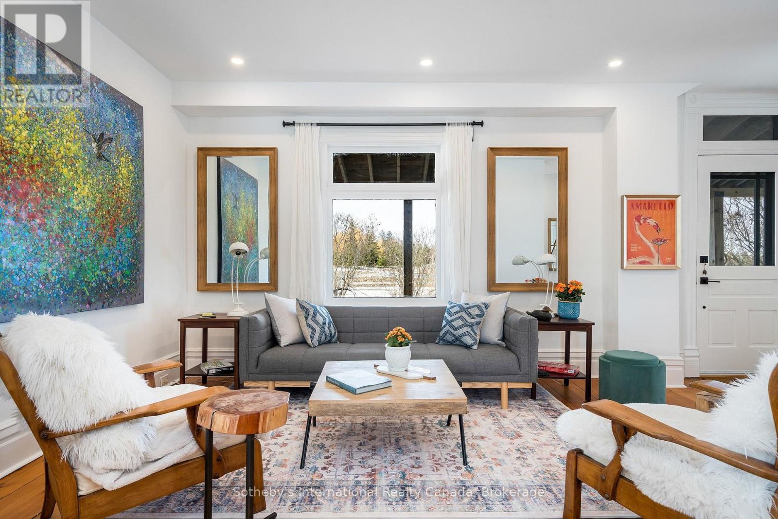 Perched on an elevated area along the scenic Fairgrounds Road this charming 130+ year-old country home sits on approximately 2.5 acres with remarkable views across the countryside and direct to the bay. Enjoy stunning sunrise and sunset vistas from the property's open setting. Set well back from the road and surrounded by beautiful farms, farmland and estate homes, the location is peaceful and private. The red brick farm home features an open concept layout on the ground floor with lovely pine floors, exposed brick accents, a bright, renovated kitchen with walkout to a wrap around verandah. The home has three bedrooms, and one modern bathroom. The property has a small apple orchard and fenced vegetable garden. The home is only a short drive away from Creemore and Collingwood, ski hills (Blue Mountain and Devil's Glen), golf (Mad River) and Wasaga/Georgian Bay beaches. A rare opportunity to own a manageable country acreage in one of Clearview's most desirable rural locations. (id:64974)