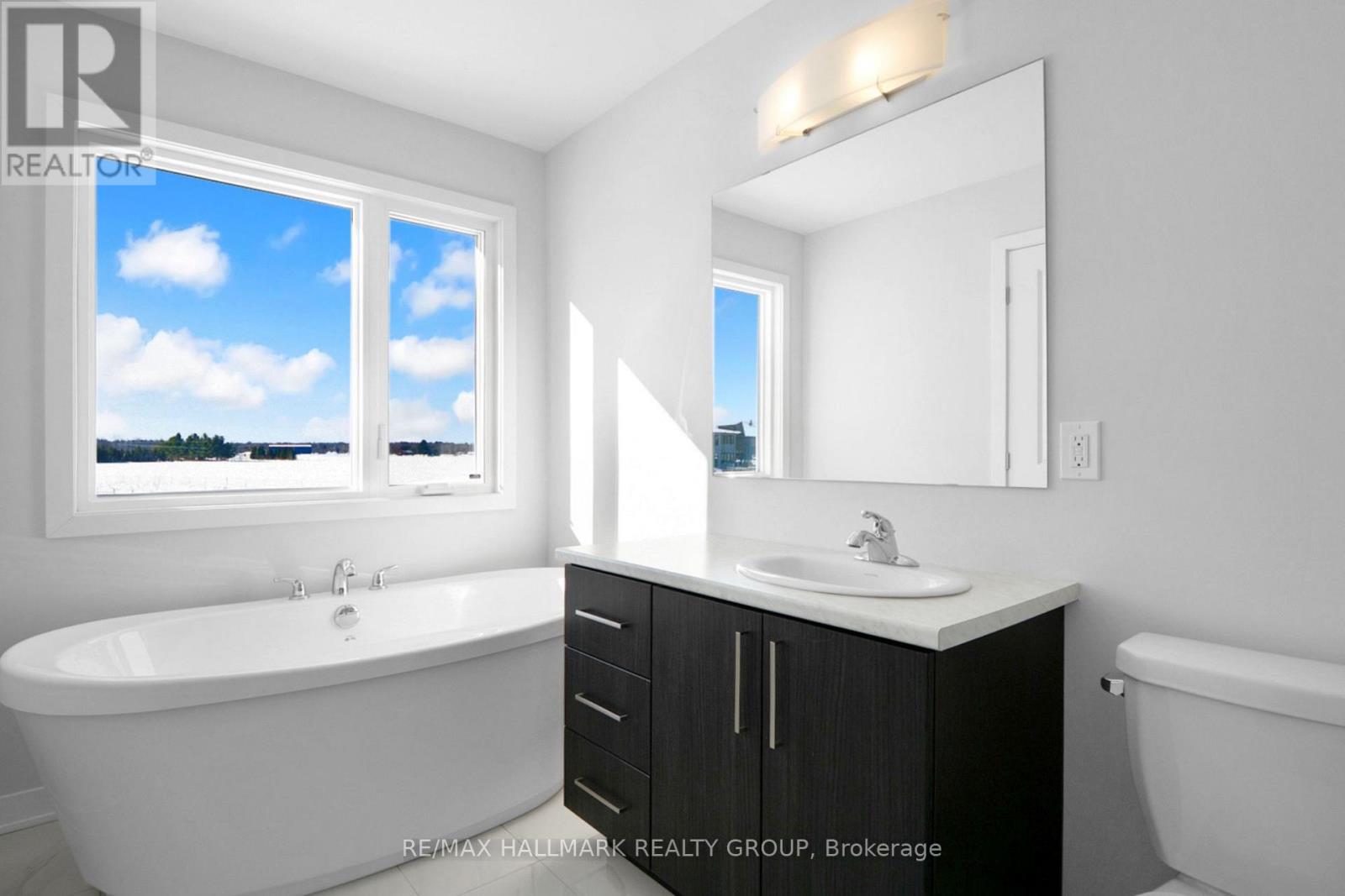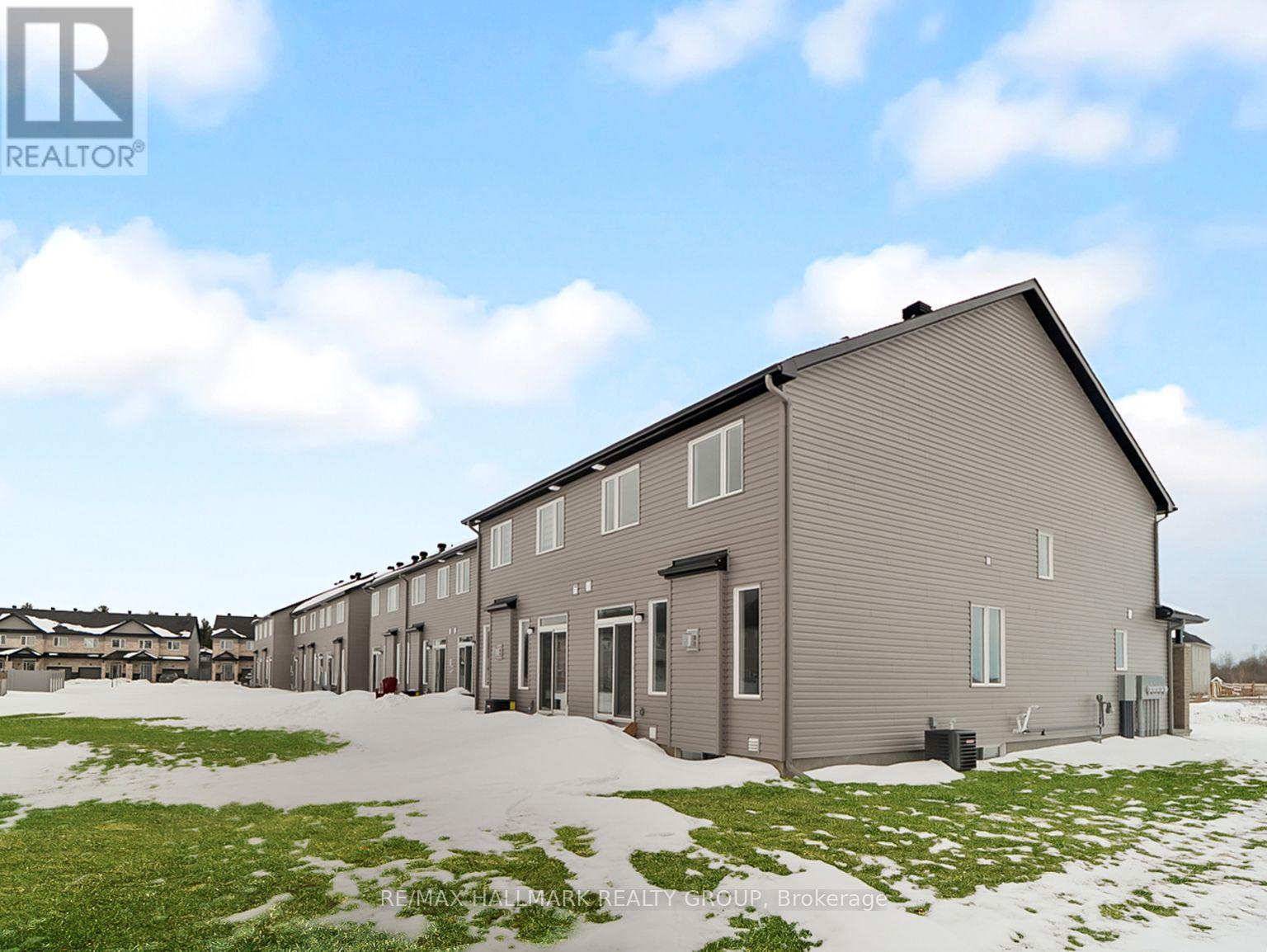 Experience exceptional value and elevated design in this spacious 3 bedroom 4 bathroom, 2,160 sq. ft. townhome by Mattino Developments, set on a rare wide corner lot in the peaceful country setting of Stittsville North. Inspired by timeless Italian craftsmanship, this home includes premium finishes that are often upgrades elsewhere, all included as standard. The main level features bright, open-concept living with impressive 9-foot smooth ceilings throughout, enhancing the home's airy, modern feel. Wide plank contemporary engineered flooring flows through the principal living spaces, complemented by oversized marble-look porcelain tile for a refined finish. The premium kitchen is thoughtfully designed for both function and entertaining, offering extended 42-inch upper cabinetry, elegant full-tile backsplash detailing, quartz countertops, pot lighting, and a seamless connection to the living and dining areas. Upstairs, the primary bedroom serves as a private retreat with a luxurious ensuite featuring a standalone Roman tub and a separate oversized shower with full surround tile. Additional bedrooms are generously sized and filled with natural light, benefiting from the added exposure of the corner lot.The finished basement adds valuable additional living space and includes a full bathroom, making it ideal for a recreation room, home office, gym, or guest area. Outside, the corner lot provides enhanced privacy and a more open feel compared to interior townhomes. This home offers peace of mind with a full builder's warranty and is well suited for buyers seeking extra space, elevated finishes, and modern design, all within easy reach of Ottawa's west end while enjoying a quieter, more relaxed setting. (id:64974)