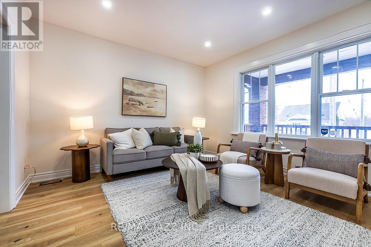 Welcome to one of the most affordable turnkey detached homes on the market - fully renovated and thoughtfully designed for modern living with built-in flexibility. This updated 1.5 storey home offers style, function, and versatility from the moment you walk in. Vinyl flooring runs throughout, creating a cohesive and low-maintenance finish. The open-concept main floor seamlessly connects the kitchen, living, and dining areas - ideal for entertaining or everyday family life. The modern kitchen features quartz countertops and contemporary finishes, with a convenient walk-out to the fully fenced backyard - perfect for kids, pets, or summer gatherings.The main level is also designed for practicality, offering a powder room and dedicated laundry - a rare and valuable feature for busy households. Upstairs, you'll find three well-sized bedrooms with huge closets and a beautifully updated 4-piece bathroom, providing comfortable and functional family living. What truly sets this home apart is the separate side entrance leading to a walk-up basement bachelor in-law suite. Complete with its own kitchen featuring quartz countertops, a 3-piece bathroom and lots of storage space this space is ideal for multi-generational living, extended family, or potential income support. Outside, enjoy a brand new driveway and fully fenced yard, adding curb appeal and privacy. Renovated, versatile, and move-in ready - this is a smart opportunity for buyers looking for maximum value in today's market. (id:64974)