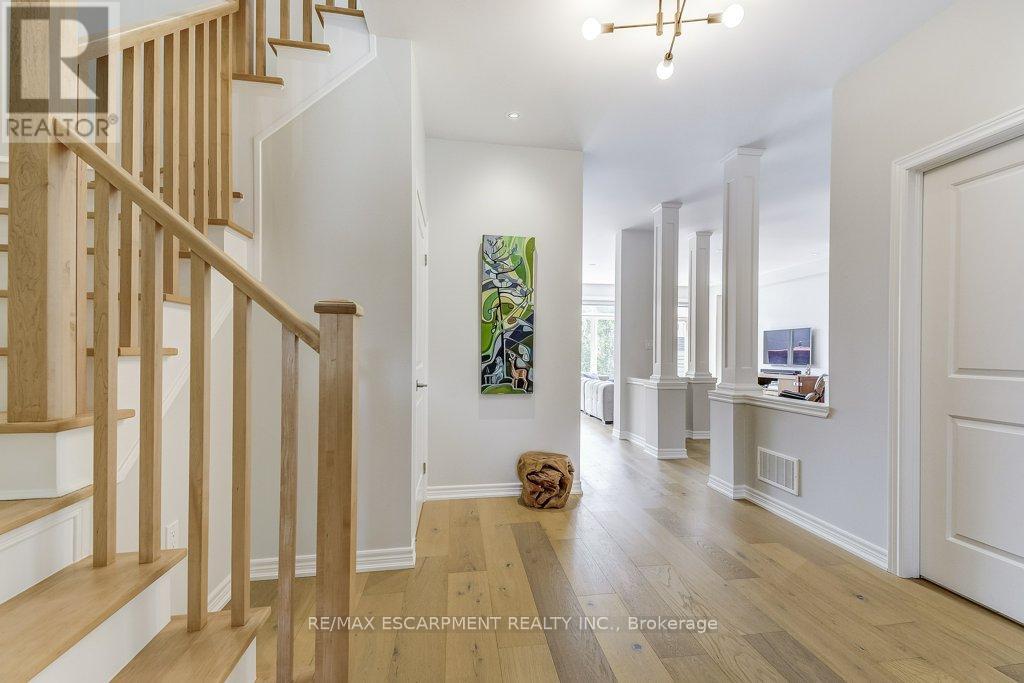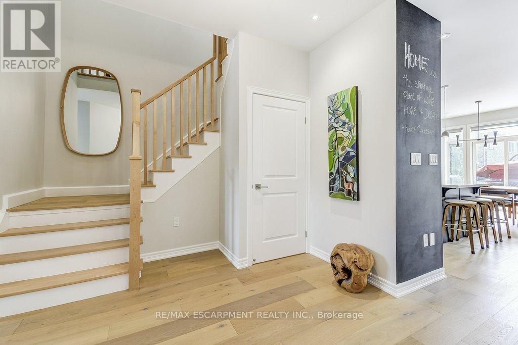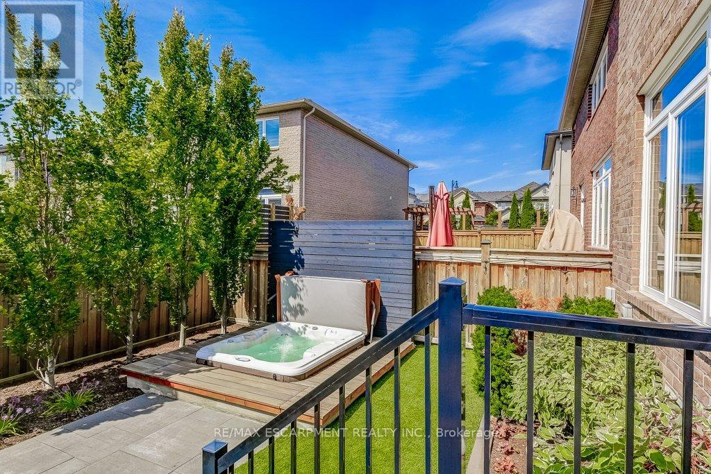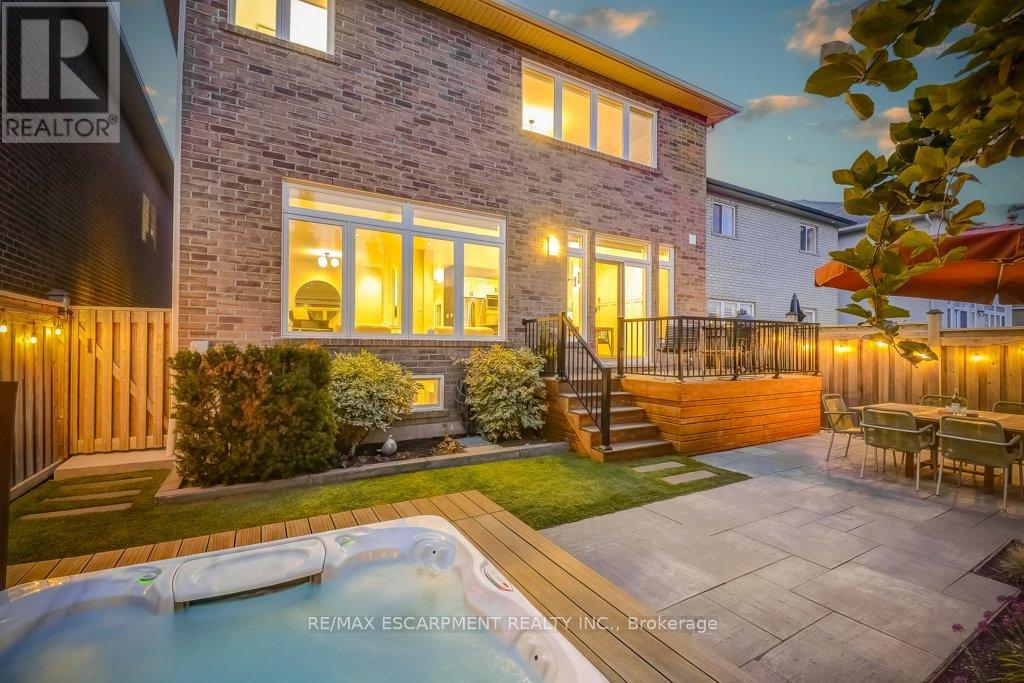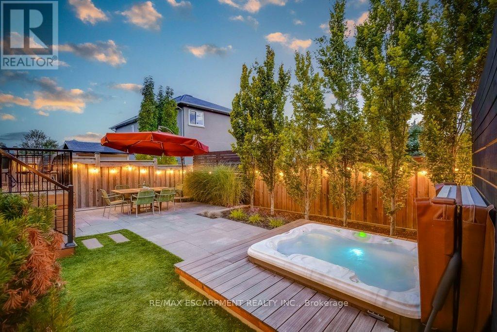 Beautifully upgraded and truly move-in ready! This turnkey 4-bedroom home on a wide, family-friendly street has been tastefully upgraded and meticulously hardscaped front to back. The exterior offers mature trees, perennial gardens, gorgeous feature walls, a striking stone front porch, and an exotic red balau deck with a hot tub surround inspired by Scandinavian spas. Freshly painted and carpet-free, the home features new hardwood flooring on both the main and bedroom levels, upgraded lighting, new bathroom fixtures, and a newly finished basement. A custom built-in desk and organized closets throughout add functionality and maximize storage space. The open-concept main floor is bright and inviting, with a wall of south-west facing windows that frame views of the stunning backyard. All this in an unbeatable lifestyle location: steps to schools, Memorial Park, the YMCA, trails, and everyday amenities. Surrounded by the Greenbelt and golf courses, with quick access to Aldershot GO and highways 6, 403, 407, and the QEW. (id:64974)