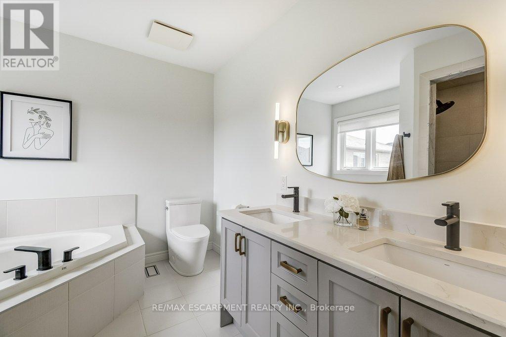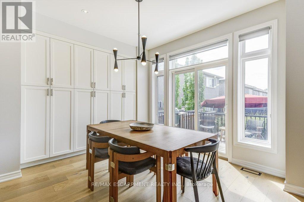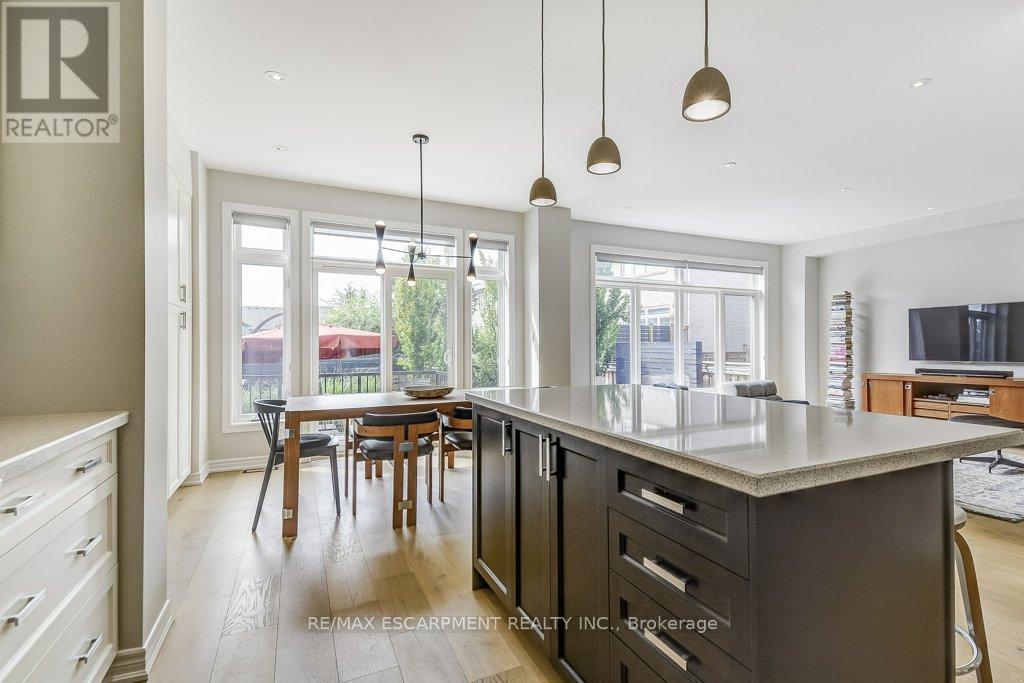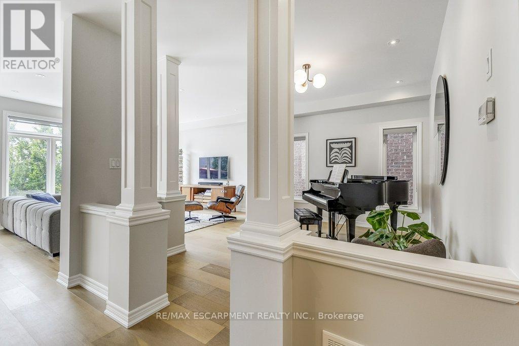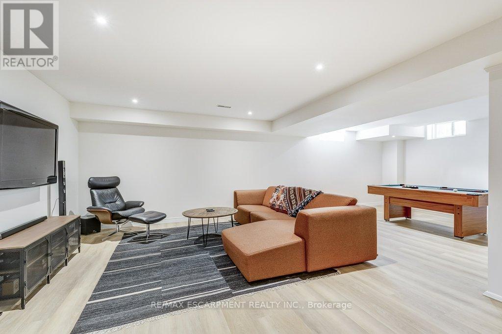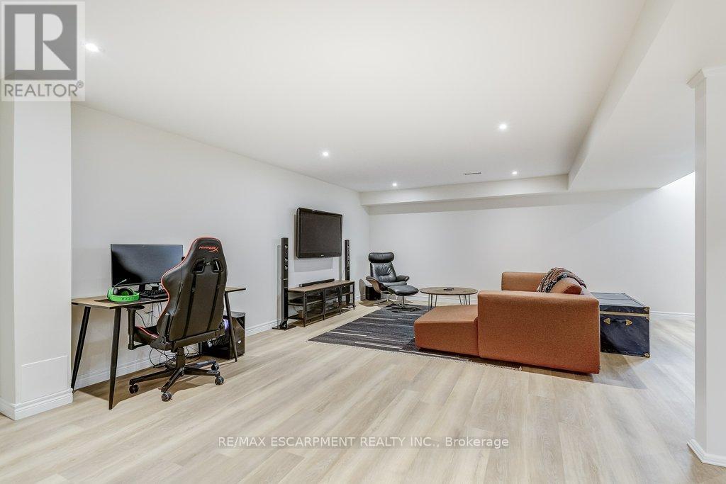 Beautifully upgraded and truly move-in ready! This turnkey 4-bedroom home on a wide, family-friendly street has been tastefully upgraded and meticulously hardscaped front to back. The exterior offers mature trees, perennial gardens, gorgeous feature walls, a striking stone front porch, and an exotic red balau deck with a hot tub surround inspired by Scandinavian spas. Freshly painted and carpet-free, the home features new hardwood flooring on both the main and bedroom levels, upgraded lighting, new bathroom fixtures, and a newly finished basement. A custom built-in desk and organized closets throughout add functionality and maximize storage space. The open-concept main floor is bright and inviting, with a wall of south-west facing windows that frame views of the stunning backyard. All this in an unbeatable lifestyle location: steps to schools, Memorial Park, the YMCA, trails, and everyday amenities. Surrounded by the Greenbelt and golf courses, with quick access to Aldershot GO and highways 6, 403, 407, and the QEW. (id:64974)