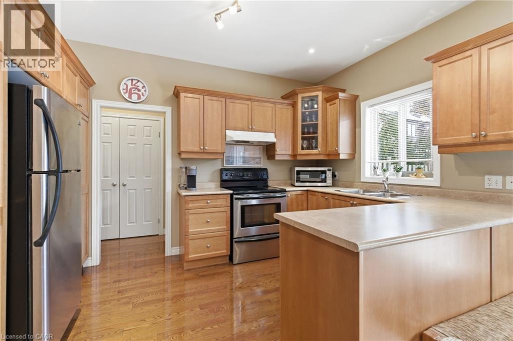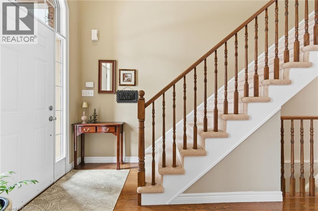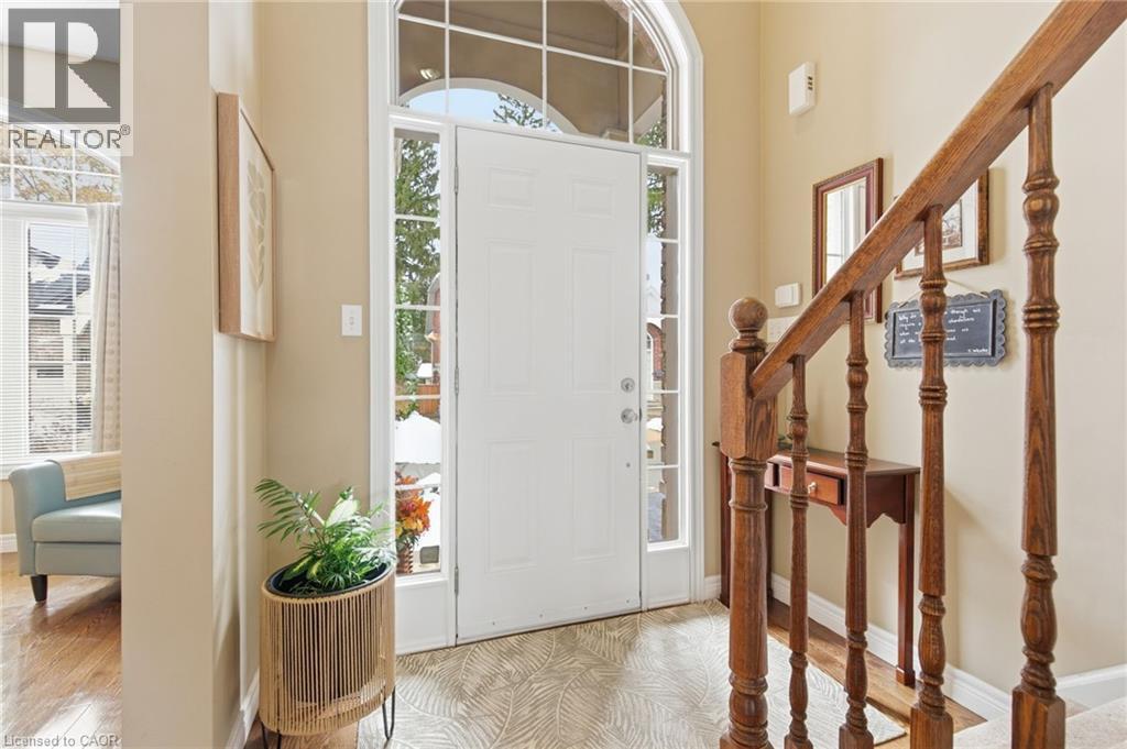 Welcome to 195 Wilson Street West, Unit 6, a beautifully maintained 2-storey freehold home tucked along a quiet private laneway in one of Ancaster’s most desirable neighbourhoods. The main level offers 9-foot ceilings, a bright eat-in kitchen, and a stunning vaulted-ceiling living room anchored by a cozy gas fireplace. A versatile front bonus room adds valuable flexibility and works perfectly as a family room, office, dining room, or even a main-floor bedroom. Everyday convenience is built in with main-floor laundry, a two-piece bathroom, and direct access to the garage. Upstairs, two generously sized bedrooms each enjoy their own bathroom, creating a comfortable layout for families, downsizers, or guests. The basement provides even more usable space, ideal for storage, a home gym, a recreation area, or future finishing to suit your needs. Step outside to a spacious back deck that offers an inviting place to unwind or entertain. The monthly fee of $175 includes snow removal, laneway lighting, and shared garden maintenance, allowing for a low-maintenance lifestyle without sacrificing the benefits of freehold ownership. Surrounded by established homes, mature streetscapes, and the best of Ancaster’s shops, restaurants, trails, golf, and quick highway access, this location offers a setting that is both convenient and truly special. (id:64974)