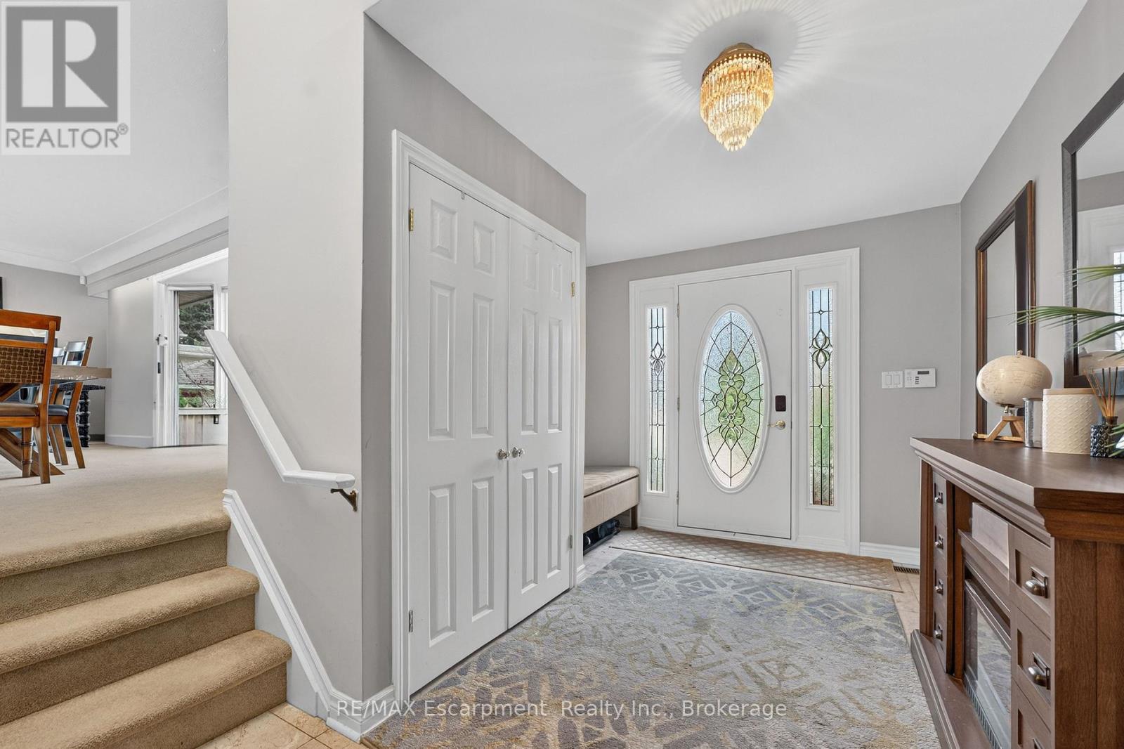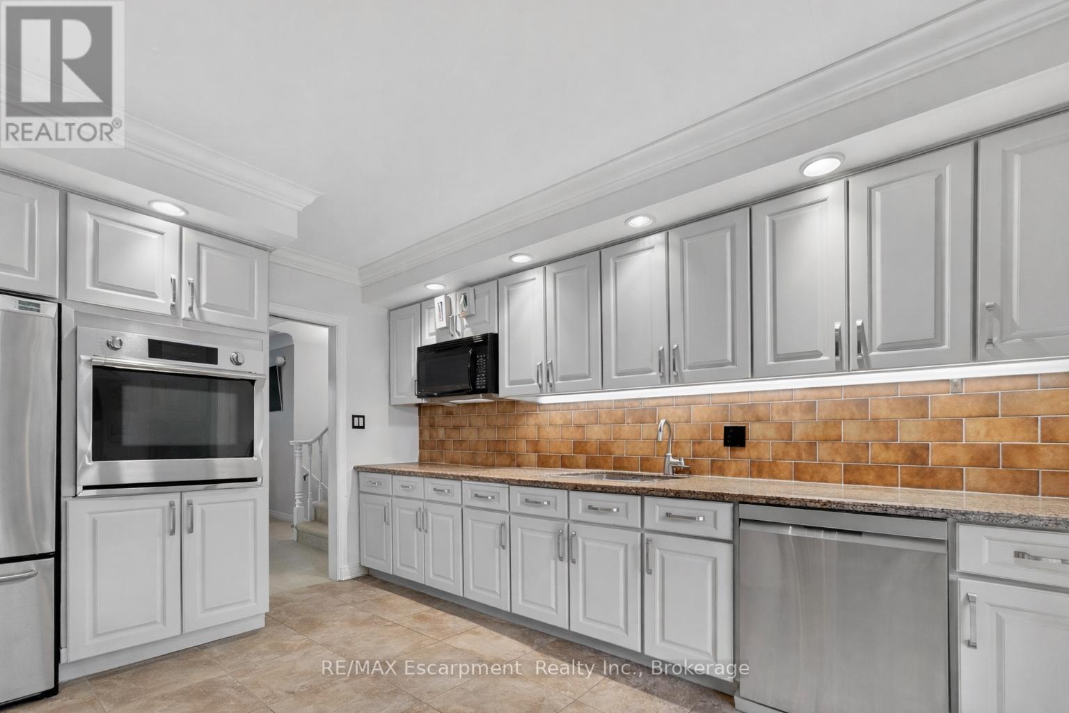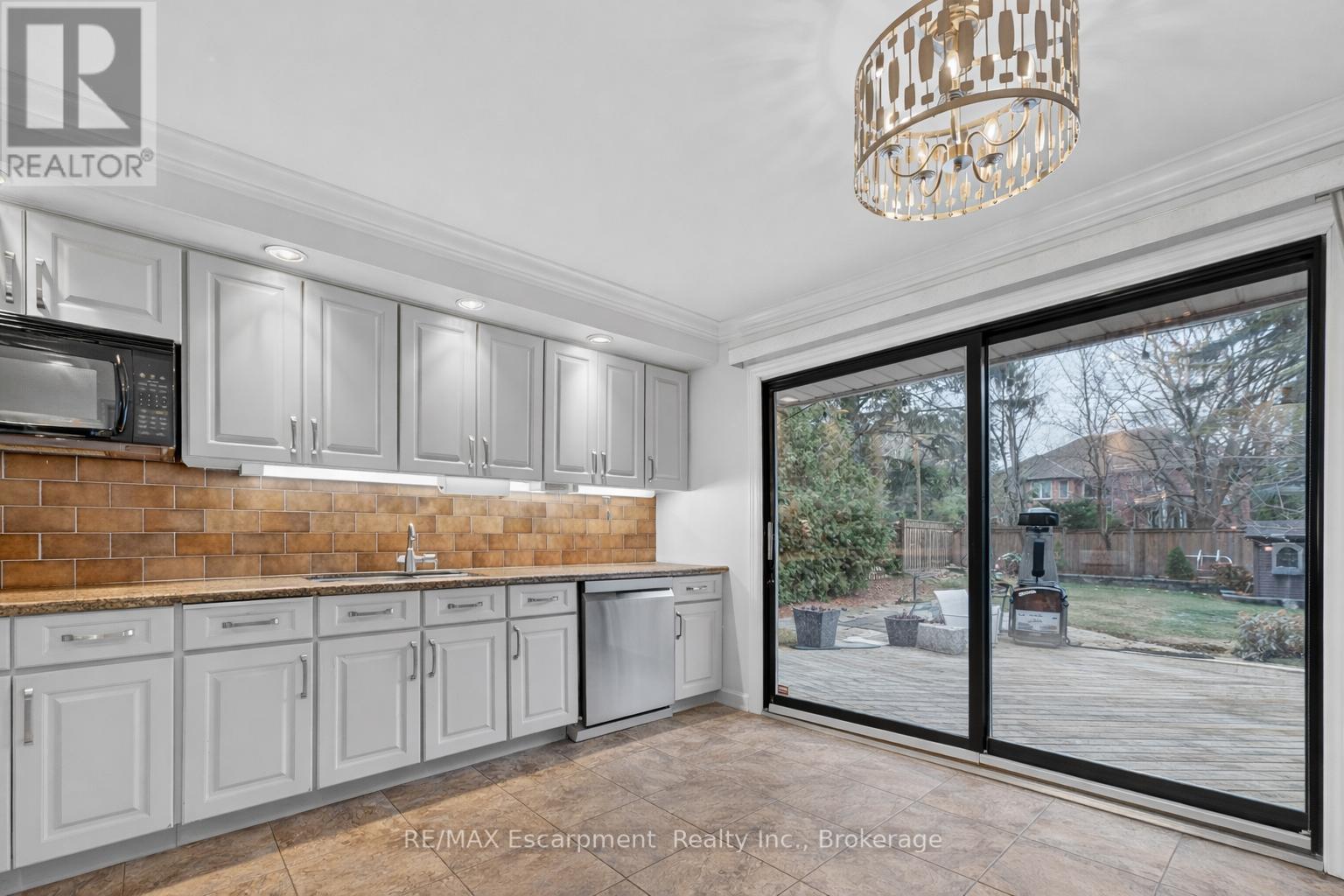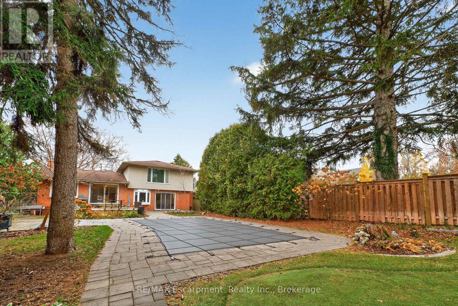 Welcome to 195 Wilton Street, set on an exceptional 70' x 163' lot in the heart of Burlington's highly coveted Roseland community. This well maintained side split offers approximately 2,000 square feet of functional living space with three bedrooms and three bathrooms, blending comfort, privacy, and lifestyle. The main level features a bright, open layout with an updated kitchen complete with granite countertops, stainless steel appliances, and walkout access to the rear deck, ideal for entertaining and everyday living. A separate family room with custom built ins and a gas fireplace provides a warm secondary living space with views of the backyard. The upper level includes three generously sized bedrooms, highlighted by a spacious primary suite with a private three piece ensuite, along with an additional updated main bath. Step outside to a true backyard retreat. The deep, private yard is professionally landscaped and features an inground saltwater pool, artificial turf putting green, and ample space for outdoor dining, lounging, and summer entertaining. Ideally located just steps from the lake, the Roseland Tennis Club, and close to top rated schools including Tuck and Nelson. Minutes to downtown Burlington, amenities, and major highways. A rare opportunity to secure a premium lot and lifestyle driven home in one of Burlington's most prestigious neighbourhoods. (id:64974)