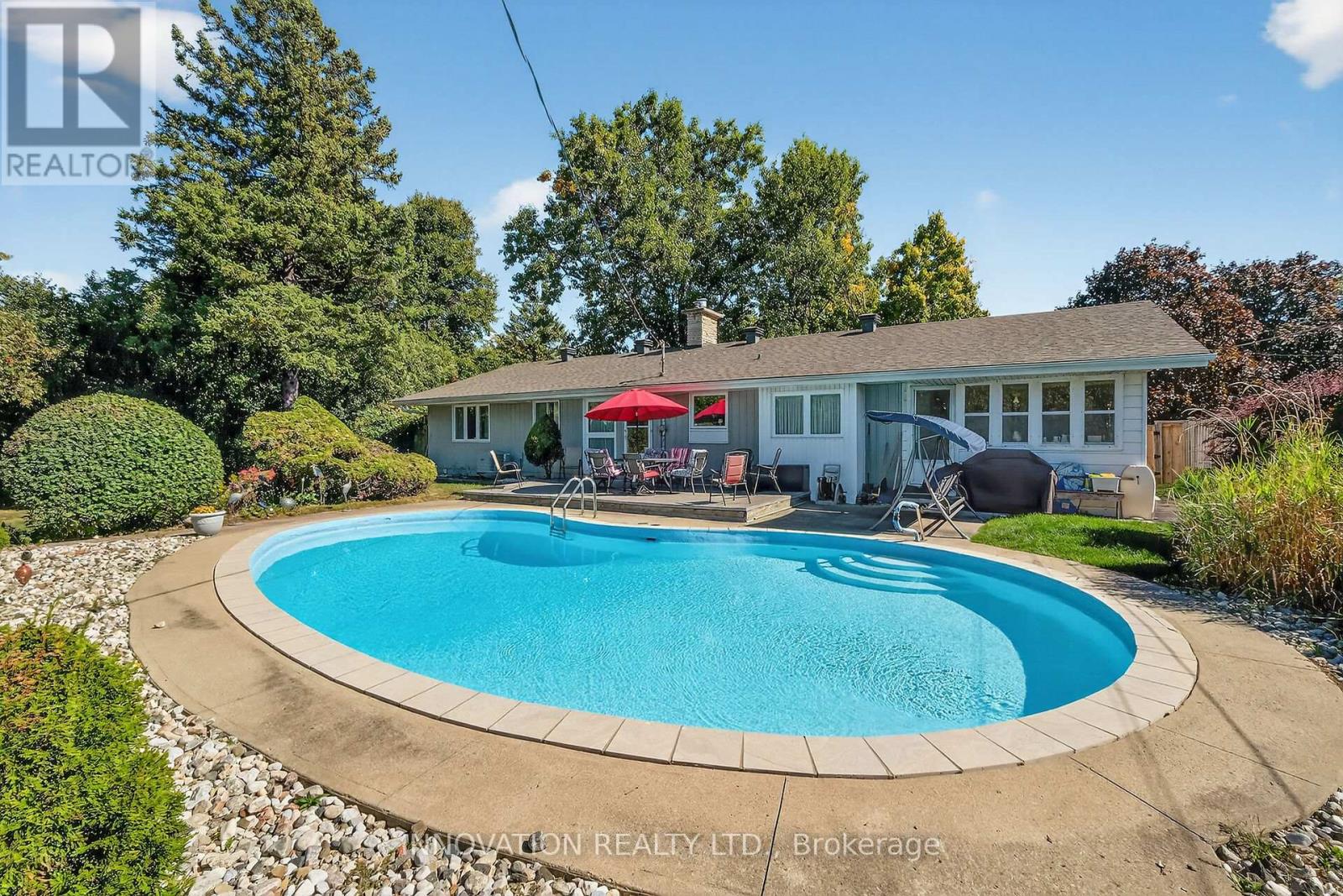 Welcome to an Oasis inside a 15 minute drive from Parliament Hill! Well maintained four bedroom bungalow on a pie shaped lot with a double garage. Hardwood flooring throughout. Spacious living area with gas fireplace. Dining area with door to sunroom and recessed buffet nook. Eat-in kitchen with views of the yard. Primary bedroom with 2 pc. ensuite bathroom. Main bath with glass doored shower stall and lots of storage space. Downstairs to massive finished basement with wood burning stove, wet bar and 2 pc. powder room. Laundry area, cold pantry and utility room for ample storage. Step into a huge lot with inground salt water pool, low deck for outdoor dining and family BBQ's, storage shed with lots of yard to spare! Close to NCC cycling trails, good schools and all the shopping you could ever want! (id:64974)