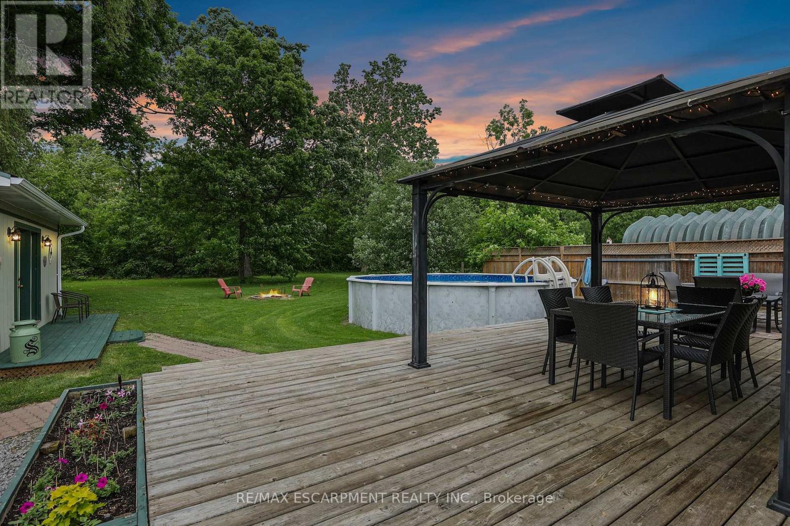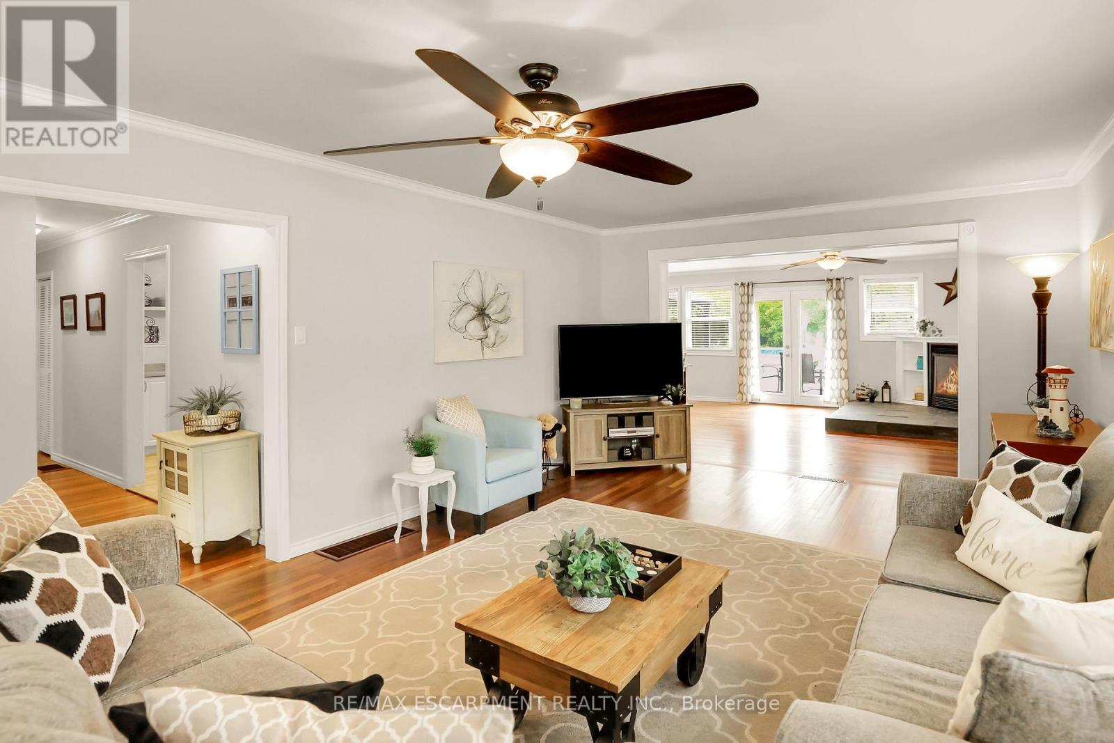 COUNTRY CHARM JUST MINUTES TO TOWN ... Tucked away on a quiet street in Fort Erie, 1954 Grayson Avenue offers peaceful country-style living on a lush OVERSIZED 80' x 223.8' L-SHAPED lot backing onto the Stevensville Conservation Area - with no rear neighbours and mature trees for ultimate privacy. This spacious, 1680 sq ft bungalow is full of character, and features 3 bedrooms and 2 bathrooms. Step onto the charming, covered front porch, then proceed inside to find gleaming hardwood floors, crown moulding, and an impressive corner gas fireplace anchoring the OPEN CONCEPT living/dining space. The bright kitchen offers abundant cabinetry, a gas stove, and a server window for effortless entertaining. Step through patio doors to your private backyard oasis, complete with a deck, above-ground POOL, 10' x 12' GAZEBO, gas BBQ hookup, storage/garden shed, and a detached garage/WORKSHOP. Bonus: a fully insulated 400 sq ft mancave with heat and A/C - perfect for a studio, games room, or year-round hangout! This home is practical, too - featuring a BRAND-NEW septic system, plenty of closets (all with lighting), 4-pc main bath, plus a separate laundry room with 2-pc bath. Located close to schools, parks, golf courses, campgrounds, the Fort Erie Leisureplex, and only minutes to Safari Niagara, Crystal Beach, or the Peace Bridge to the U.S. CLICK on MULTIMEDIA for virtual tour, drone photos, floor plans & more. (id:64974)