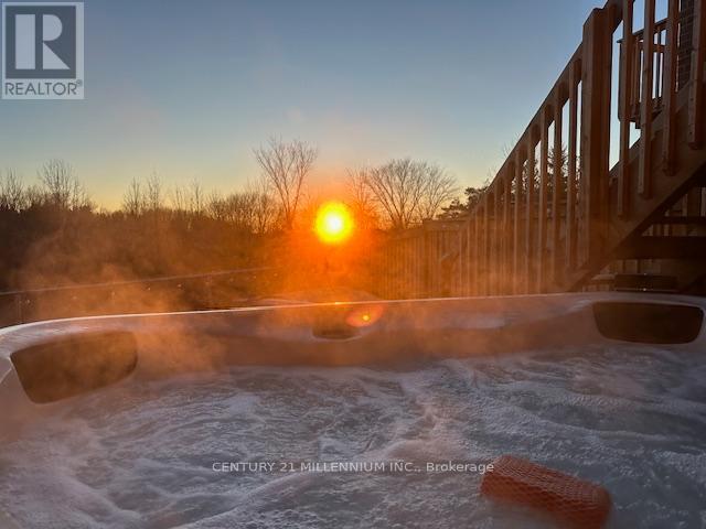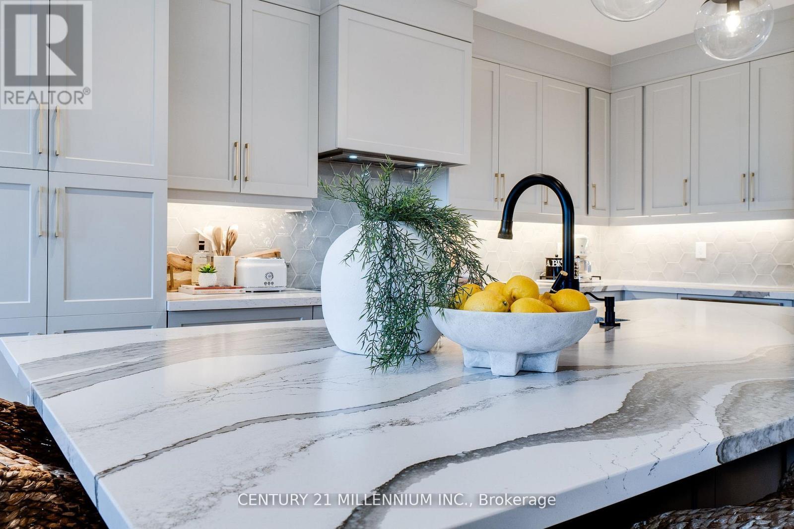Ravine Setting | Custom Floor Plan | Resort-Style Pool. Step into refined luxury in this 4-bedroom, 4-bathroom residence featuring a thoughtfully designed custom floor plan where timeless elegance meets low-maintenance living. Backing onto a stunning ravine, this home offers an exceptional indoor-outdoor lifestyle for both everyday comfort and elevated entertaining. A custom mudroom leads to a chef-inspired kitchen with over $52,000 in premium upgrades, flowing seamlessly into the family room with a linear gas fireplace and custom Cambria shelving. Expansive 12-ft patio doors open to a full-length deck with breathtaking ravine and sunset views. The primary suite is a private retreat with a morning kitchen, double-sided fireplace, spa-inspired ensuite, and a secluded deck overlooking tranquil views. The sun-filled walk-out lower level-with bathroom rough-ins-offers space for an in-law suite, home office, gym, or entertainment area. Designer finishes, a saltwater heated pool, Arctic Spa hot tub, and professionally landscaped resort-style backyard complete this rare offering. Premium ravine reverse pie lot on a quiet cul-de-sac-truly one of a kind. (id:64974)