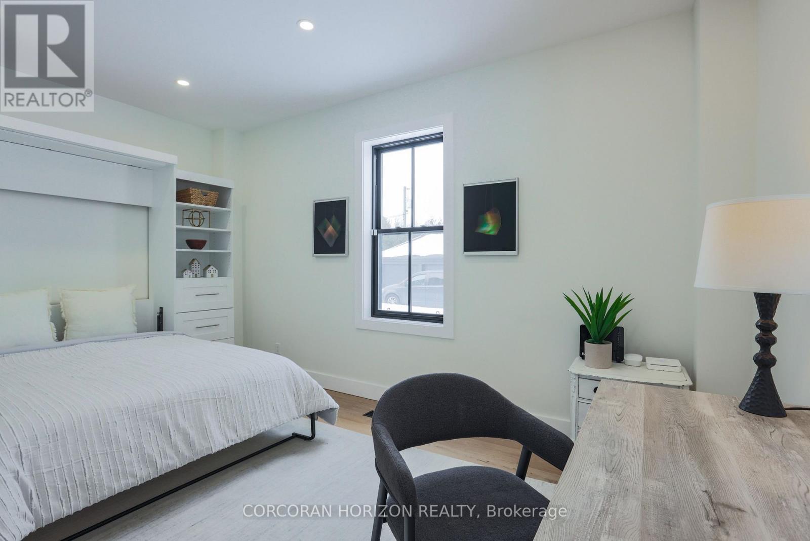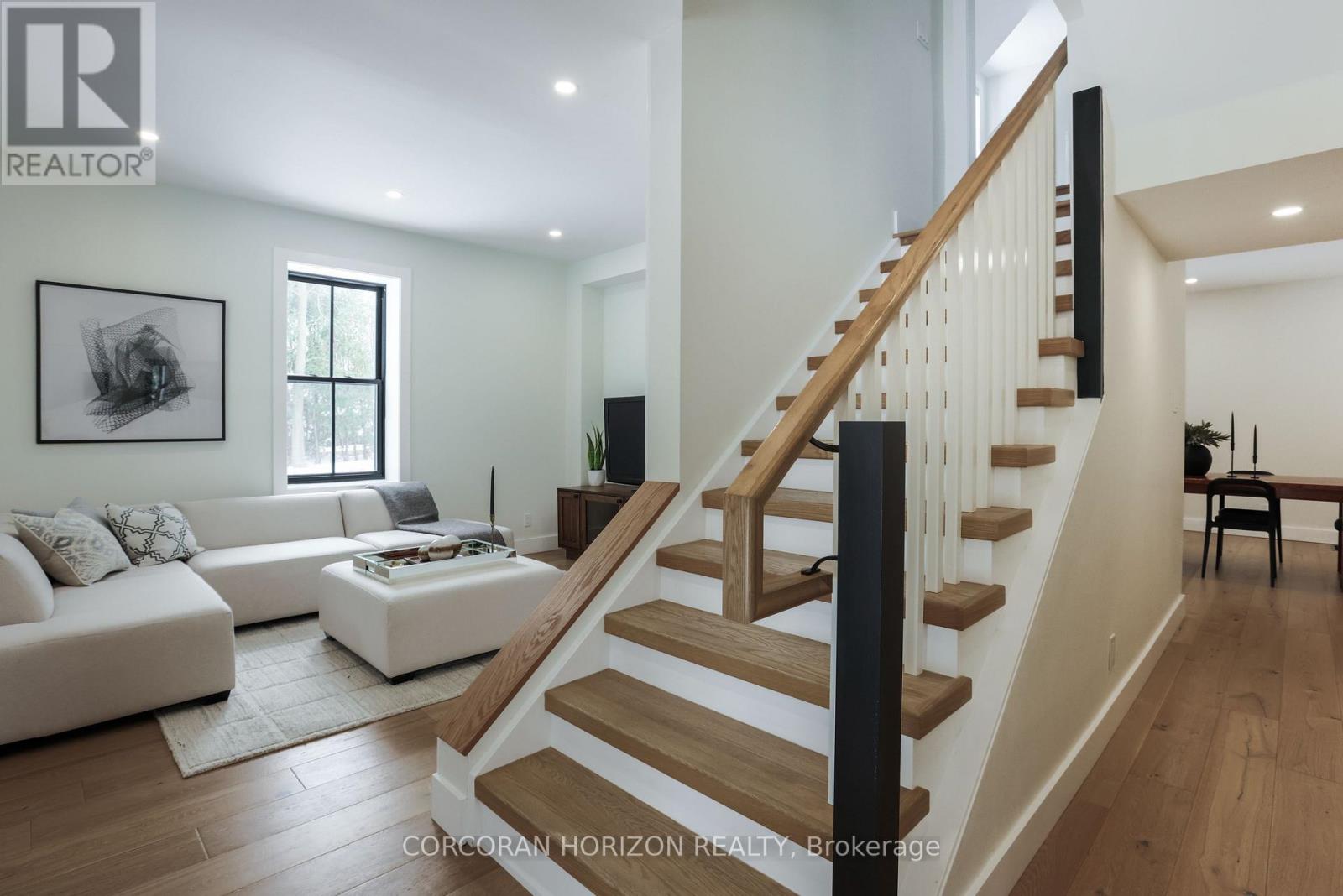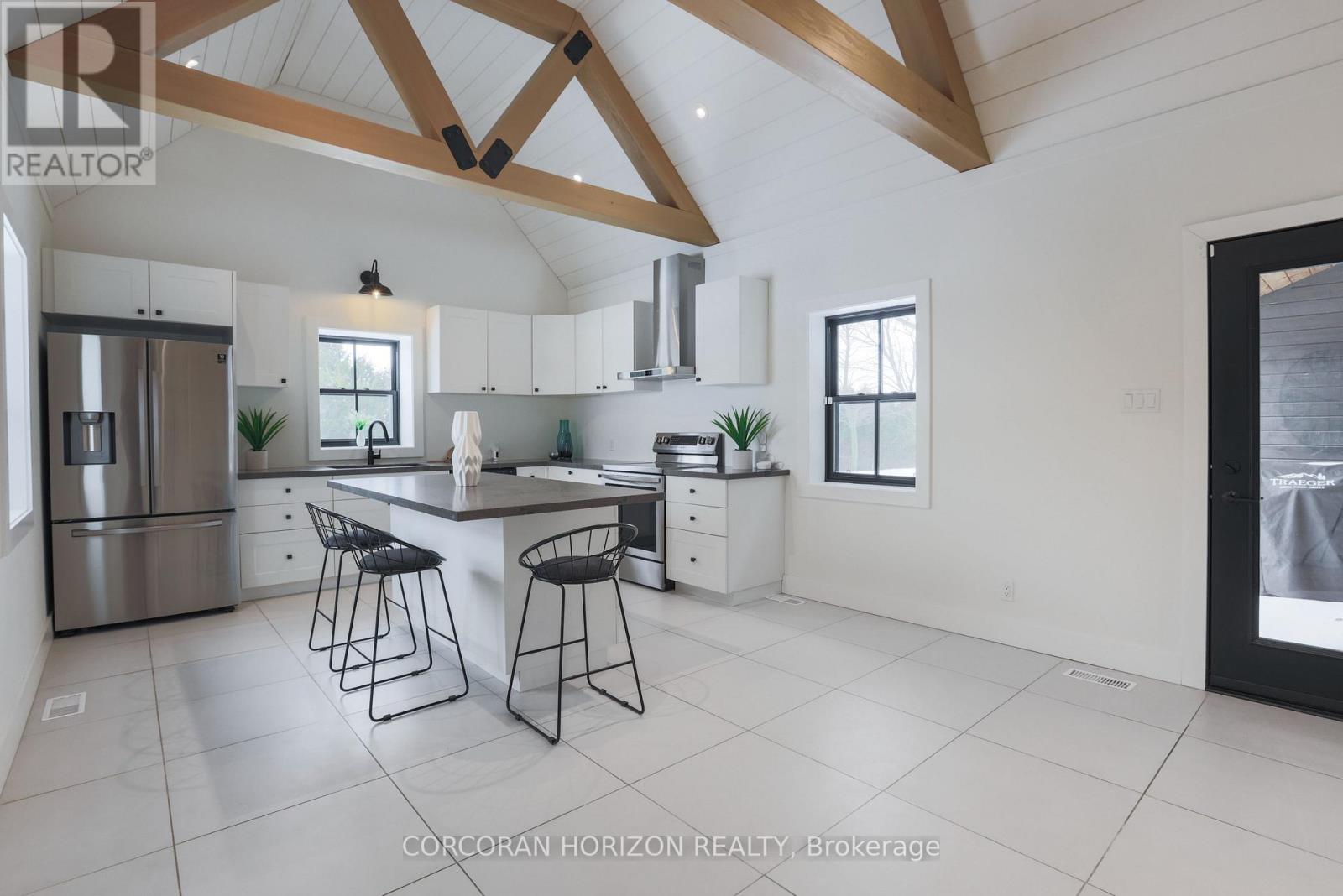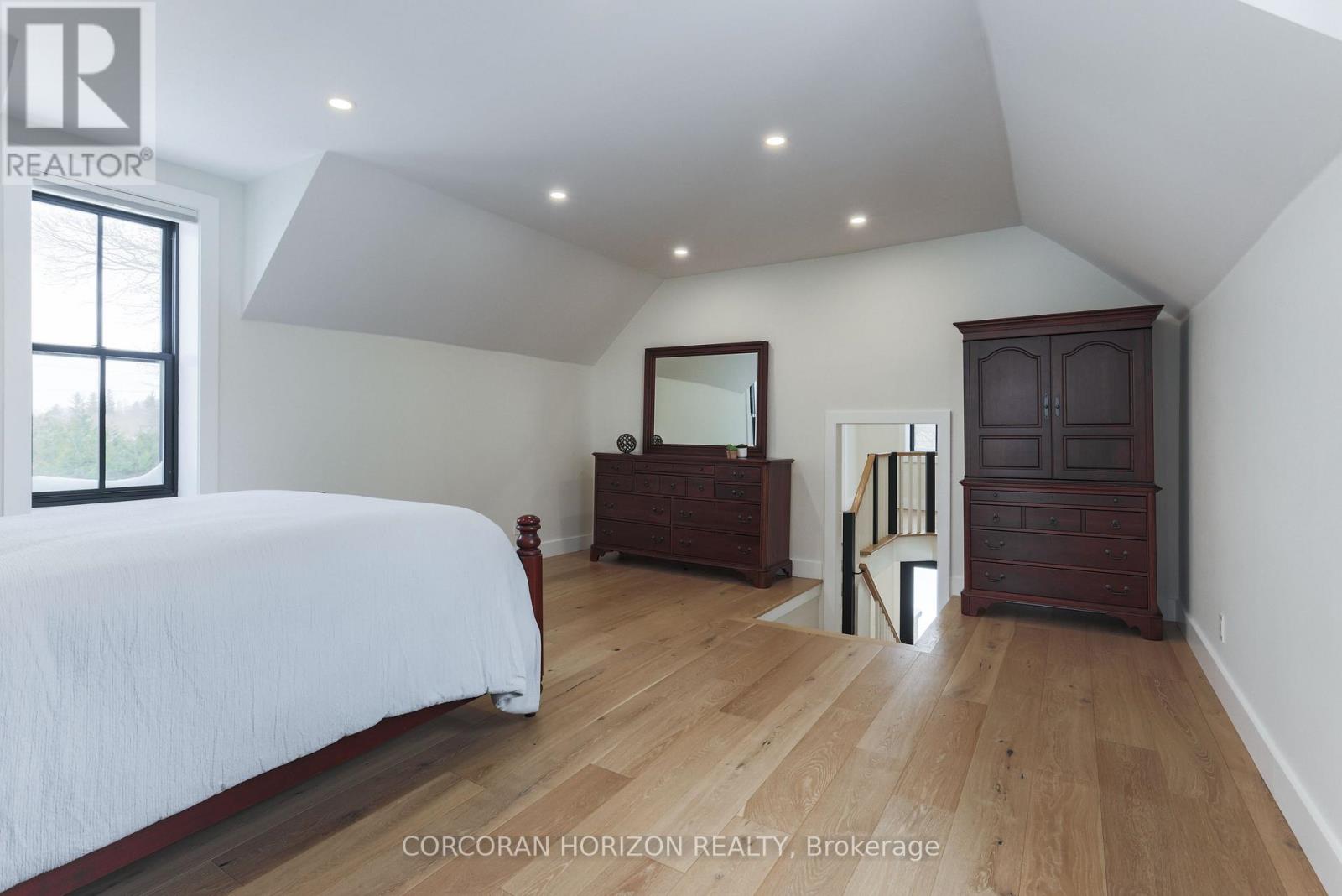 Step into a rare blend of history and modern luxury in this completely rebuilt 1865 farmhouse thoughtfully reimagined for today's living while honouring its timeless soul.From the moment you arrive the sweeping covered front porch sets the tone overlooking a treed front yard and rolling countryside that feels worlds away from the everyday.Inside the heart of the home is a show-stopping kitchen where a soaring 13-ft beamed ceiling and exposed brick wall pay homage to the home's heritage.A large quartz centre island anchors the space perfect for gathering while a generous breakfast area invites long unhurried mornings.A separate mudroom w/beautifully crafted built-in closets keeps family life effortlessly organized.Wide-plank hardwood floors flow throughout the home complementing a main-floor powder room and a well-designed laundry room complete w/built-in cabinetry and sink. Entertain in the expansive family dining room featuring a walk-out to a romantic covered porch ideal for summer dinners quiet evenings and year-round enjoyment.Historically accurate thermal windows frame stunning views from every room filling the home with natural light.The main level also offers a versatile fourth bedroom or family room w/a custom built-in Murphy bed perfect for guests or multi-generational living. Upstairs, three spacious family bedrooms await including a serene primary retreat with a large walk-in closet and a beautifully appointed four-piece ensuite plus an additional family bathroom. Outdoors the lifestyle continues across more than 4.6 acres of rolling hills complete with a firepit toboggan hill and breathtaking views beyond compare. A detached two-car garage is complemented by an impressive 3,061 sq. ft. barn or workshop with 15.6-ft joist clearance ideal for storage, a home business or agricultural use.This is more than a home it's an extraordinary family retreat and a compelling investment with a lucrative future development potential. A truly one-of-a-kind opportunity. (id:64974)