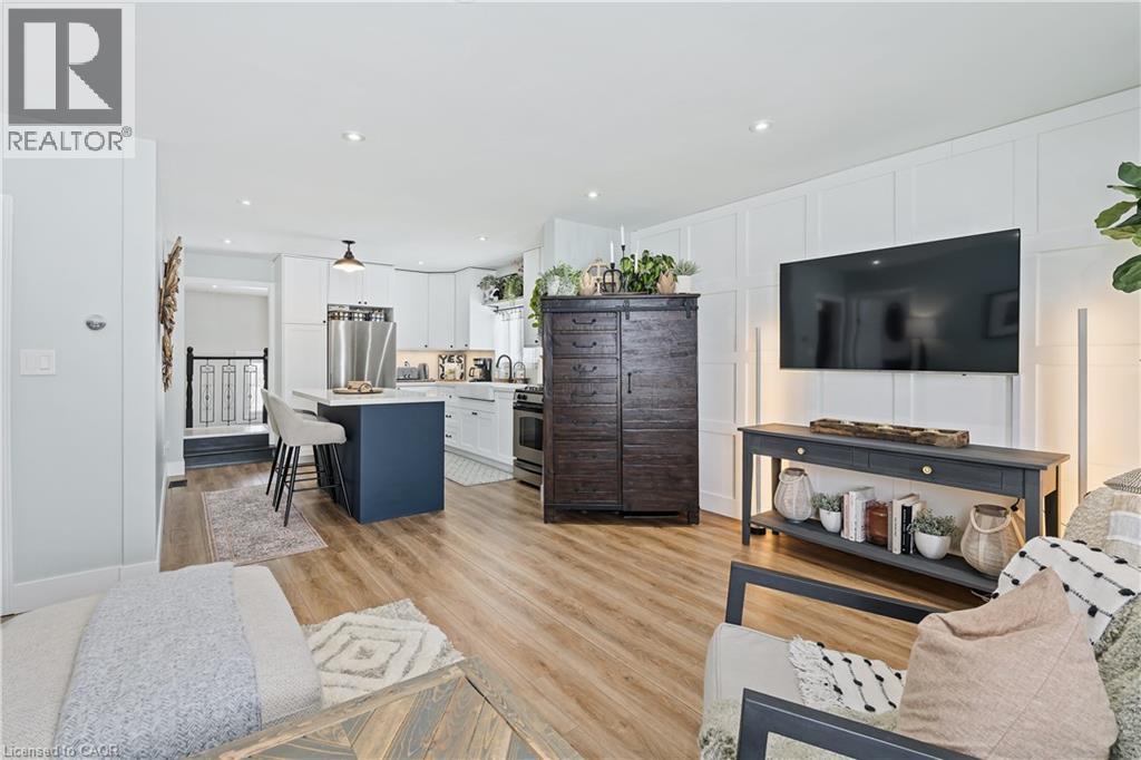 Discover refined comfort in this beautifully maintained, cute as a button, 2 + 1 bedroom, 2 bathroom residence offering over 1,500 square feet of total and thoughtfully finished living space. Set within a mature, tree-lined neighbourhood known for its welcoming community and exceptional convenience to schools, Highway 401 and premier amenities, this home is waiting to welcome a new family. A private side entrance leads to the fully finished lower level, presenting outstanding in-law or multi-generational living potential. Outdoors the deep, fully fenced backyard creates a serene retreat for elegant entertaining, complete with an expansive deck and two storage buildings - one powered and perfectly suited for a workshop or creative studio. Inside, natural light fills the inviting main living area, complemented by two well-appointed bedrooms and a stylishly updated bathroom. The eat-in kitchen blends function and charm with generous storage and seamless access to the rear entry and lower level. The finished basement features a sophisticated third bedroom, a second full bathroom, an upgraded laundry space with folding counter and extensive shelving and a spacious recreation room. A substantial utility and cold room further enhance the home's impressive storage capacity. Don't miss this exceptional opportunity to enjoy comfort, privacy and versatility in a sought-after setting! (id:64974)