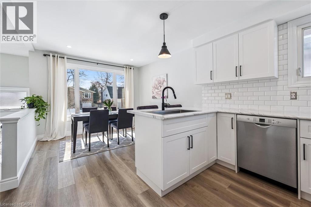 Tucked into a quiet pocket of West Galt, this solid brick raised bungalow is cute-as-a-button and completely move-in ready. A thoughtfully designed layout makes everyday living easy. From the moment you step inside, you’ll love the large windows and fresh neutral palette that creates a bright, welcoming feel throughout the open-concept main floor. The updated kitchen is crisp and functional with stainless steel appliances, a classic subway tile backsplash, and a breakfast bar that’s perfect for casual meals or morning coffee. It flows seamlessly into the living and dining areas, making it ideal for both family time and entertaining. On the main level you’ll also find three good-sized bedrooms, including a primary bedroom with a wall-to-wall closet and ensuite privilege to the stylish 4-piece family bath. The finished lower level offers endless possibilities. A spacious rec room with a gas fireplace creates a cozy gathering space, while the additional bedroom is perfect for extended family or teens looking for a space of their own. The renovated bathroom is a standout feature with heated floors, a walk-in shower and integrated laundry. Just off the rec room, a bonus room with sliding doors provides walk-out access to the backyard — ideal for a home office, playroom, or exercise space. Outside, the fully fenced rear yard is ready for summer enjoyment with an inground salt-water swimming pool and a covered patio for relaxing or hosting. The attached single car garage and paver stone driveway with parking for four cars adds everyday convenience. Set within a mature and family-friendly Cambridge neighbourhood, this home is just steps to Angela Park and minutes from shopping, schools, the vibrant Gaslight District, Grand River trails and downtown Galt. From bright spring mornings in the kitchen to long summer afternoons by the pool, this home is ready to be enjoyed. Schedule your private viewing and see firsthand why this one feels like home. (id:64974)