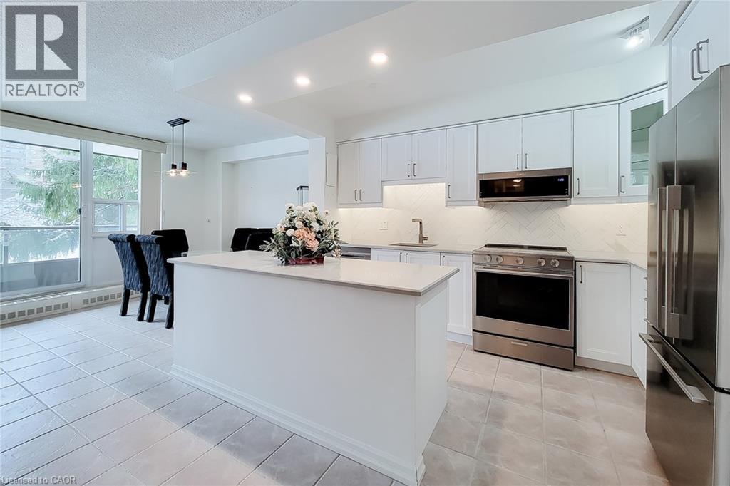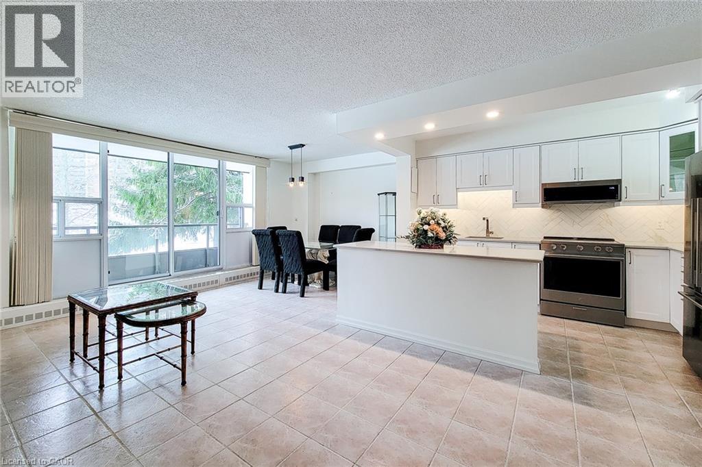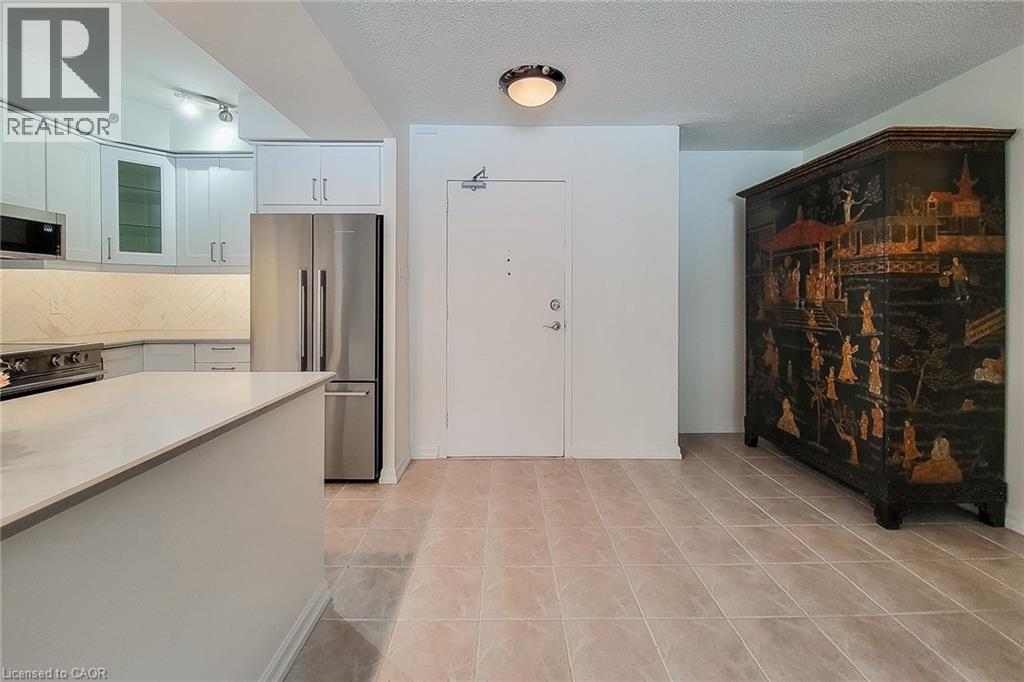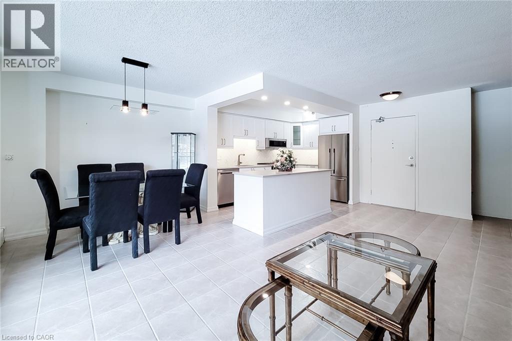 Welcome to this beautifully maintained condominium in the highly desirable Forest Glen community. Step inside to discover a bright and inviting living space, highlighted by a large window and patio door that flood the unit with natural light. The updated open-concept kitchen (2019) seamlessly connects to the living and dining areas, creating an ideal layout for both everyday living and entertaining. From here, step out onto the oversized private balcony overlooking peaceful green space and mature trees — a perfect place to relax and unwind. The spacious primary bedroom features a walk-in closet and a convenient 2-piece ensuite (2019). Two additional generously sized bedrooms, and a well-appointed 3-piece main bathroom, provide plenty of room for family, guests, or a home office. The storage room includes an additional shower and built-in shelving for added functionality. Residents enjoy an impressive selection of amenities, including an indoor pool, sauna, exercise room, games room, and more. This unit also includes one underground parking space, with access across the hall from the unit, and a conveniently located same-level storage locker. A same-floor coin-operated laundry facility is just steps from your door. Ideally situated in West Hamilton, this prime location offers quick access to highways, McMaster University and Hospital, scenic hiking trails, public transit, schools, shopping, and everyday conveniences. Book your private showing today and experience everything this exceptional condominium has to offer. Note: Internet/TV will be included as part of the Bell Fibe service, beginning in June 2026, which will be covered by a $48.00 condo fee increase when it goes live. New owner to contact Bell and Alectra (hydro) to set up accounts. 2/4 Special Assessment Instalments have been paid. (Information provided by King Condo Management Inc. Manager Assistant). (id:64974)