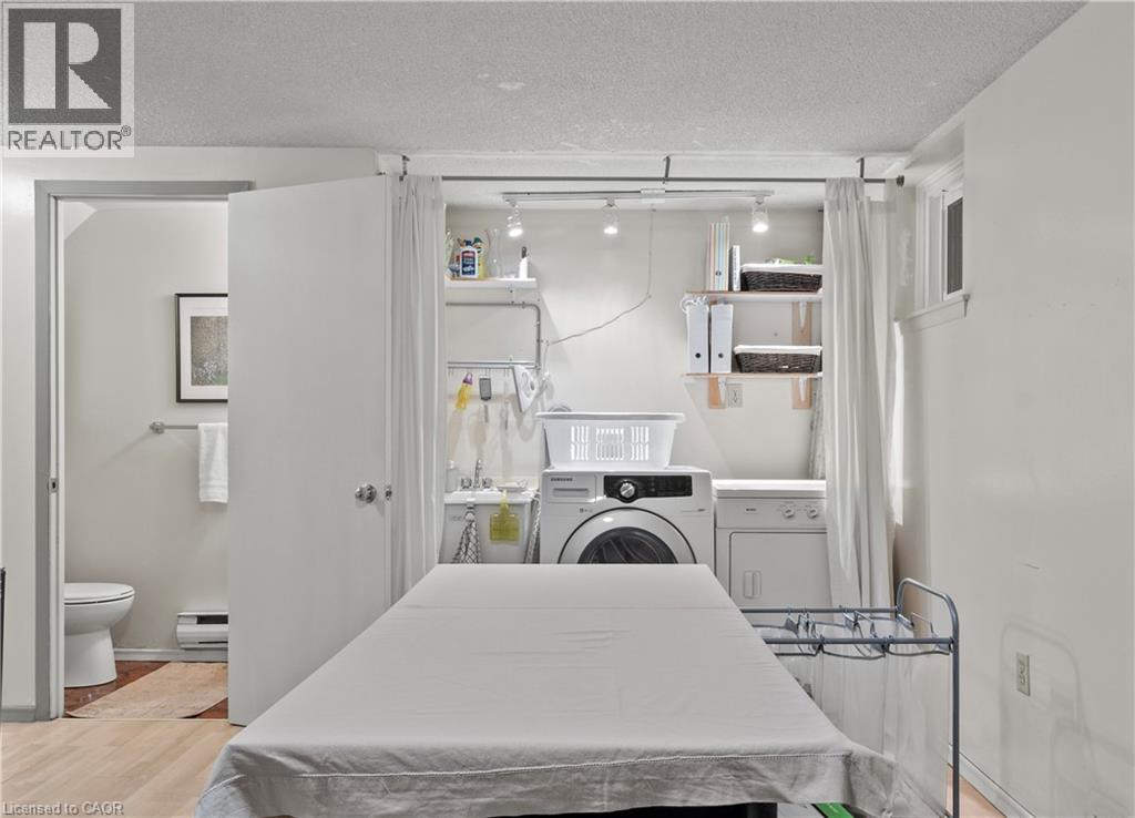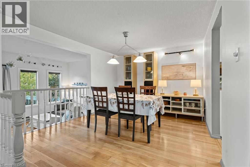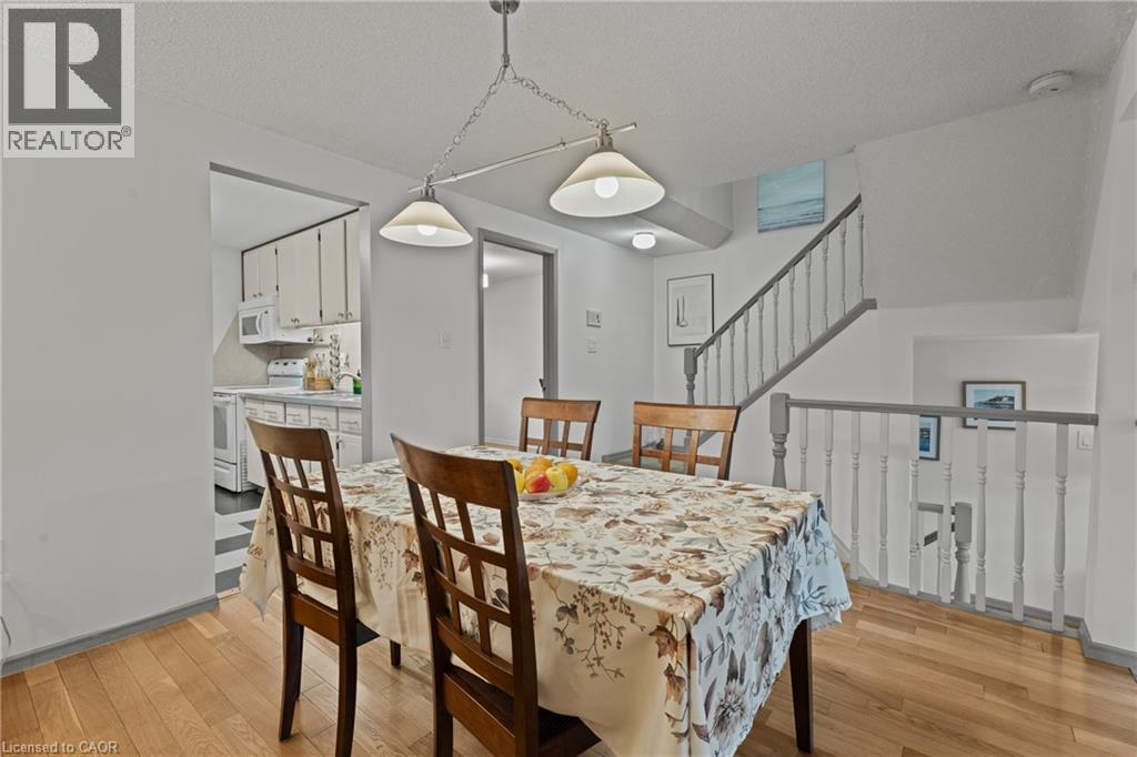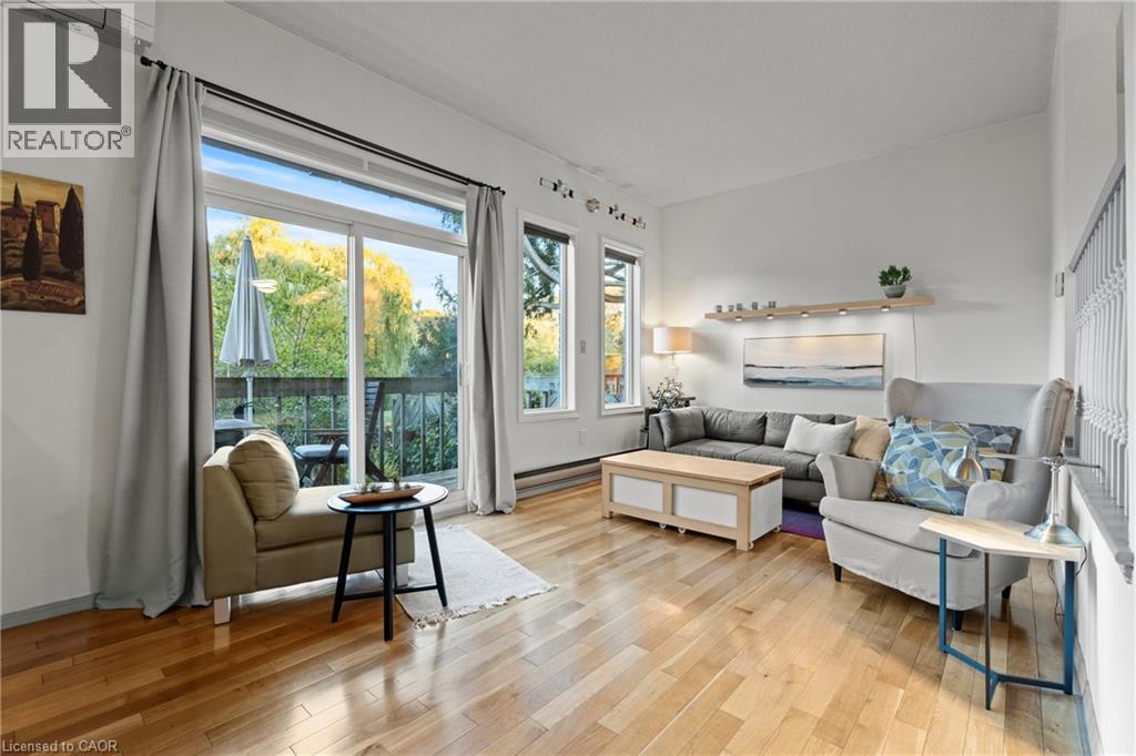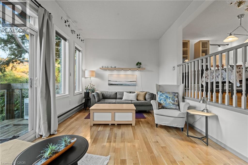 Beautiful end unit townhouse located in the highly desirable Ainslie Wood West Hamilton area. This is one that has to be seen to be appreciated. Nestled among mature trees, this home is one of the few that offers a walk-out from the living room to a private backyard with stunning escarpment views, and breathtaking sunrises and sunsets. The entertaining area offers a bright light filled living room with sliding patio door with transom window, and a spacious dining area just off the kitchen. There is also a main floor bedroom/den that’s perfect as a kids’ playroom, additional bedroom/guest room, or home office—flexible space to suit your family’s needs. The upper level offers a 4-piece bathroom with an updated vanity & 3 spacious bedrooms (primary with oversized closet and all with custom closet doors). Hardwood floors on the upper levels. Finished basement complete with a convenient powder room—ideal for extra living space, a play area, or a family rec room. Equipped with an efficient Mitsubishi ductless heat pump split unit system for both heating and air conditioning, ensuring year-round comfort. Parking for two vehicles with both a garage and driveway space. Just minutes from Tiffany Falls, scenic trails, parks, restaurants, everyday amenities, public transit, Highway 403, Lincoln M. Alexander Pkwy, and McMaster University/Hospital. Book your personal tour today and discover all this home has to offer (id:64974)