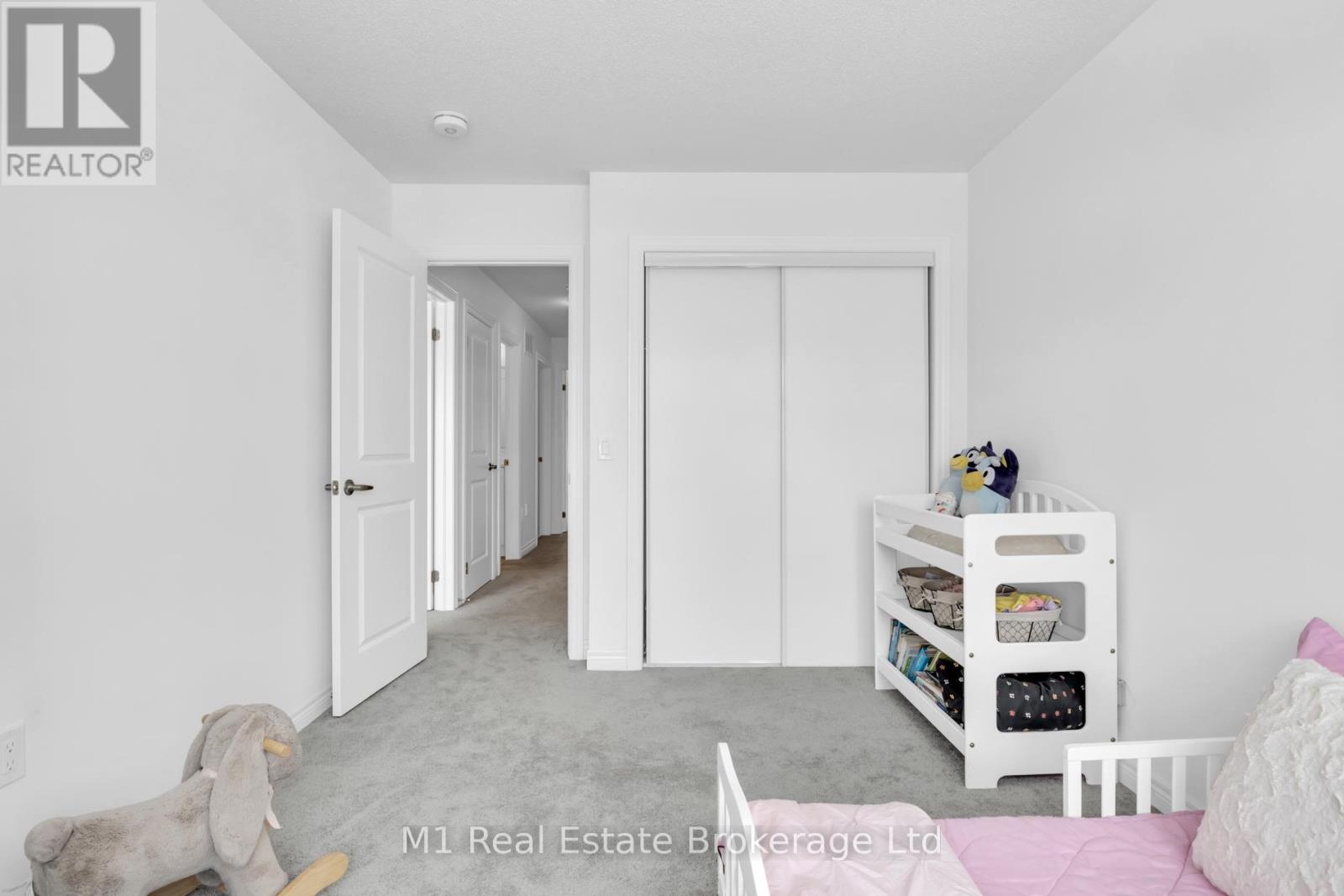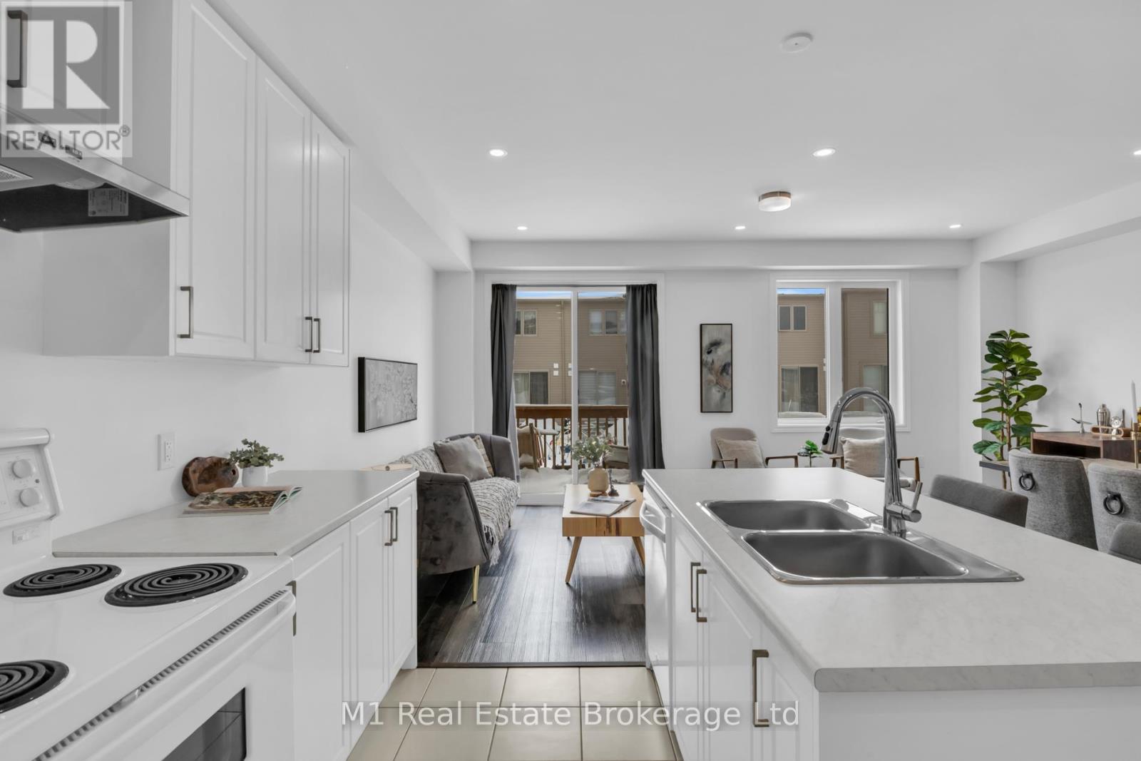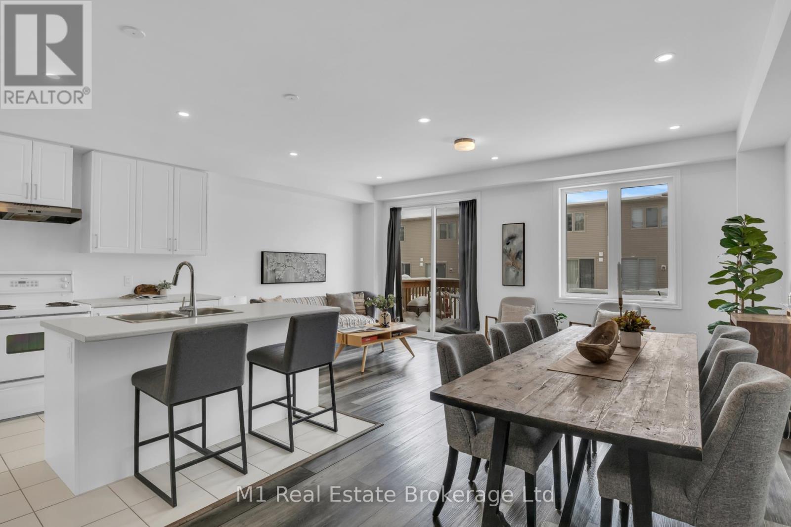 Welcome to 197 Farley Road, a well-designed freehold townhome located in the desirable Storybrook community of Fergus. This modern two-storey home offers approximately 1,742 sq. ft. of finished living space with three bedrooms and three bathrooms, providing a practical layout suited to everyday living. The main floor features a bright, open-concept design anchored by a contemporary kitchen with ample cabinetry, a large centre island, and quality finishes throughout, flowing seamlessly into the main living area. Upstairs, the primary bedroom includes a walk-in closet and a private four-piece ensuite, while two additional bedrooms share a full main bath. Upper-level laundry adds everyday convenience, and the unfinished basement offers excellent potential for future living space with existing rough-ins already in place. Exterior highlights include attractive brick and stone finishes, a covered front porch, and an attached garage with interior access. Ideally located close to schools, parks, trails, recreation facilities, and Groves Memorial Community Hospital, this home offers a low-maintenance lifestyle in one of Fergus's established newer neighbourhoods. (id:64974)