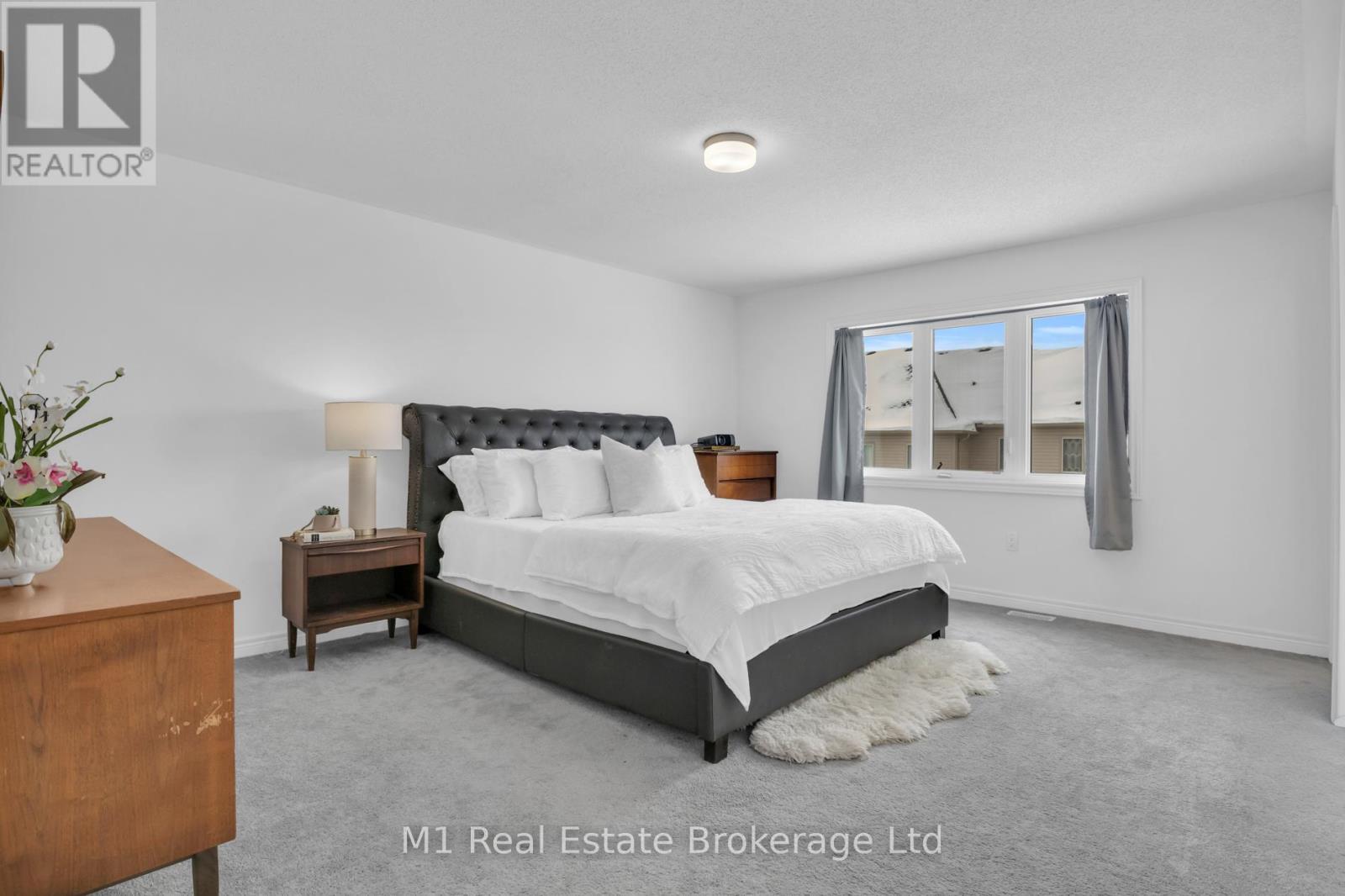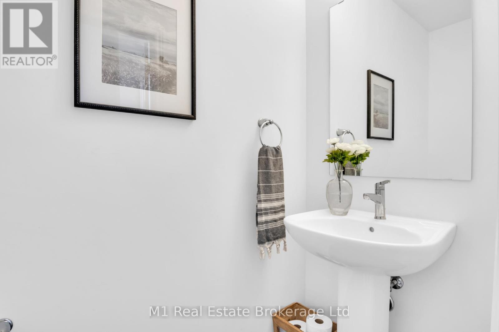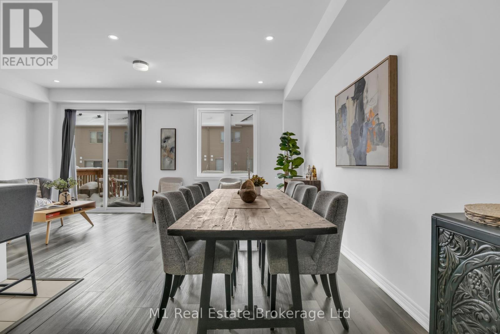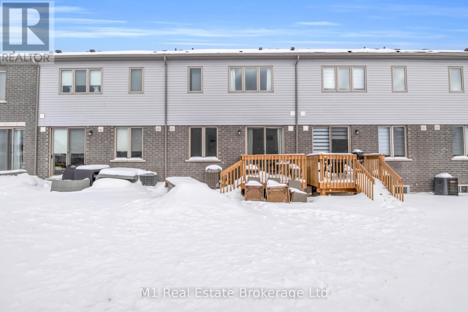 Welcome to 197 Farley Road, a well-designed freehold townhome located in the desirable Storybrook community of Fergus. This modern two-storey home offers approximately 1,742 sq. ft. of finished living space with three bedrooms and three bathrooms, providing a practical layout suited to everyday living. The main floor features a bright, open-concept design anchored by a contemporary kitchen with ample cabinetry, a large centre island, and quality finishes throughout, flowing seamlessly into the main living area. Upstairs, the primary bedroom includes a walk-in closet and a private four-piece ensuite, while two additional bedrooms share a full main bath. Upper-level laundry adds everyday convenience, and the unfinished basement offers excellent potential for future living space with existing rough-ins already in place. Exterior highlights include attractive brick and stone finishes, a covered front porch, and an attached garage with interior access. Ideally located close to schools, parks, trails, recreation facilities, and Groves Memorial Community Hospital, this home offers a low-maintenance lifestyle in one of Fergus's established newer neighbourhoods. (id:64974)