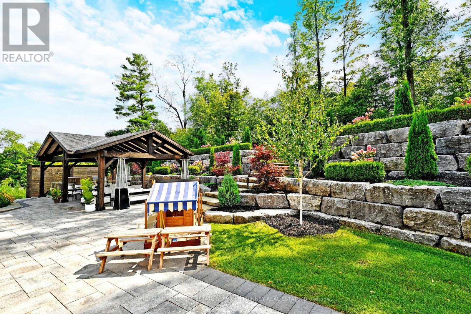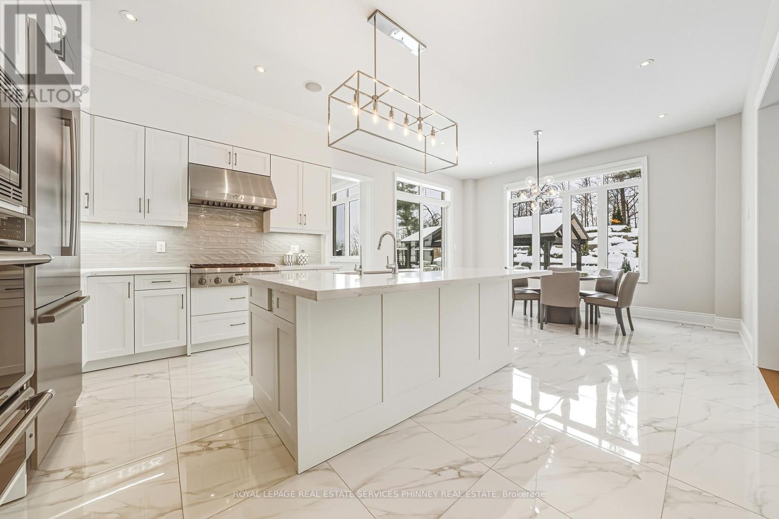 Discover unparalleled estate living in this magnificent executive residence, gracefully positioned on a commanding 1.14-acre lot in the prestigious Shire Estates and backing onto a serene ravine. This stately, sun-filled home offers more than 6,000 sq. ft. of masterfully curated living space, blending refined luxury with an unmistakable sense of grandeur.A soaring architectural presence is felt throughout, with 10' ceilings on the main level and 9' ceilings on the second floor and lower level, enhancing the home's spacious, elegant flow. The newly updated (2025) chef's kitchen, 6-burner Thermador gas cooktop, B/I stainless steel appliances, stands as a centrepiece of the estate-crafted for both lavish entertaining and sophisticated everyday living. Recently renovated entertainer's dream basement offering a sun-filled recreation/games room, gym for the active lifestyle, and spa-like 3-PC bath with steam shower. In-floor heating throughout the basement, while walk-up basement can take the entertaining outdoors as the grounds have been meticulously designed for resort-style enjoyment. A fully landscaped backyard features an impressive 480 sq. ft. pergola with a complete outdoor kitchen, while a striking rock-wall staircase leads to a dramatic fire-pit lookout-an exquisite setting for gatherings under the stars.Exceptional finishes and modern luxuries elevate the entire residence, including automated blinds, smart switches throughout, integrated ceiling speakers in principal living spaces, a heated garage, and a whole-home backup generator for uncompromised comfort.With the ravine and marshland just steps away, the estate offers year-round natural recreation-from summer fishing to winter skating-enhancing its rare combination of prestige, privacy, and lifestyle.An extraordinary opportunity to experience true estate living at its most refined. (id:64974)