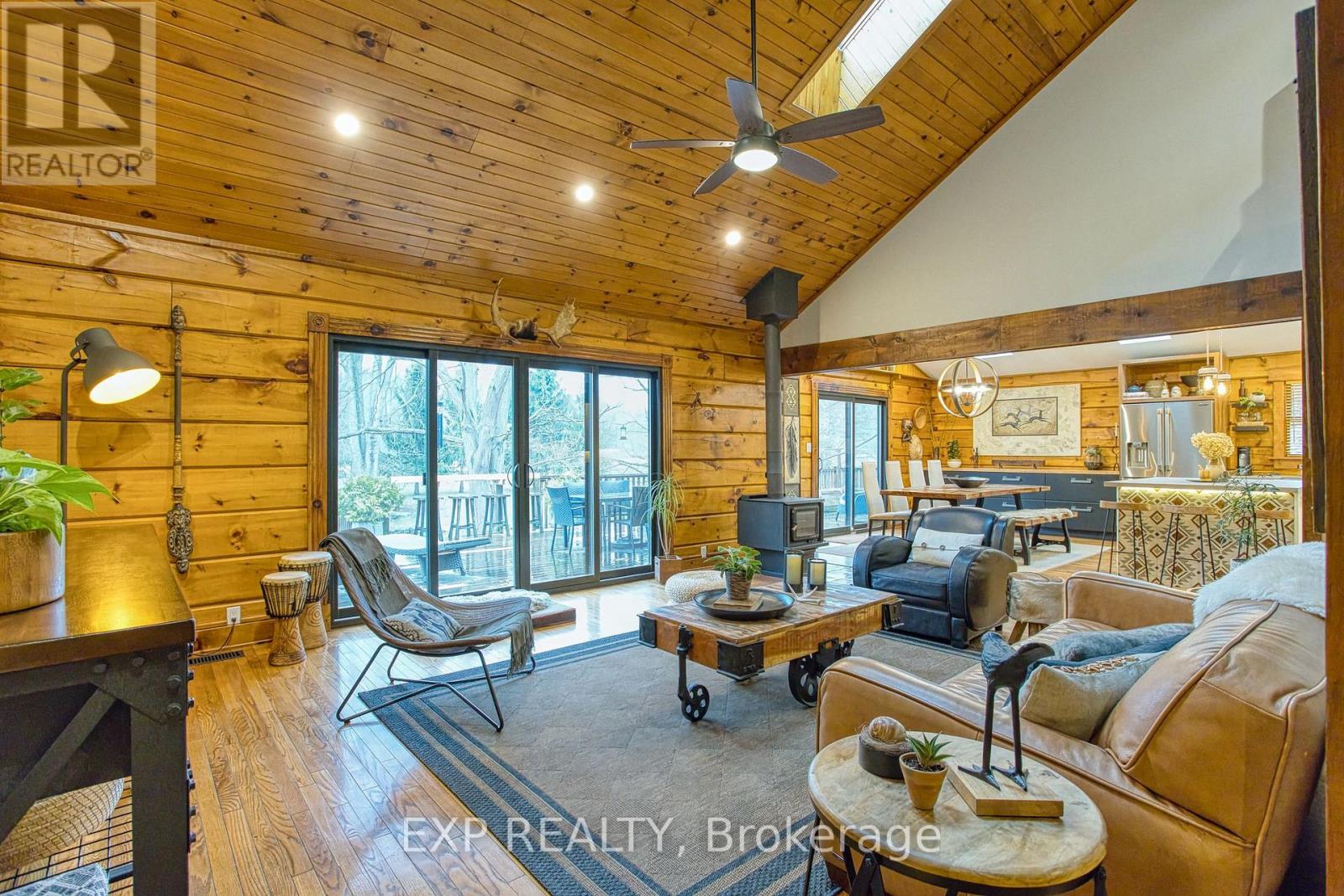 Welcome to this stunning Confederation log home at 1970 Hollow Dr in Thorold. Masterfully crafted from authentic white pine and showcasing timeless dovetail joinery throughout. Nestled on a private 1.67-acre lot backing onto a picturesque pond, this property offers the perfect blend of rustic charm and modern comfort. Inside, you'll find soaring vaulted ceilings, luxurious $10,000 quartex countertops, and a relaxing sauna, creating a warm yet refined living experience. The home has been thoughtfully updated with a new furnace (2020), water filtration system (2020), and a new well pump (October 2025), ensuring peace of mind for years to come. The kitchen features a certified roof redone in 2023, complete with three inspections/permits and an impressive 50 year builder warranty. Additional upgrades include an electric vehicle charging plug, Starlink tower for high-speed connectivity, and invisible pet fencing for convenience and safety. Adding to the property's unique appeal is a historic 1890 barn, full of character, with a permit currently in progress for an extension, offering exciting potential for future use. This one of a kind property combines heritage craftsmanship, modern upgrades, and serene natural surroundings, an exceptional opportunity to own a truly special home. (id:64974)
