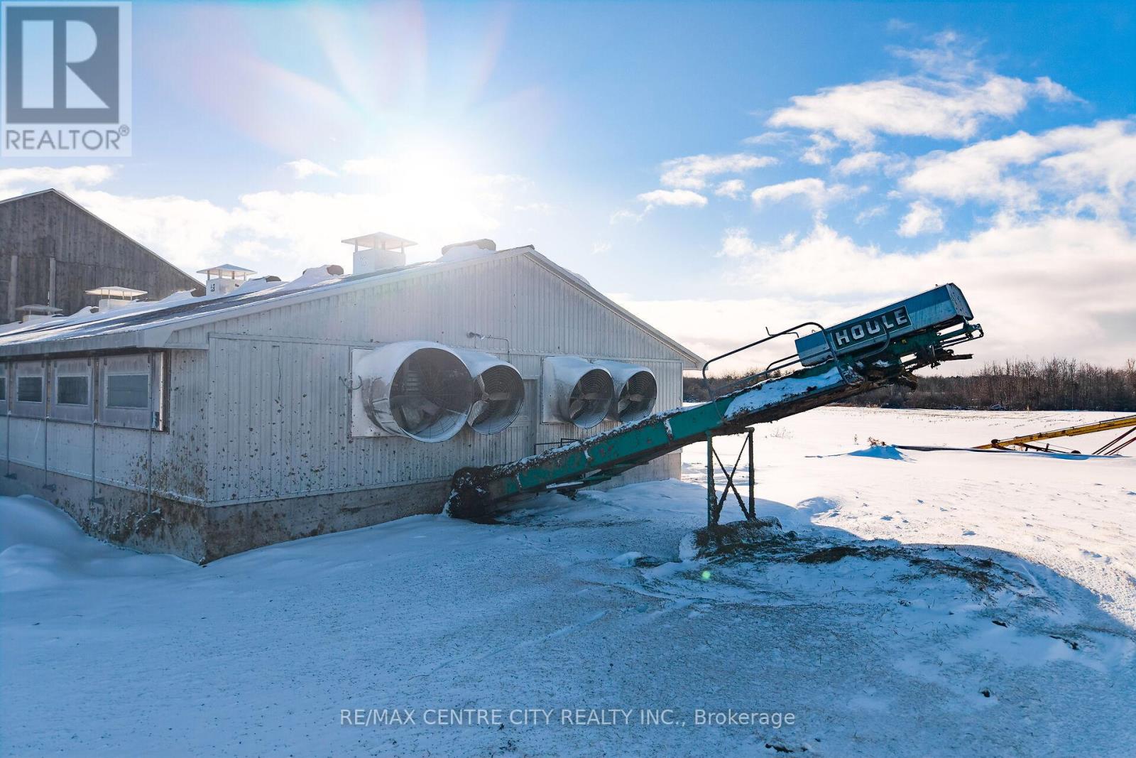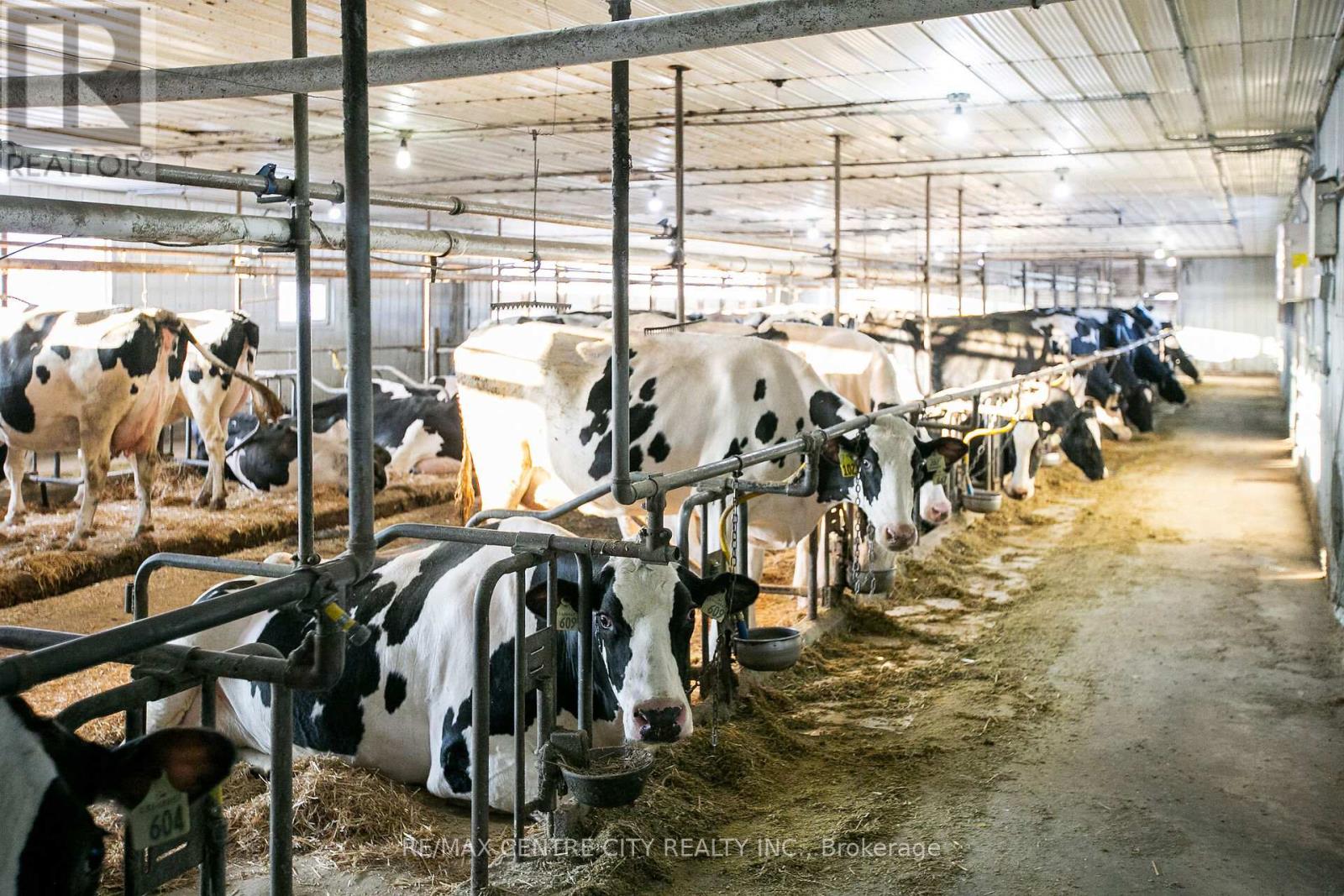 Welcome to Grey County & near Georgian Bay, where this property comprises 137 acres, with 70 acres currently in production. The dairy operation includes 79.68 KG of saleable quota and a robust herd management system, with young stock raised offsite. Facilities feature a 66-tie stall barn, a 4,900-litre milk tank, six Boumatic Companion auto takeoff milkers, and comprehensive manure storage solutions. Feeding infrastructure includes a stationary Val Metal mixer and three silos, the newest built in 2017. Calves are housed on-site until six months of age before relocation. Outbuildings include a newly constructed 60' x 100' shed (2022) with insulated space and in-floor heating ready for hook up, and an older 28' x 40' shed for bale storage. The residence offers five bedrooms, 1.5 baths, a half-finished basement, and a significant 2017 addition with modern amenities and a two-car garage. Additional rental land totaling 107 workable acres is available from neighboring farms. This property presents an exceptional opportunity for producers seeking a well-established, productive dairy operation with quality infrastructure and expansion potential in a desirable location. (id:64974)