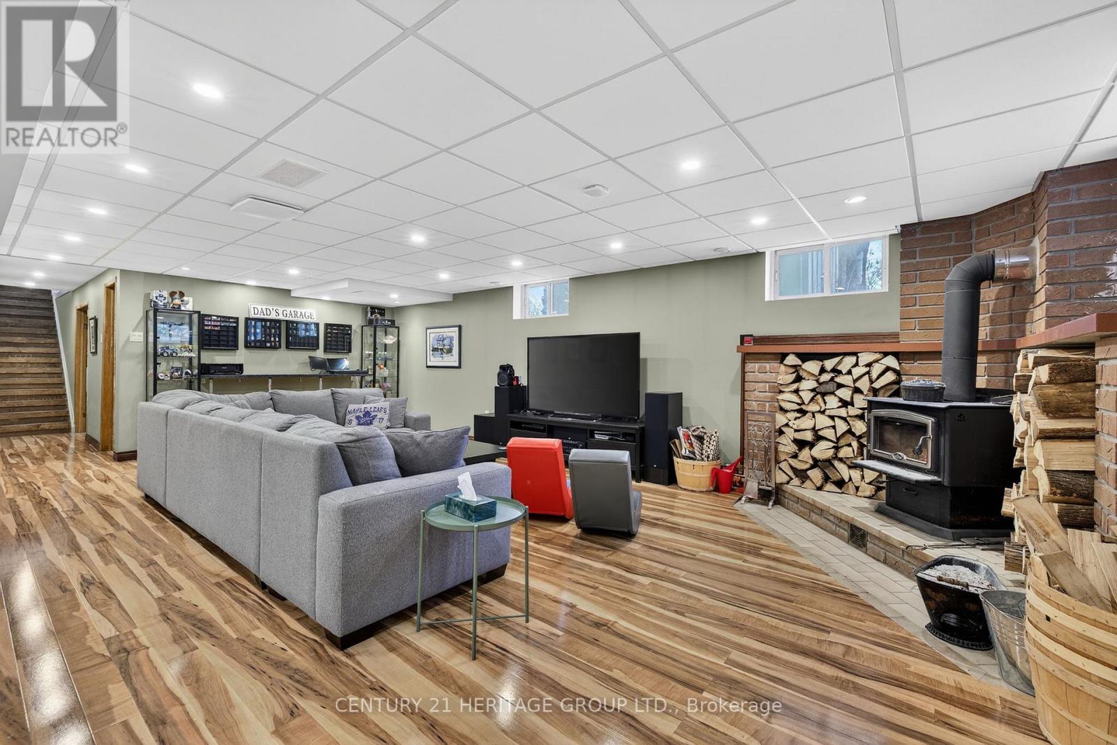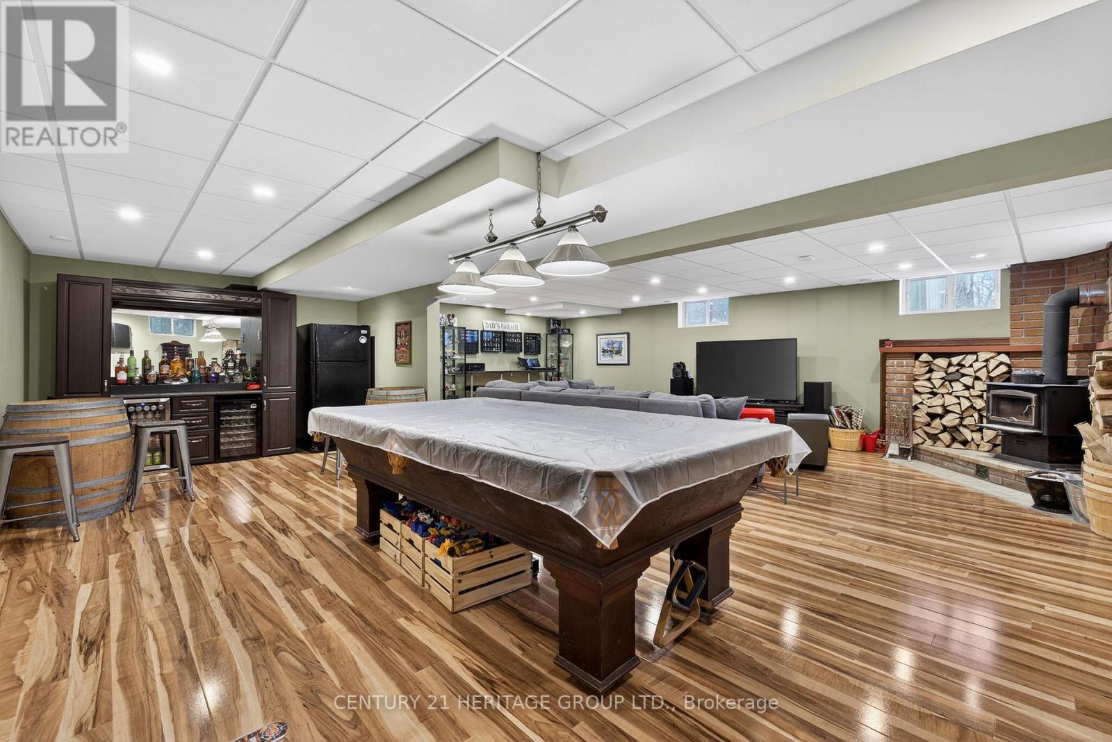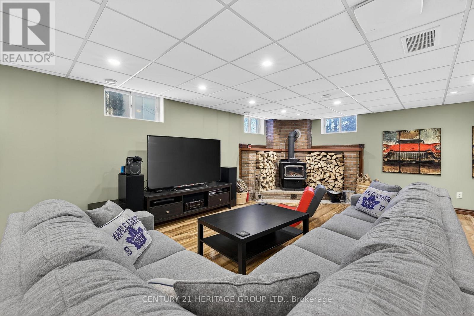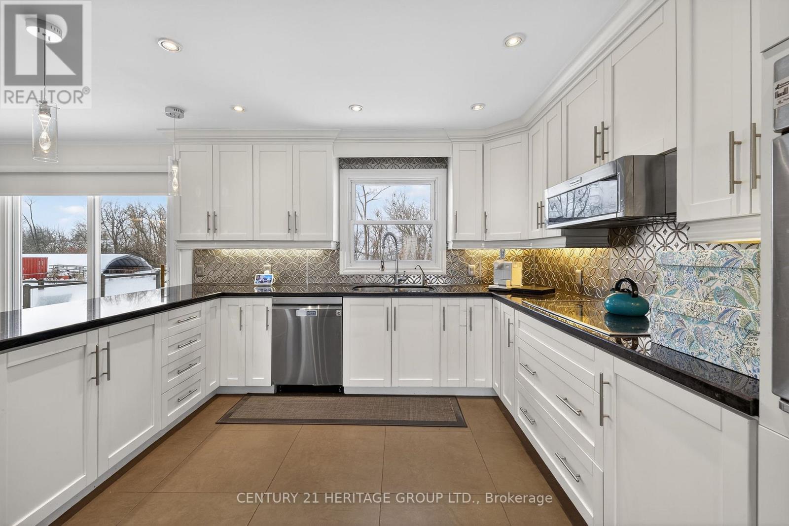 Welcome to this beautifully maintained bungalow set on approximately 3 acres of scenic land just north of Mount Albert, offering an exceptional blend of privacy, space, and convenience. Thoughtfully updated and meticulously cared for, the home features an updated kitchen and main bathroom, along with a recently renovated 5-piece primary bedroom ensuite. Elegant maple hardwood flooring flows through the bedrooms and dining room, complemented by high-end tile throughout the main level. The modern kitchen is richly appointed with granite countertops, pot and pan drawers, crown moulding, under-mount sink, under-valance lighting, backsplash, and a combination of pot and pendant lighting. Both the breakfast area and family room offer walk-outs to the rear deck, ideal for enjoying the surrounding countryside. The finished basement adds versatile living space with durable laminate flooring and a cozy WETT-compliant wood-burning fireplace. A large attached two-car garage, separate storage shed, and generous basement storage provide ample room for vehicles, tools, and recreational equipment. A fantastic opportunity to enjoy peaceful country living with modern updates and everyday comfort. (id:64974)