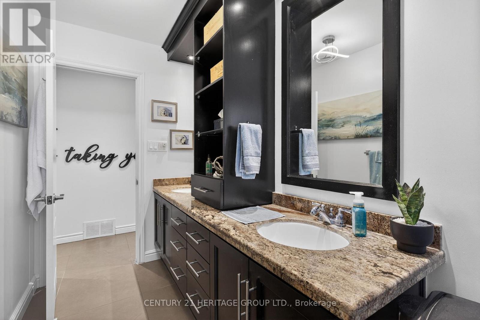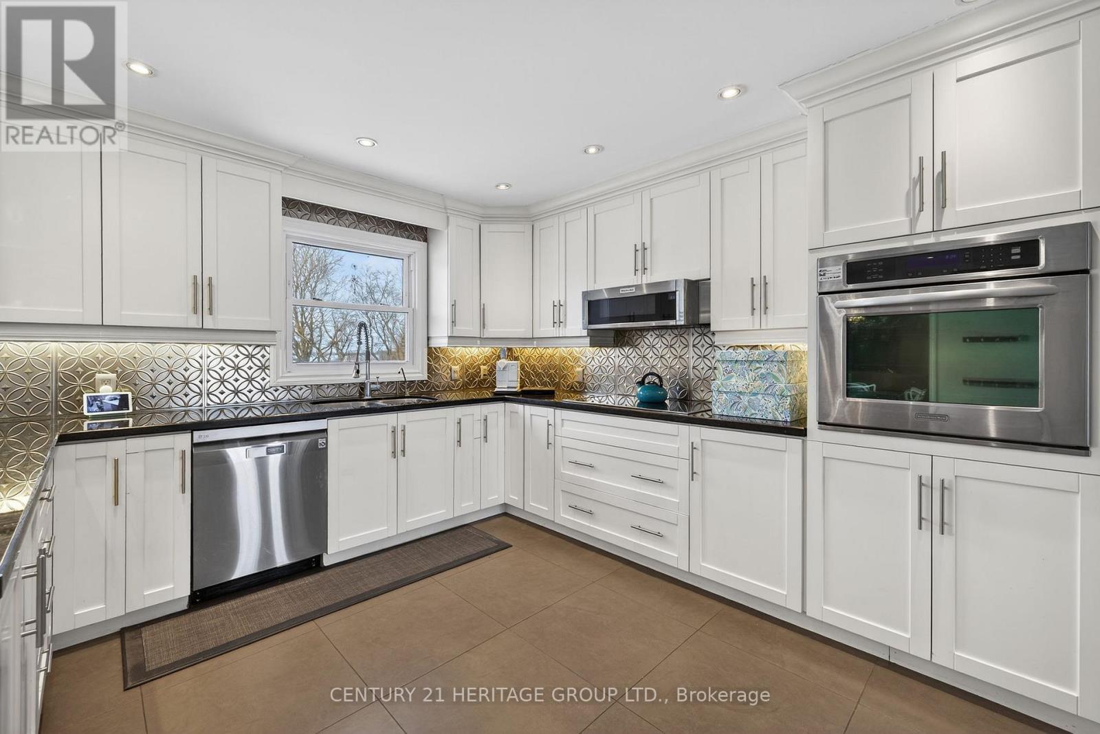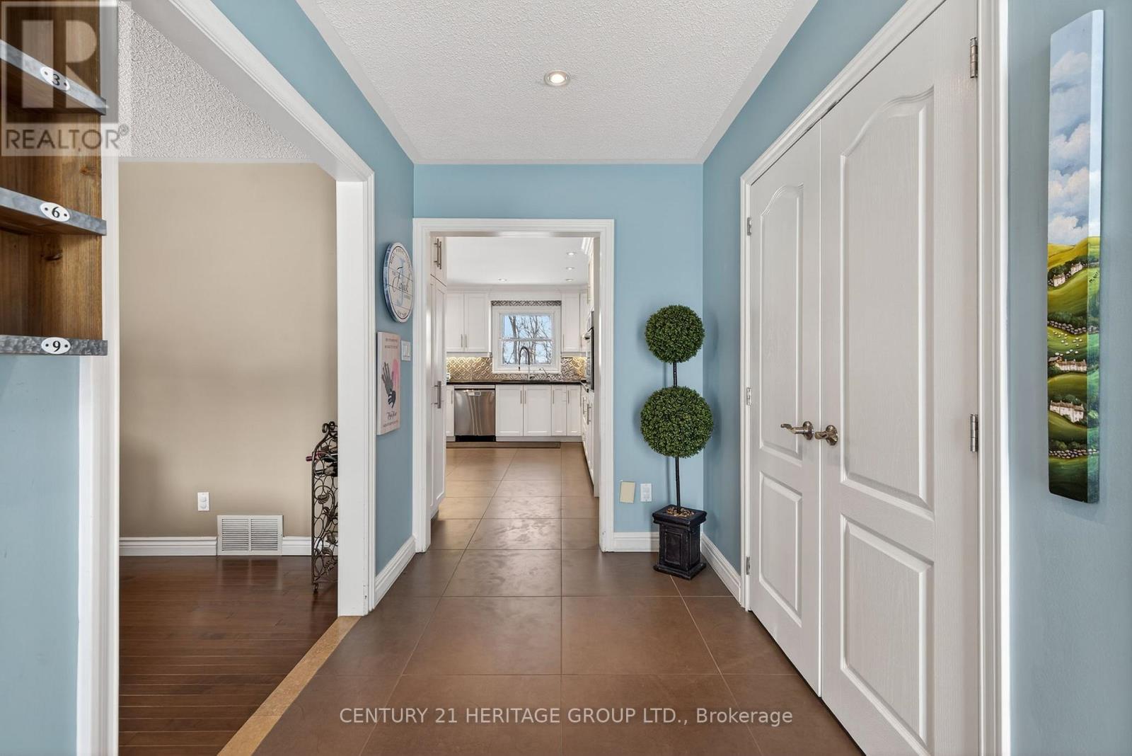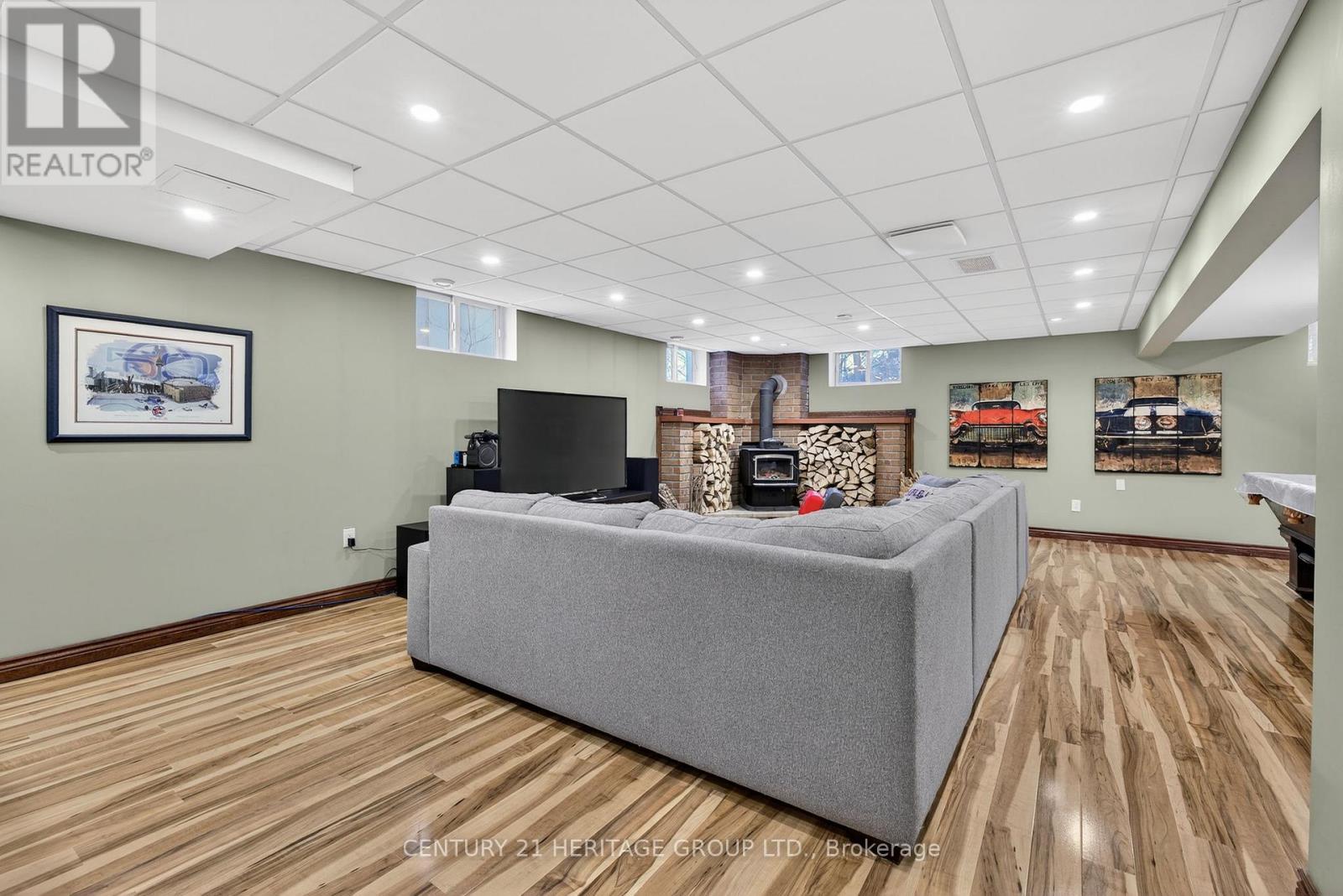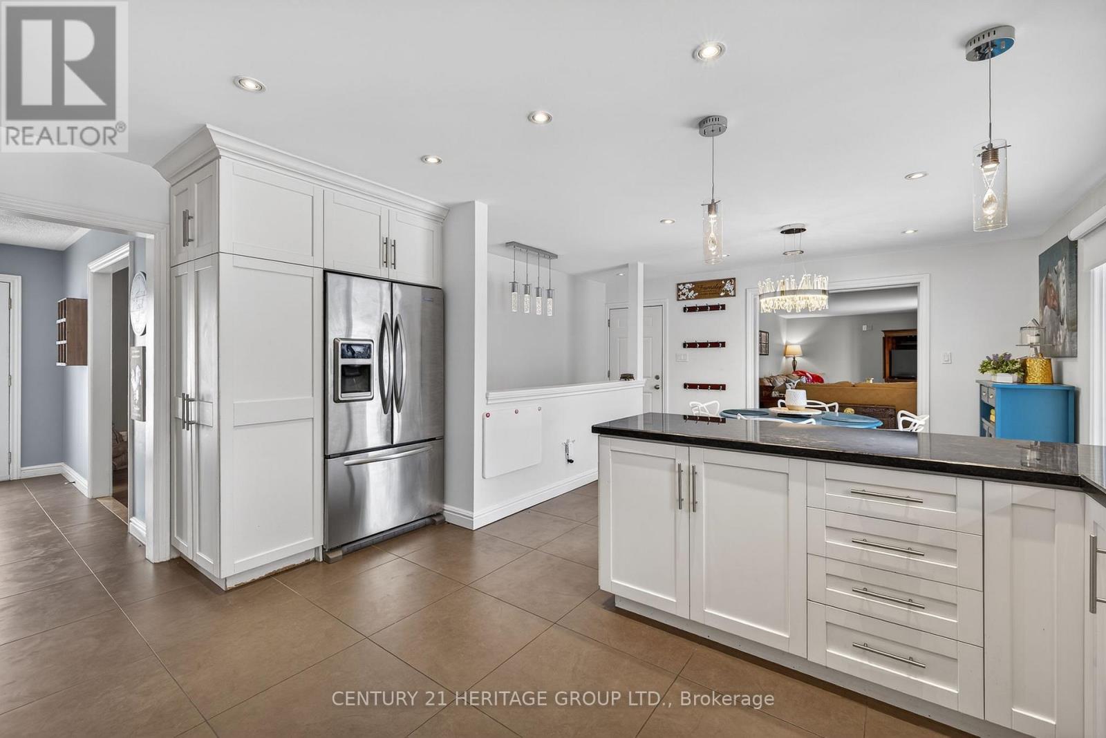 Welcome to this beautifully maintained bungalow set on approximately 3 acres of scenic land just north of Mount Albert, offering an exceptional blend of privacy, space, and convenience. Thoughtfully updated and meticulously cared for, the home features an updated kitchen and main bathroom, along with a recently renovated 5-piece primary bedroom ensuite. Elegant maple hardwood flooring flows through the bedrooms and dining room, complemented by high-end tile throughout the main level. The modern kitchen is richly appointed with granite countertops, pot and pan drawers, crown moulding, under-mount sink, under-valance lighting, backsplash, and a combination of pot and pendant lighting. Both the breakfast area and family room offer walk-outs to the rear deck, ideal for enjoying the surrounding countryside. The finished basement adds versatile living space with durable laminate flooring and a cozy WETT-compliant wood-burning fireplace. A large attached two-car garage, separate storage shed, and generous basement storage provide ample room for vehicles, tools, and recreational equipment. A fantastic opportunity to enjoy peaceful country living with modern updates and everyday comfort. (id:64974)